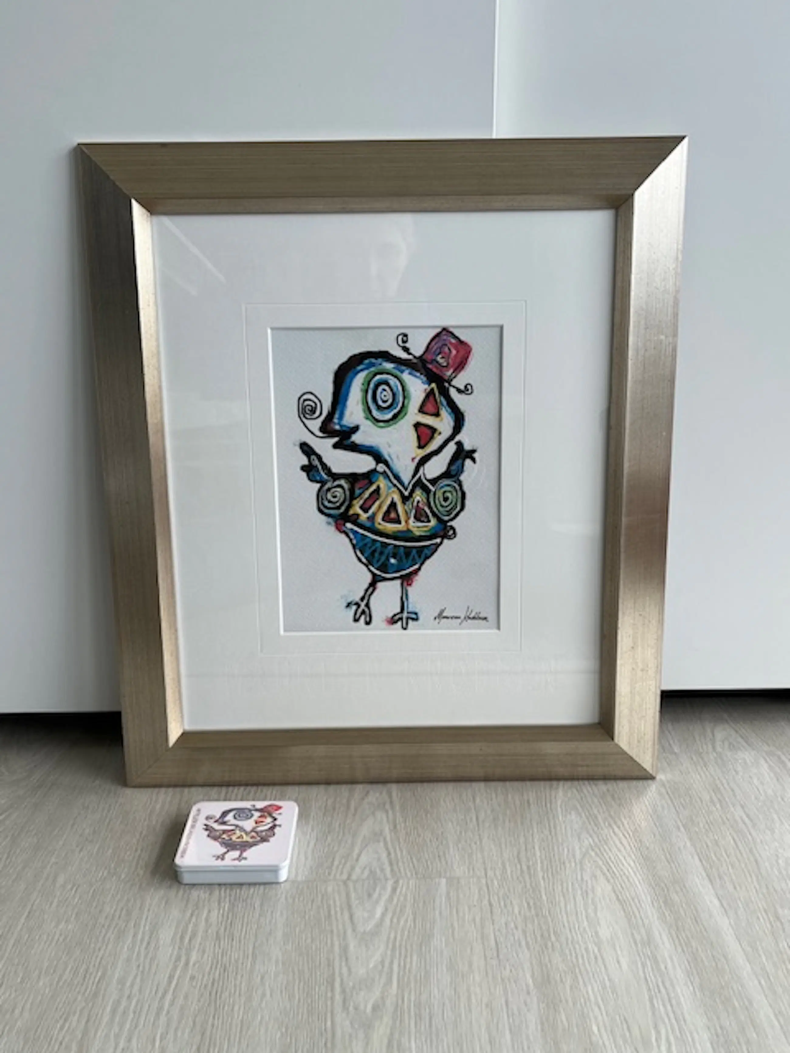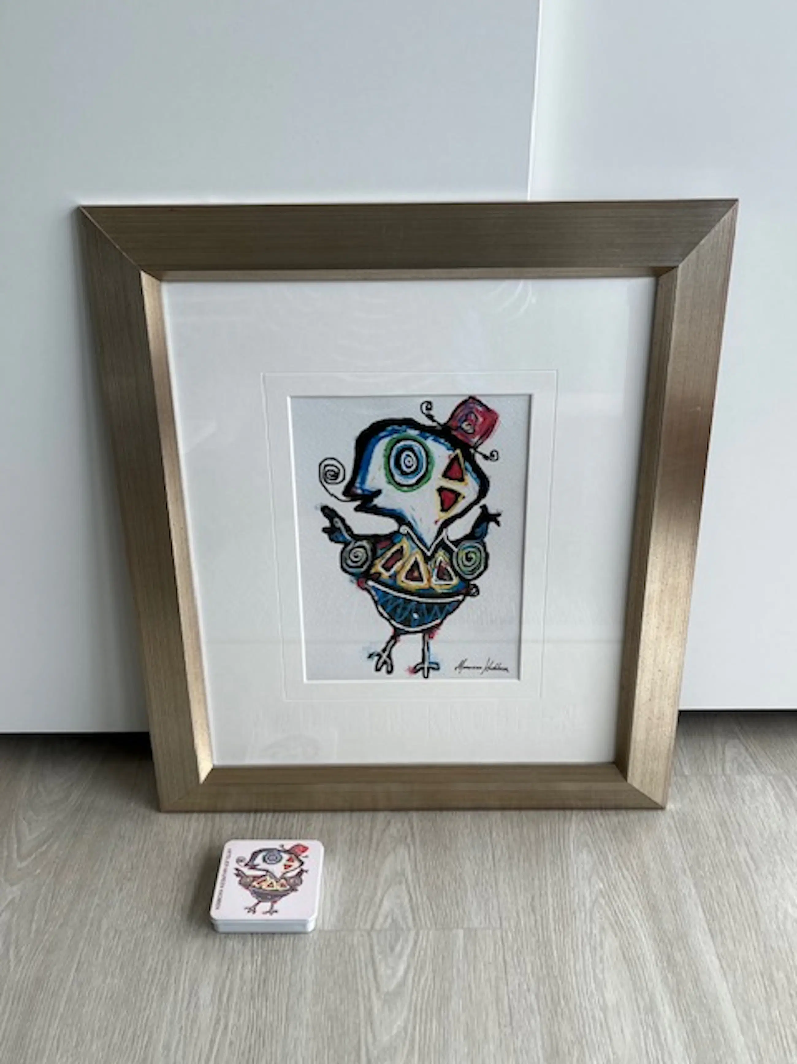 Prachtig schilderij van Maureen Knobben; zij is autodidact en heeft een galerij in Ootmarsum. Bij het schilderij komt een metalen doosje met dezelfde afbeelding.