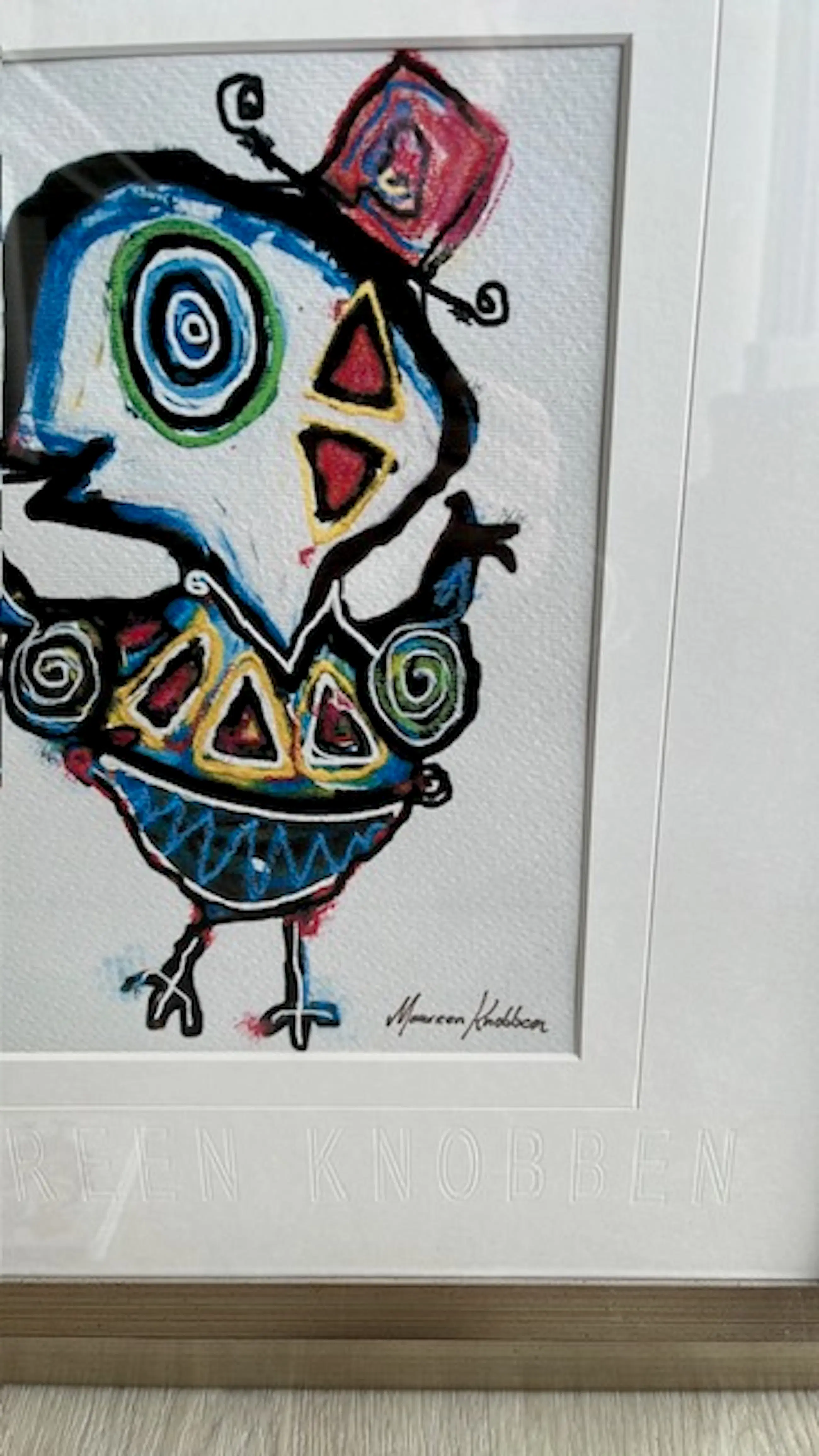 Kleurrijk schilderij van Maureen Knobben. Zij heeft een eigen stijl ontwikkeld en bezit een galerij in Ootmarsum.