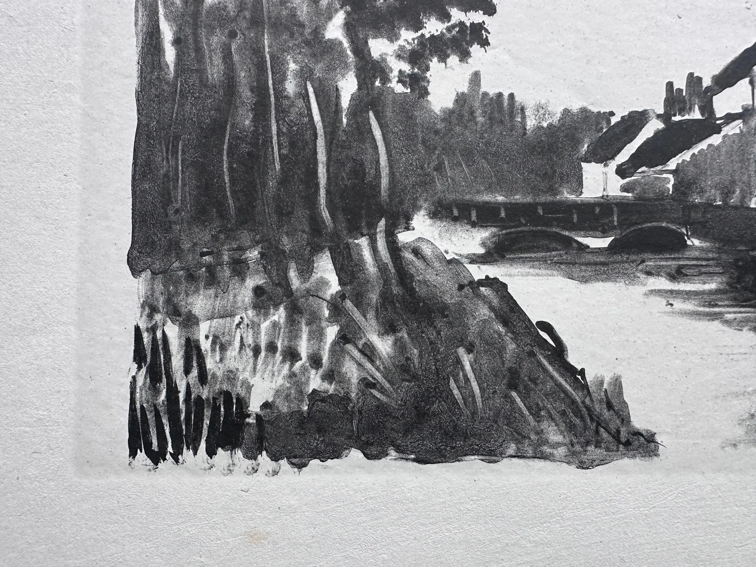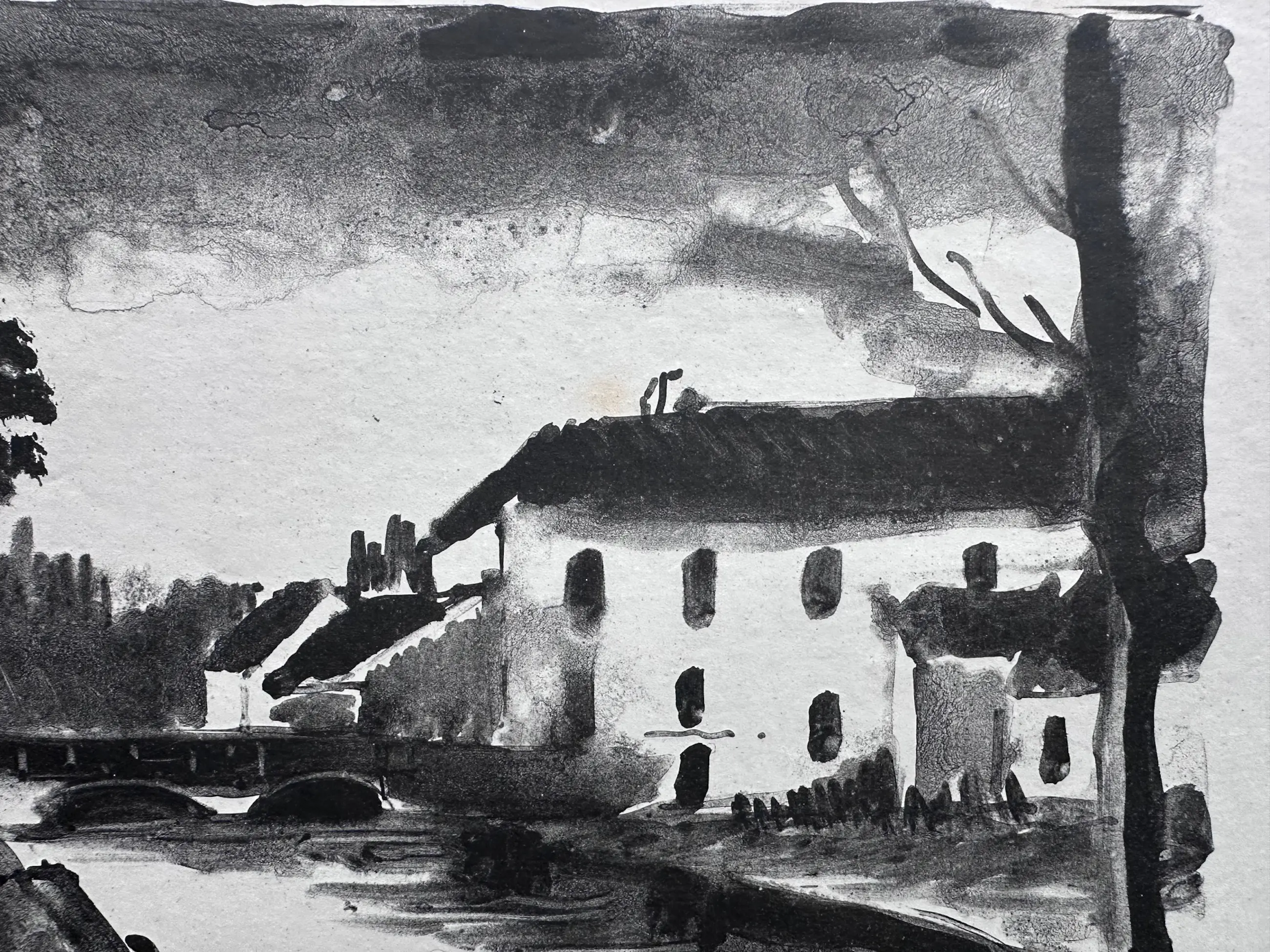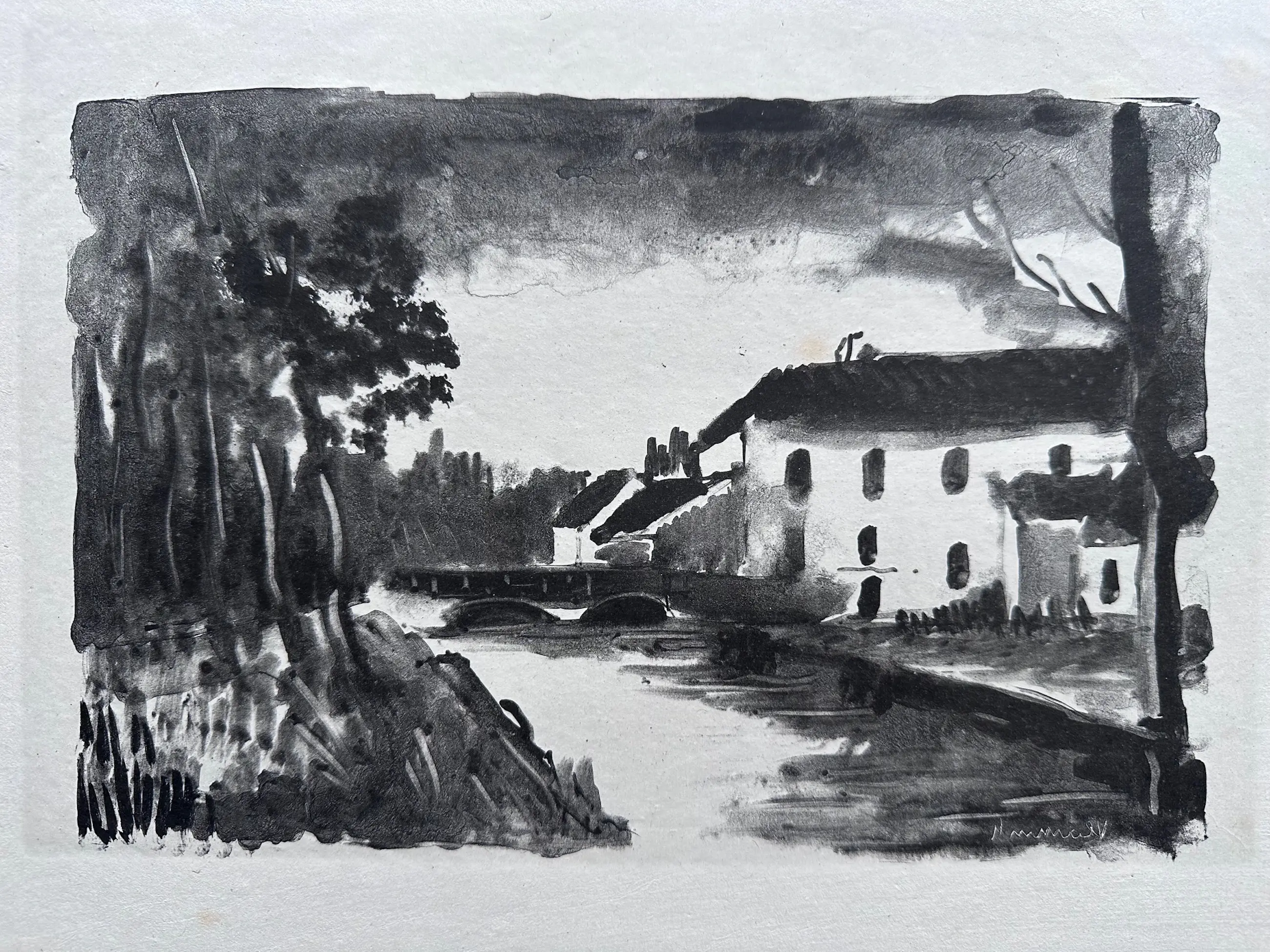 In de lithografie Le Moulin de la Naze toont De Vlaminck zijn kenmerkende stijl: een rustiek landschap met een molen, opgebouwd uit sterke contrasten en expressieve lijnen. Hoewel het werk soberder is dan zijn felgekleurde schilderijen, blijft de energie en ruwe kracht duidelijk voelbaar. De litho benadrukt zijn fascinatie voor het Franse landschap en zijn vermogen om met minimale middelen toch een intense sfeer op te roepen.