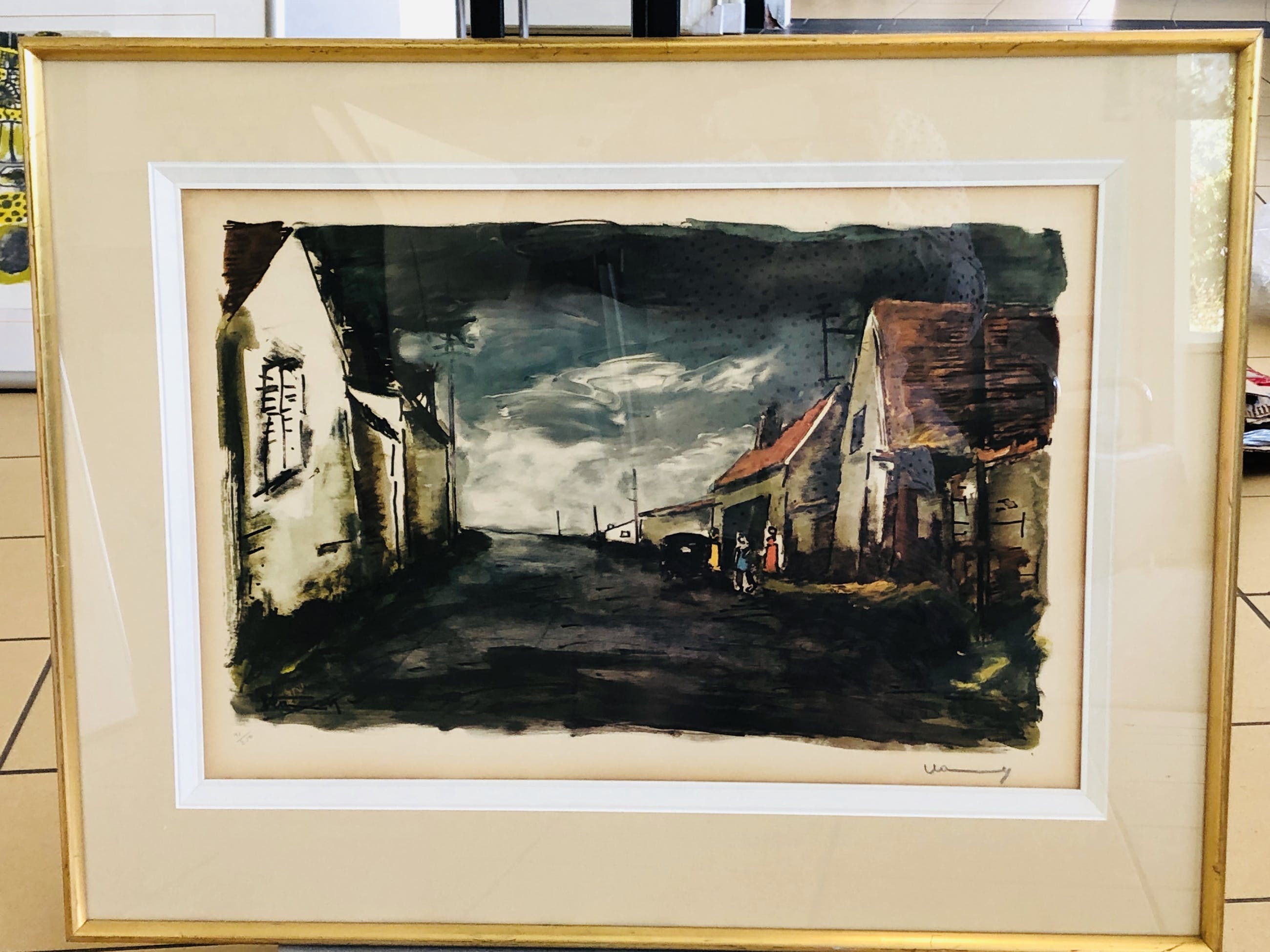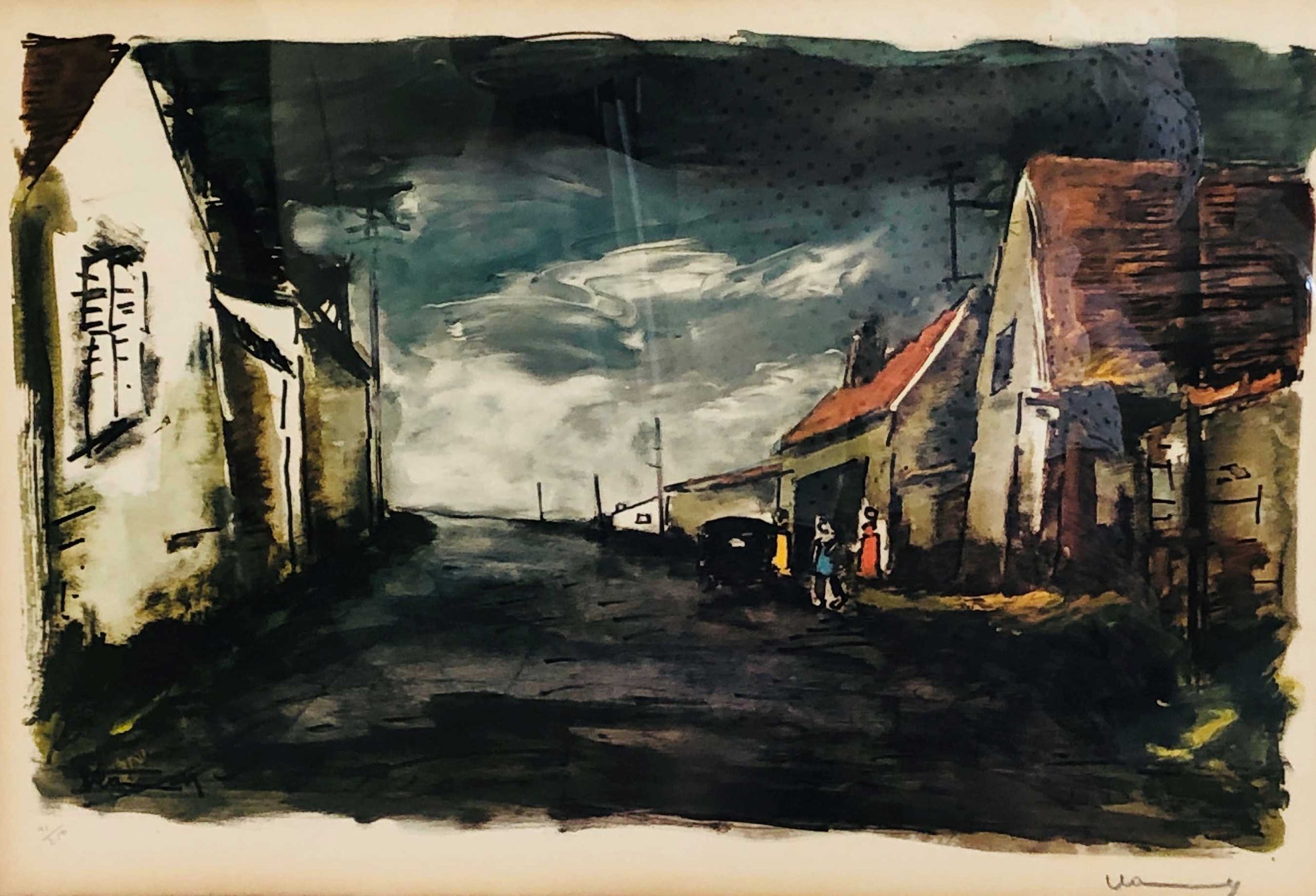 Mooi werk van De Vlaminck. Het werk heeft een klassieke lijst en kan vooraf wprden beoordeeld in overleg en na aankoop worden opgehaald met lijst, verzonden w met lijst per koerier naar Nederland of België..De foto is door het glas van de omlijsting heen gemaakt