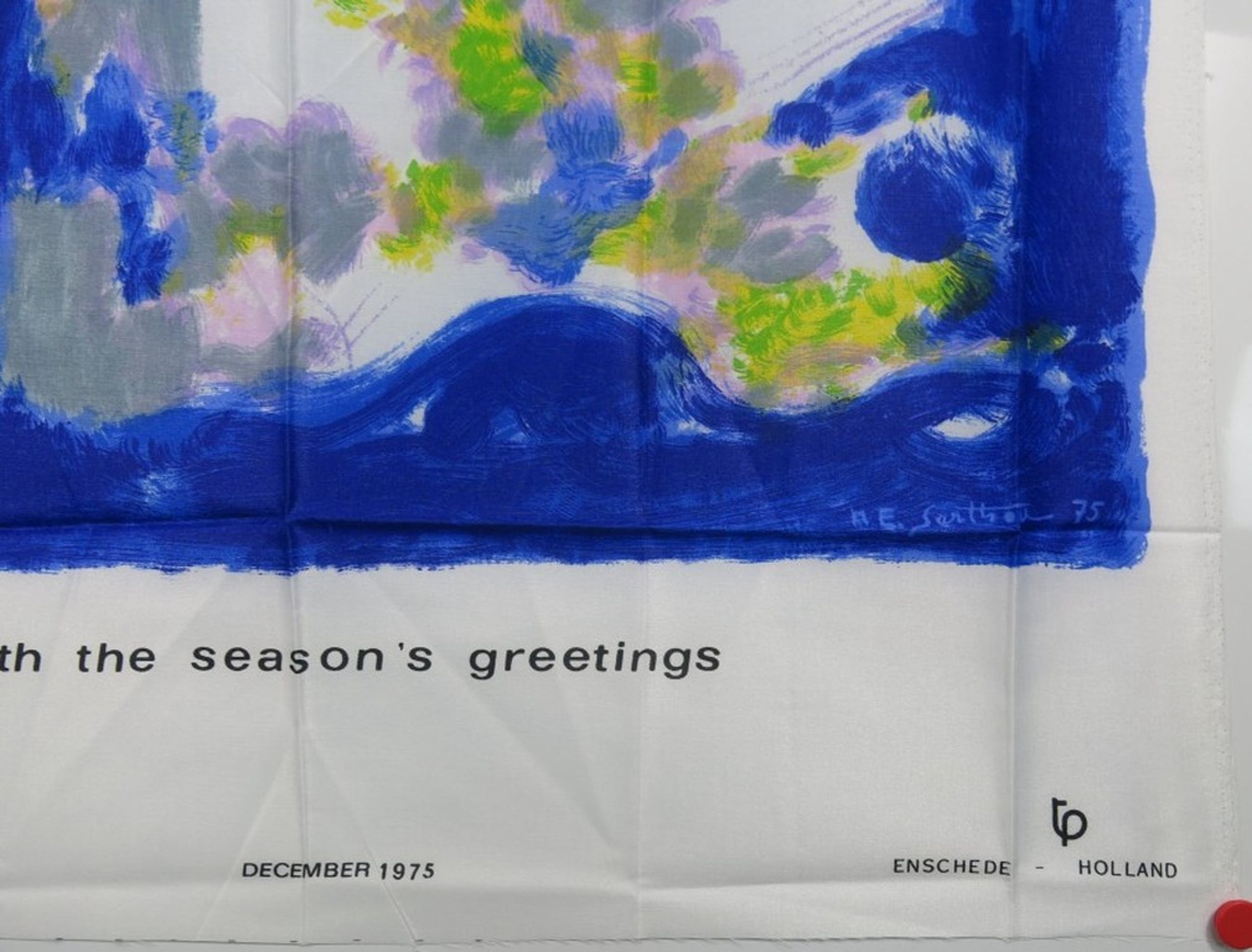 Texoprint bv vroeg jaarlijks een kunstenaar voor de vervaardiging van een zeefdruk op textiel, welke werd uitgebracht in een oplage van 200. Wij veilen nu diverse van deze uitgaves.
