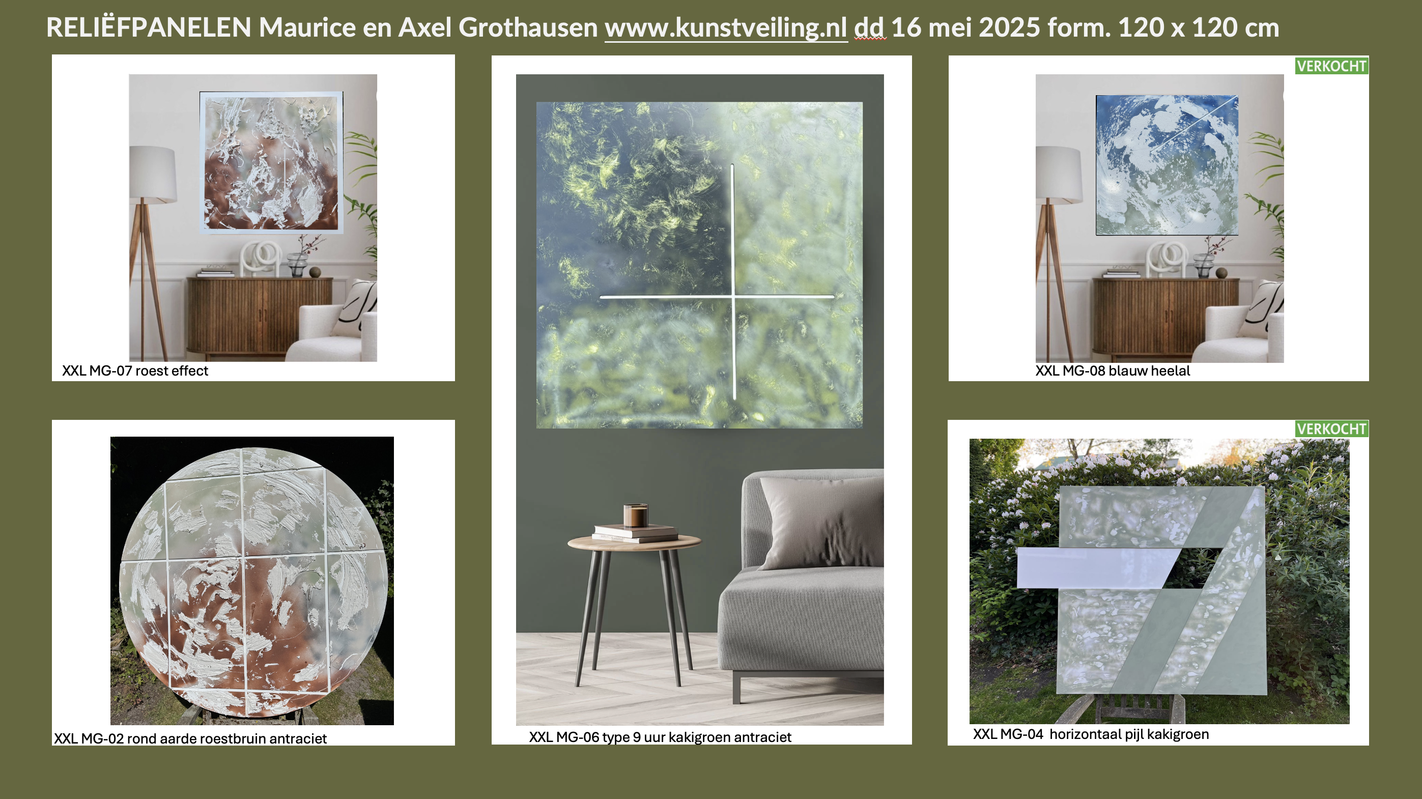 In de periode 1972–1976 maakte Maurice M. Grothausen – naast zijn werk als architect (BNA-BNI) en kunstschilder – een exclusieve reeks reliëfpanelen. Deze unieke kunstwerken zijn een ode aan de kracht van eenvoudige vormen en universele beeldtaal. Elk paneel is met de hand vervaardigd, zonder signatuur maar met volledige herkomstgarantie.