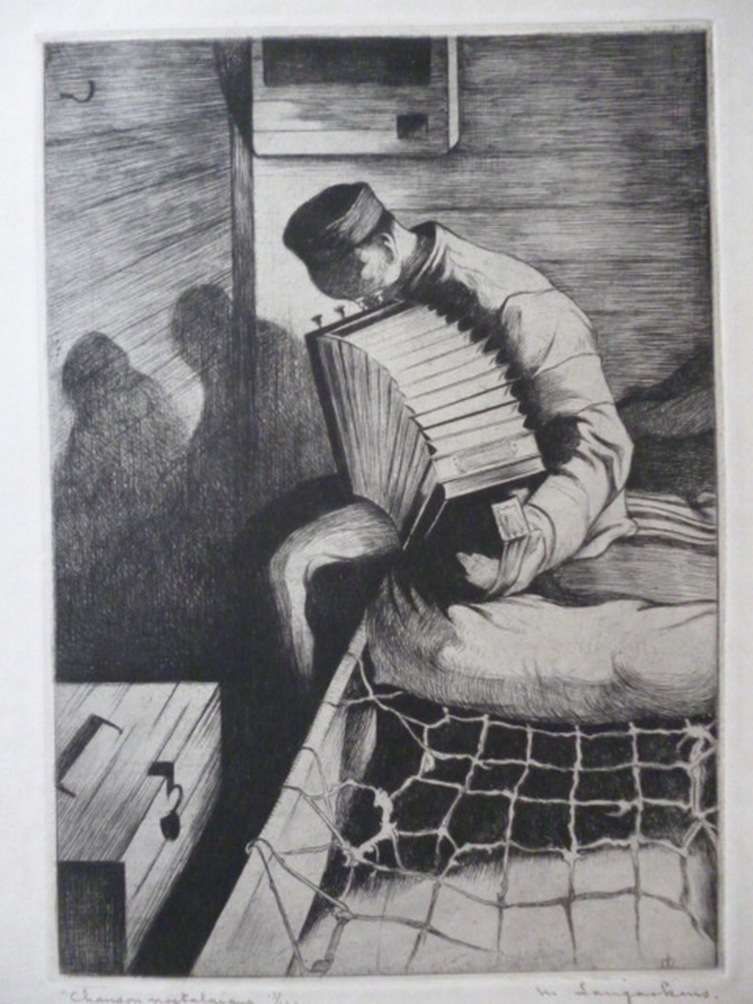 Ets, potlood gesigneerd rechtsonder. Getiteld linksonder.