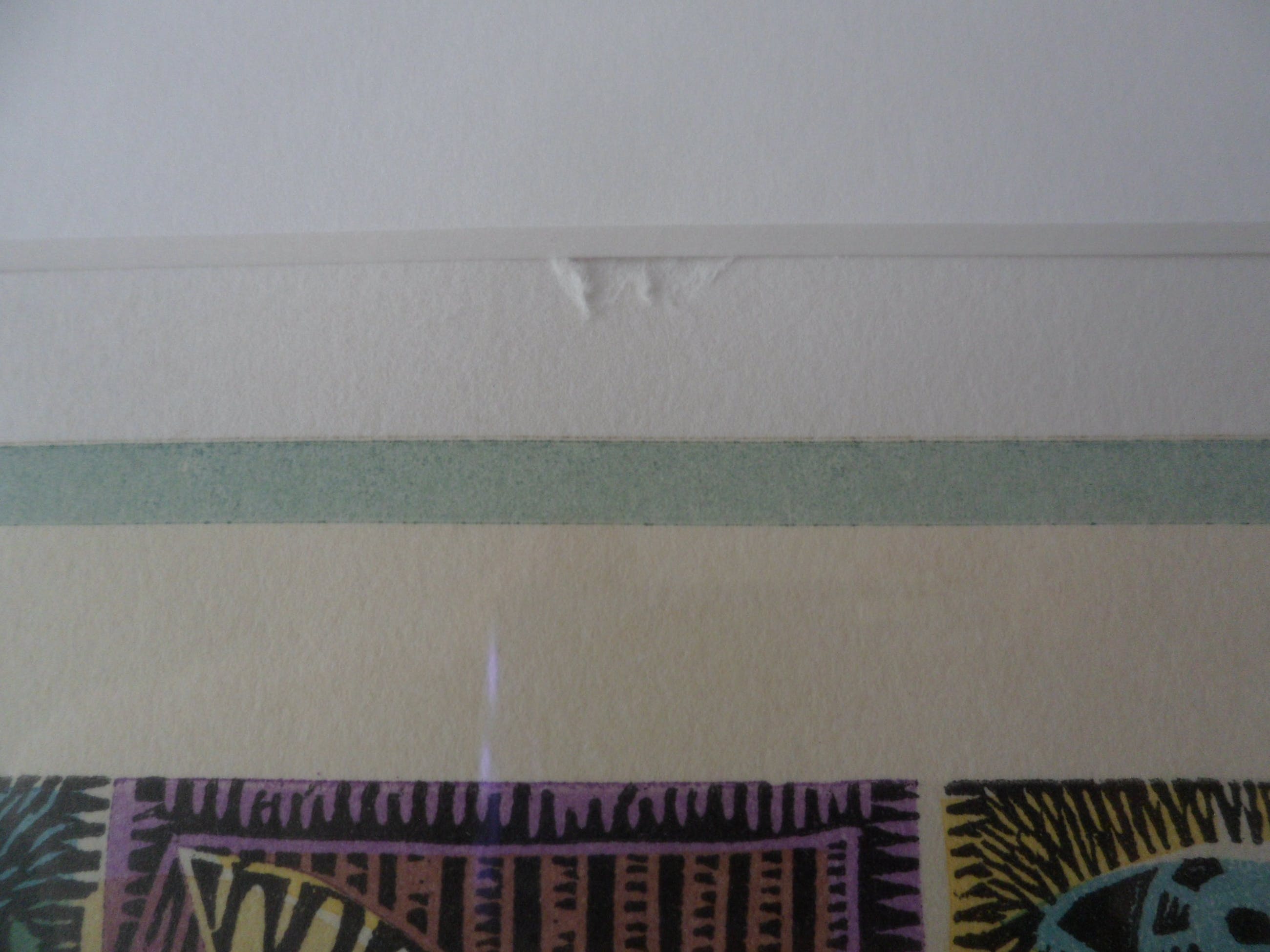 Een klein plekje boven in het midden bij passe partout, zie foto