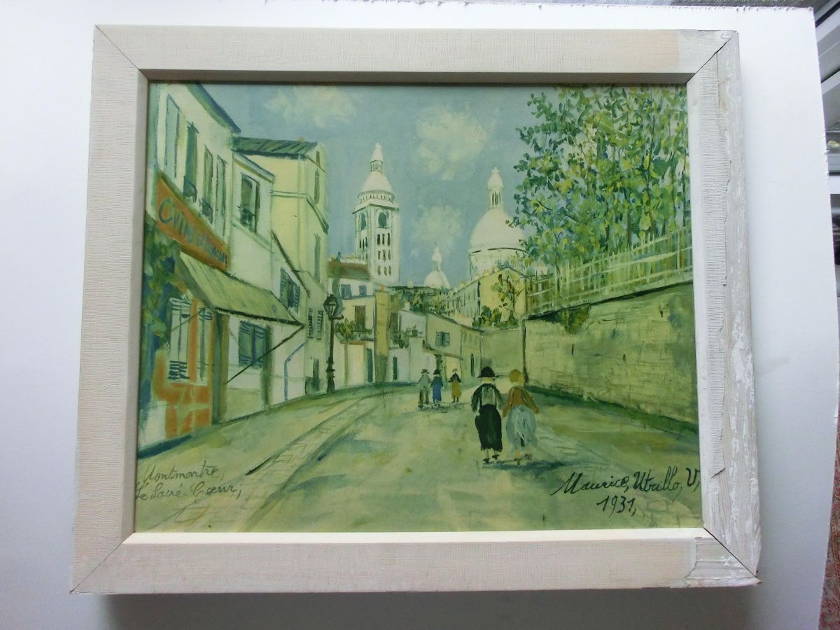 Druck von Utrillo aus 1931. Straßenansicht Le Sacré-Coeur Montmartre Paris. Im Bild betitelt und signiert: Maurice Utrillo 1931. Verso Aufkleber: DDD Kunsthandlung Karl Welter, Berlin. Bildgröße ohne Rahmen ca. 40 x 50 cm. Rahmen gehört nicht mit zum Angebot, wird aber mitgeliefert. Privatverkauf, keine Rücknahme. Versandkosten BRD 12,- EU bis 25,-