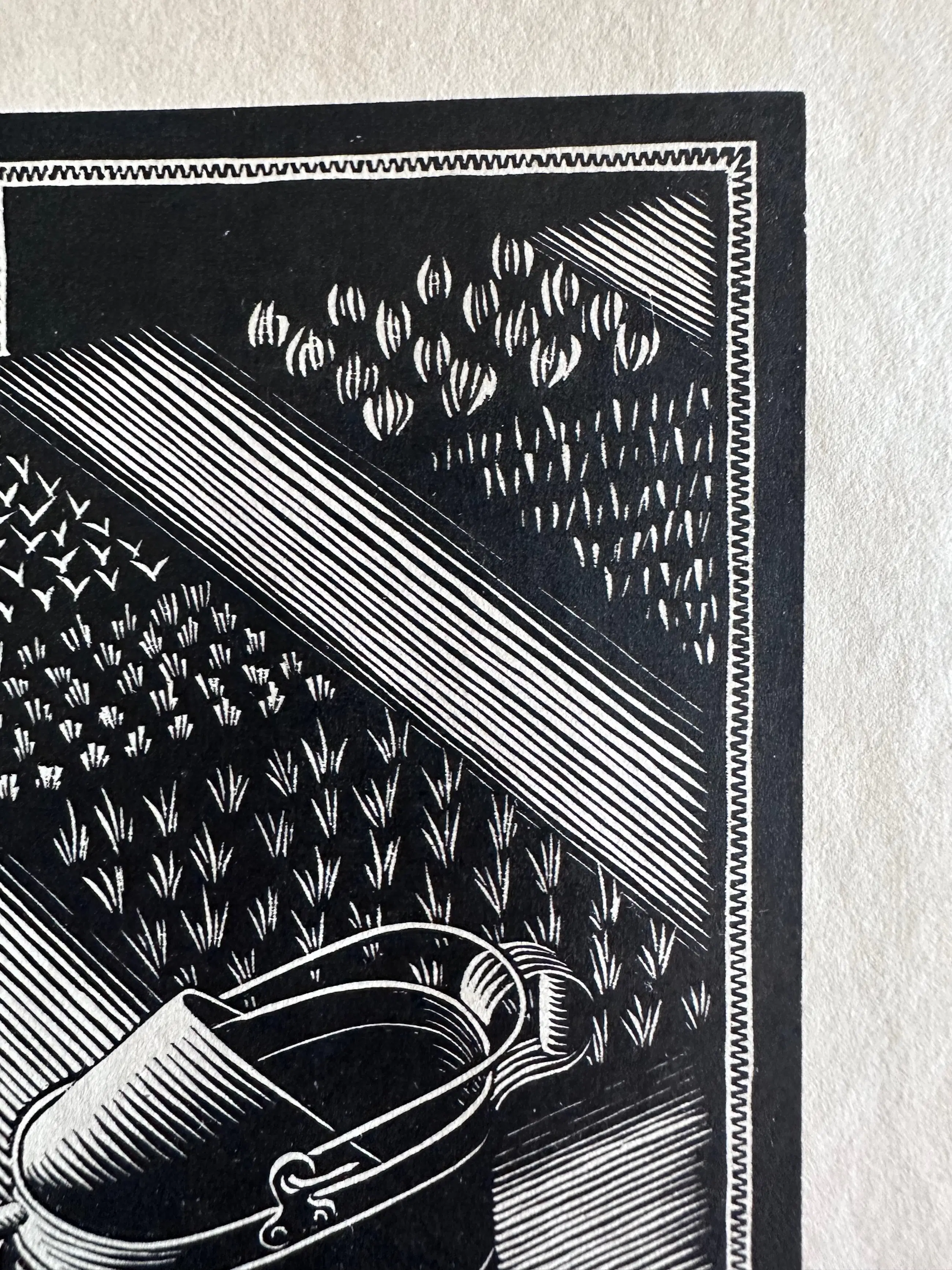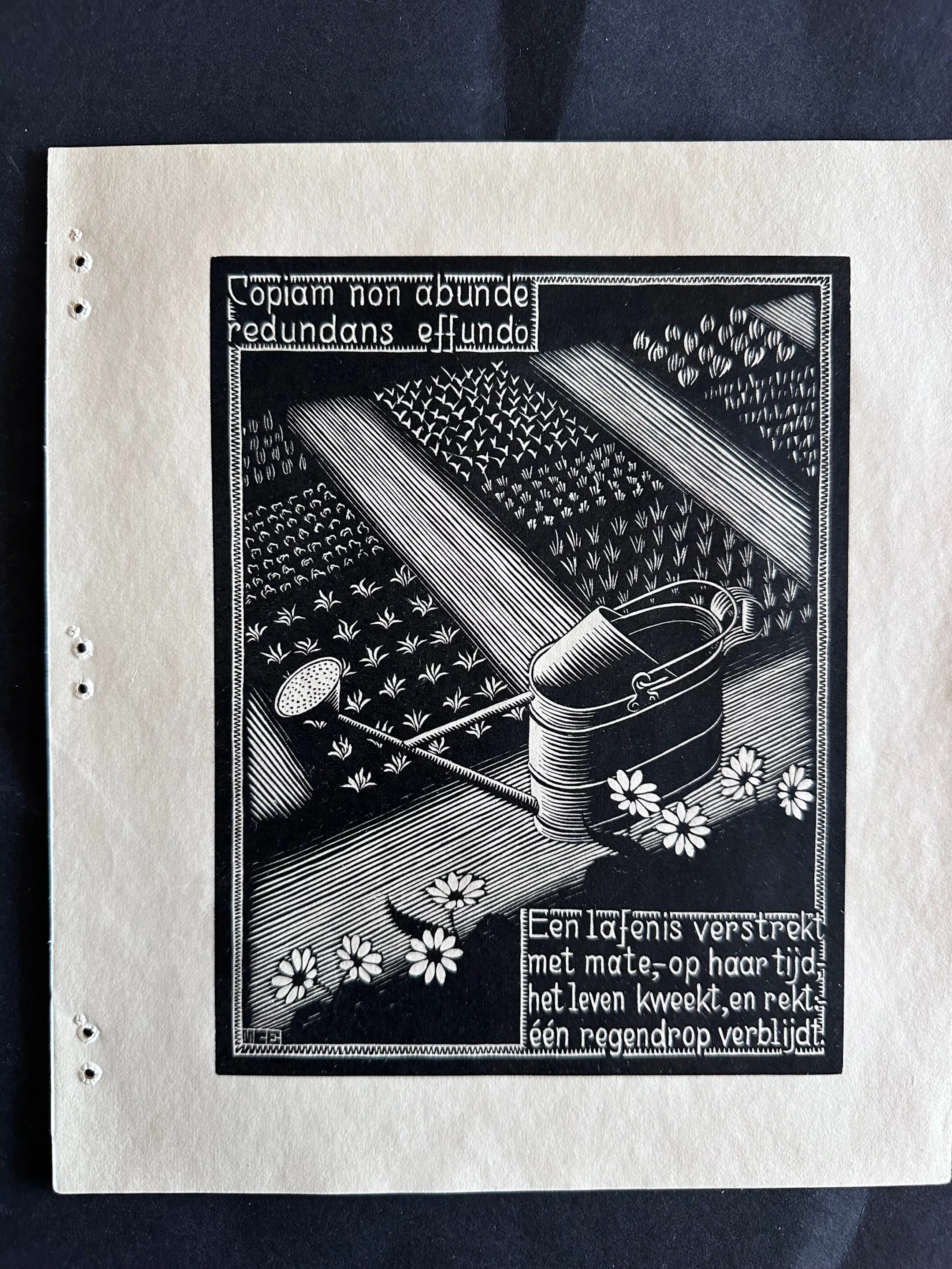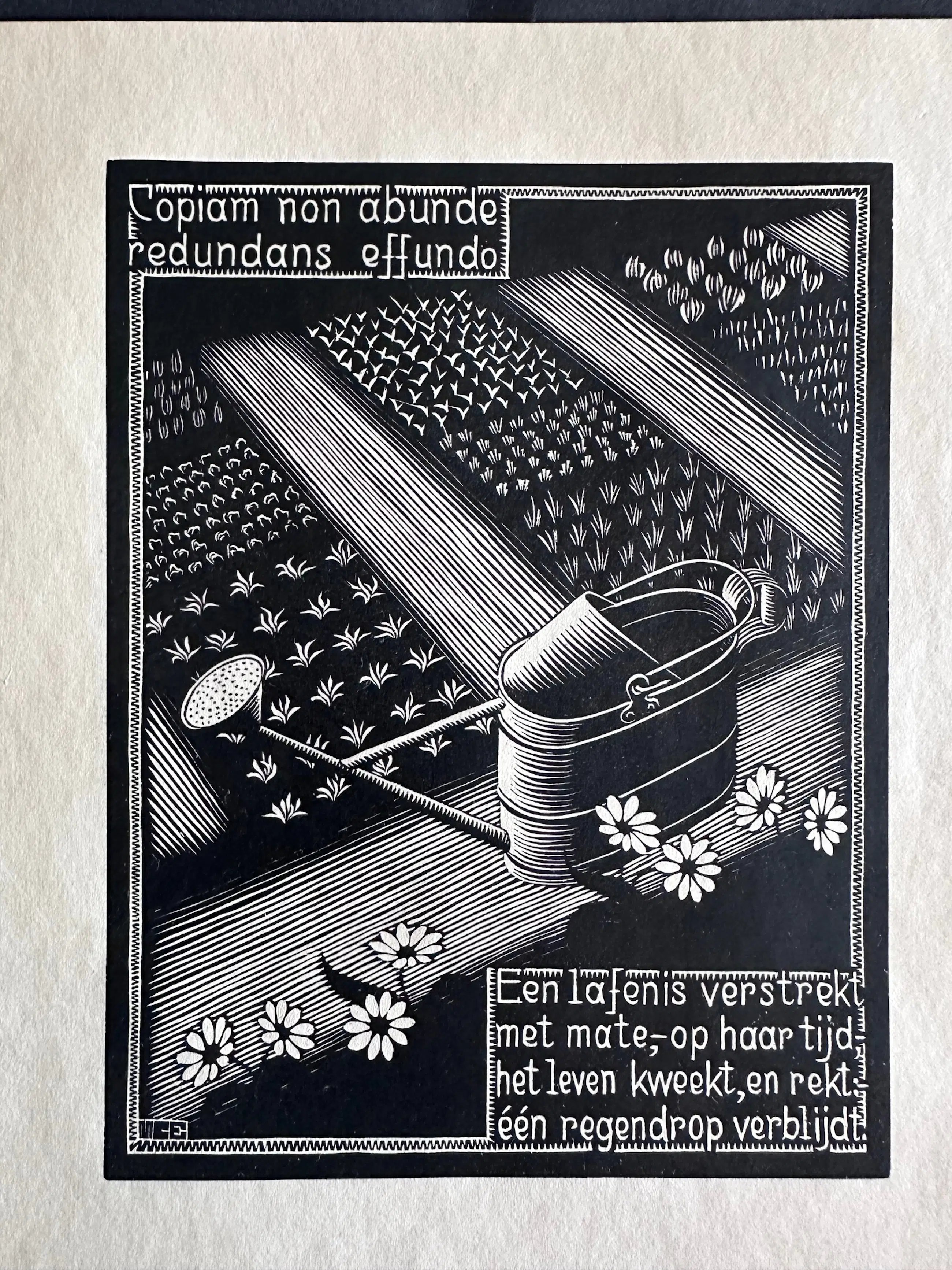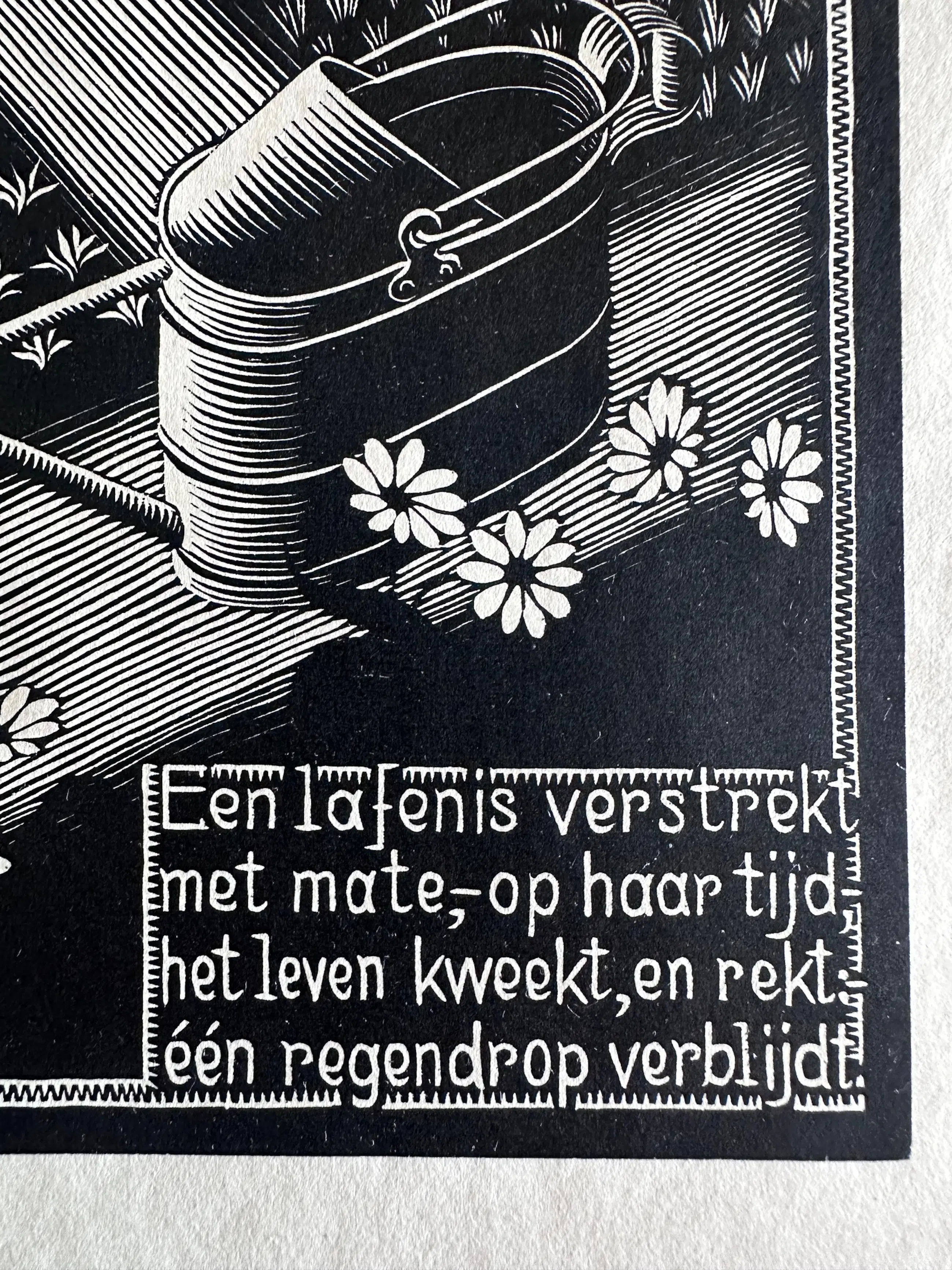In het boekwerk, waar deze houtsnede uit komt, zitten 24 houtsneden ( tekst in Nederlands en Latijn ) , de tekst is van zijn vriend A.E. Drijfhout. De gieter is eentje van deze serie.