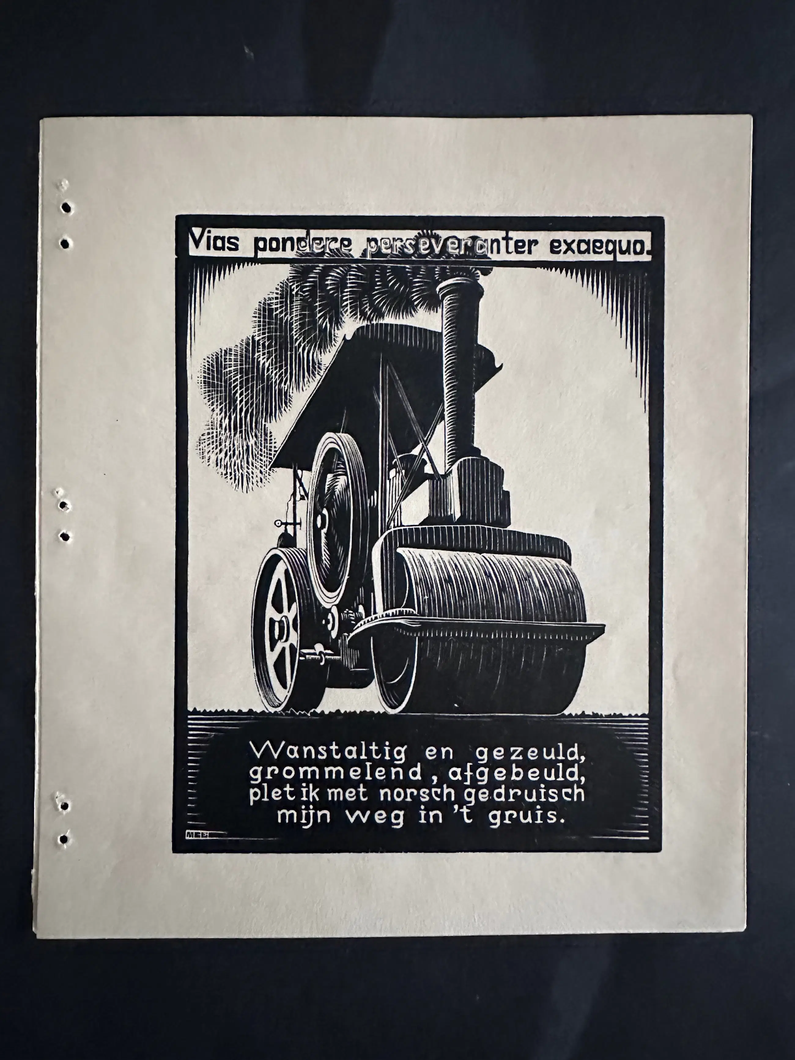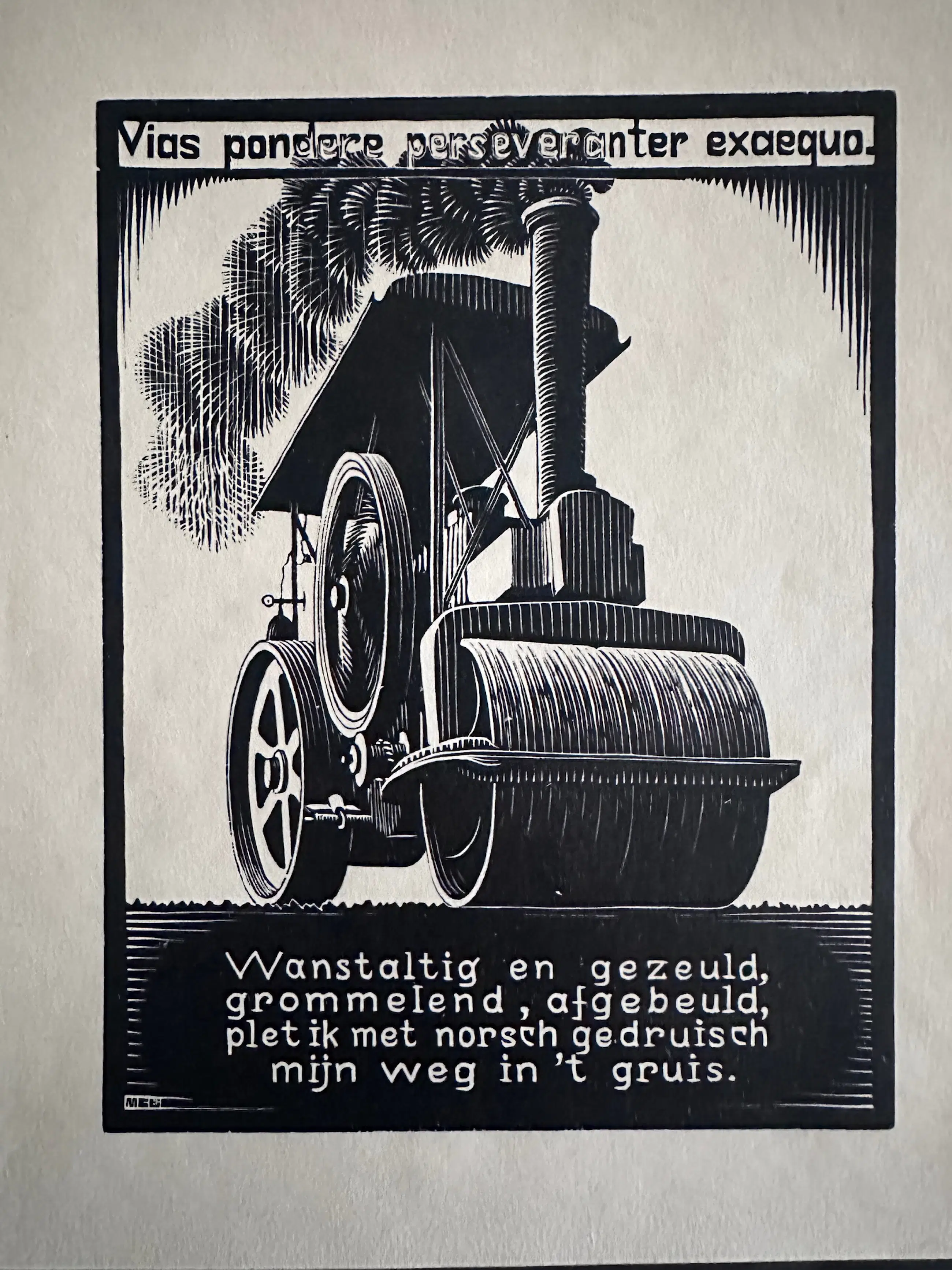 In het boekwerk, waar deze houtsnede uit komt, zitten 24 houtsneden ( tekst in Nederlands en Latijn ) , de tekst is van zijn vriend A.E. Drijfhout. De stoomwals is eentje van deze serie.