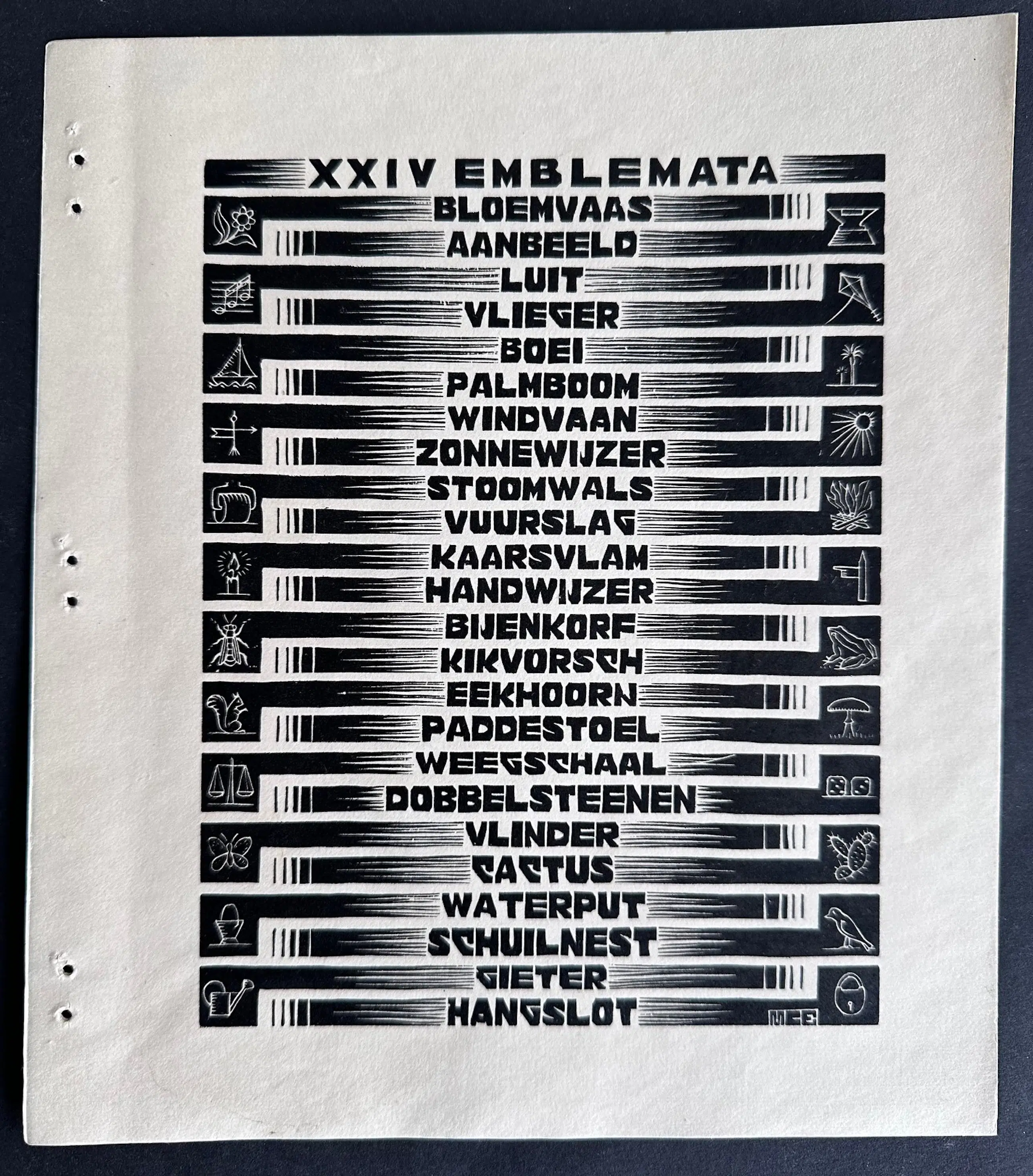 Voor de serie XXIV Emblemata dat zijn zinnebeelden ( plaatjes met praatjes, geïnspireerd op de Gouden Eeuw ) maakte Escher deze houtsnede.