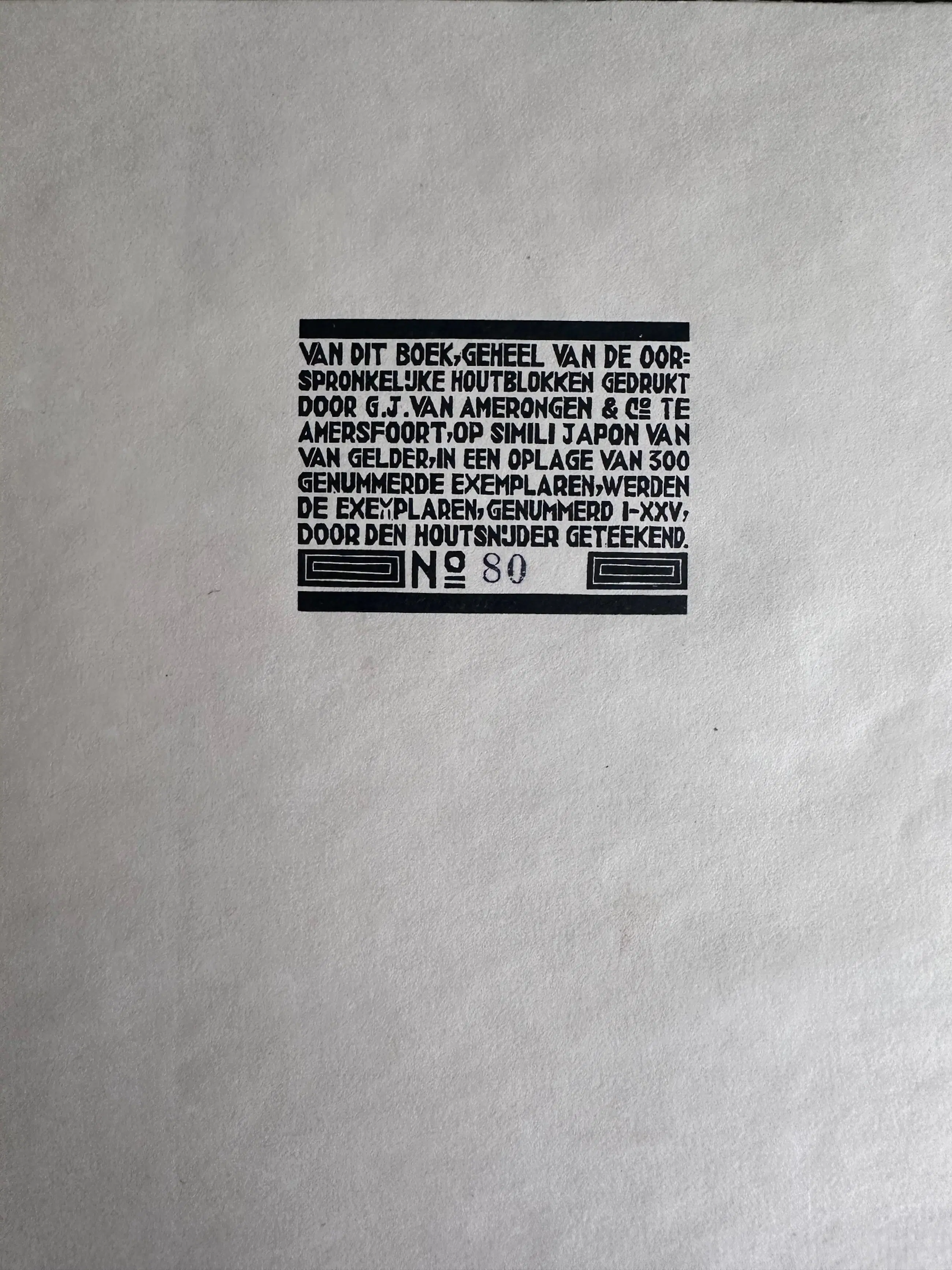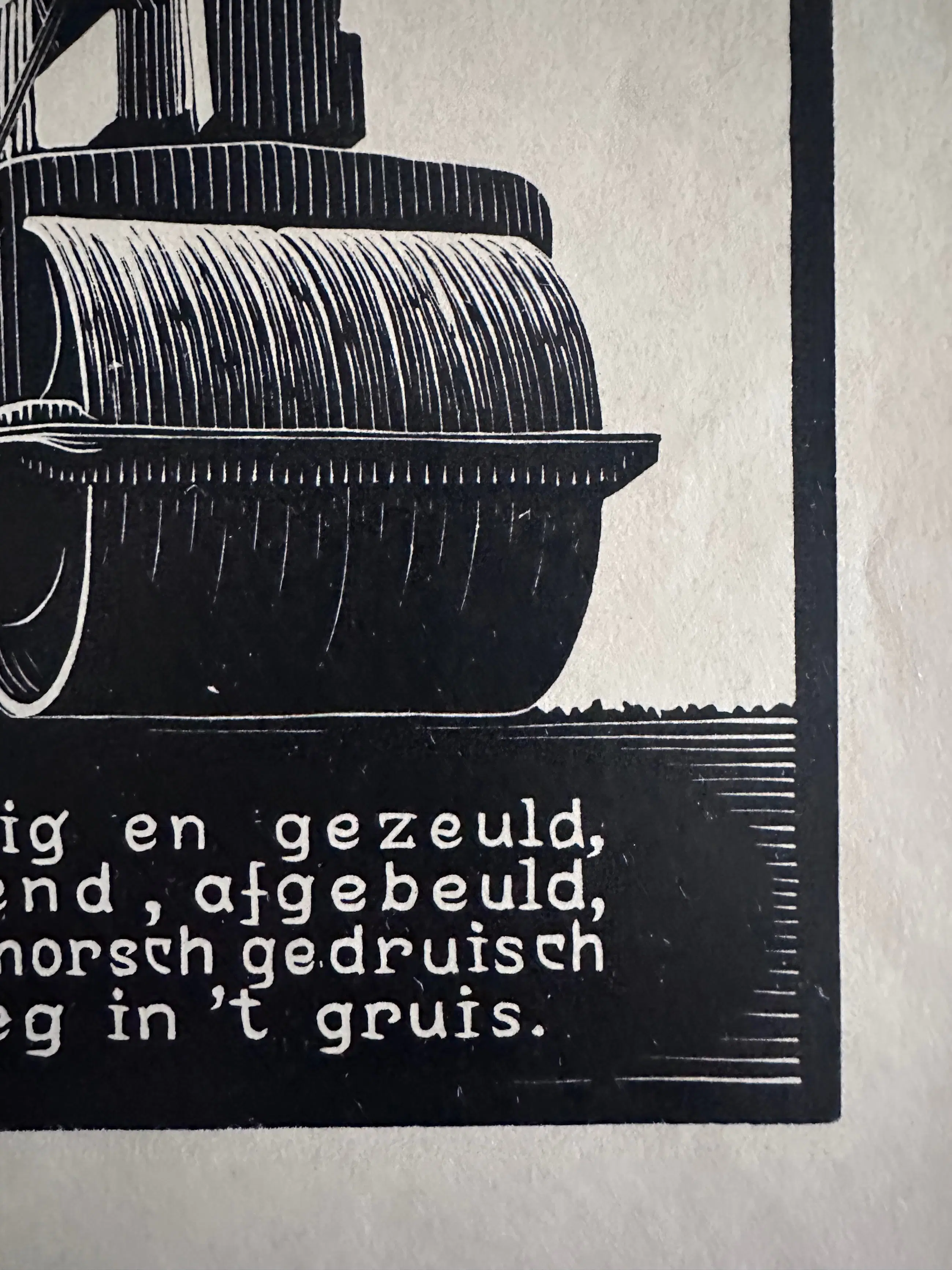 De houtsnede is in mooie staat en licht verkleurd i.v.m. de ouderdom.