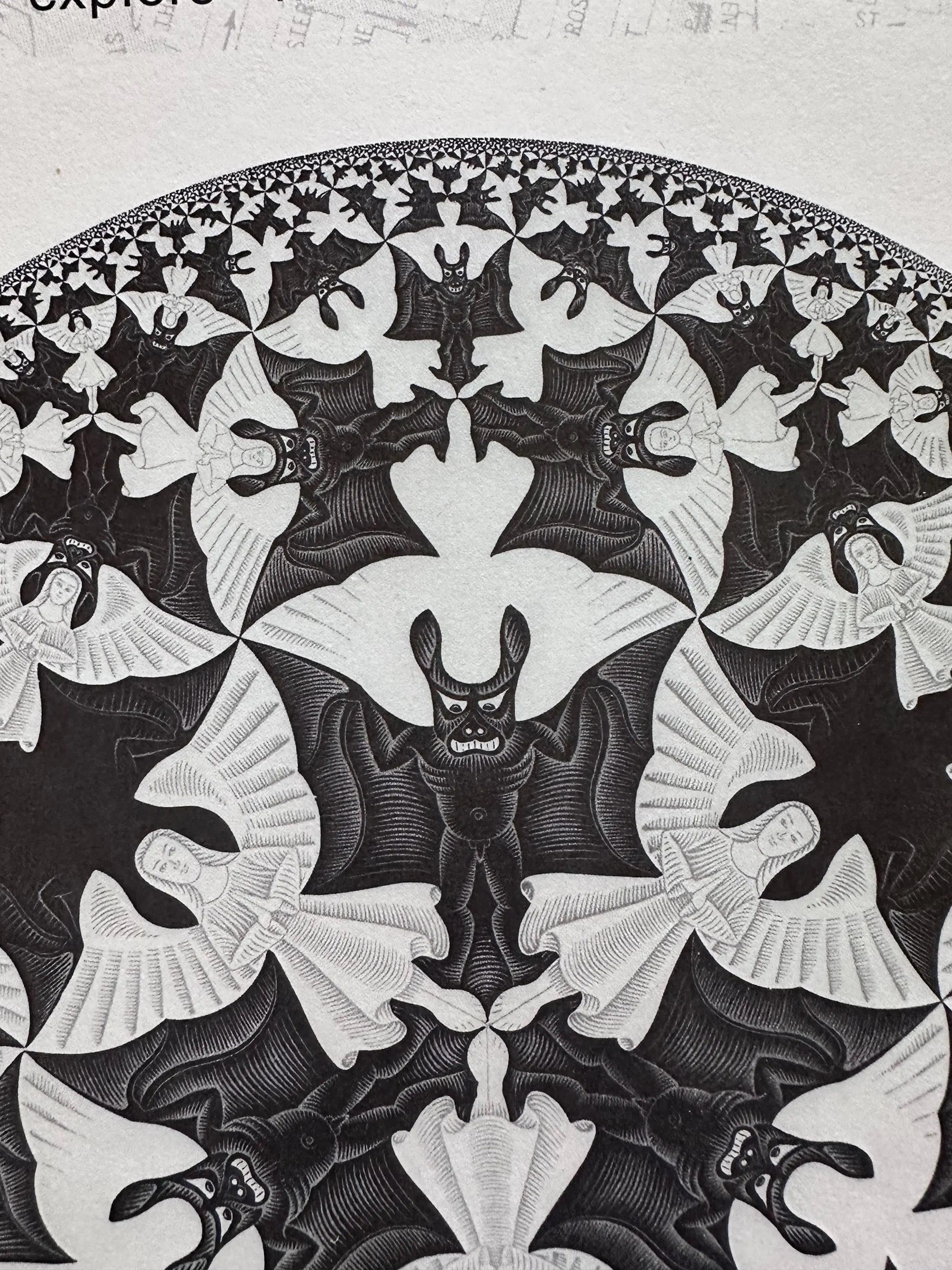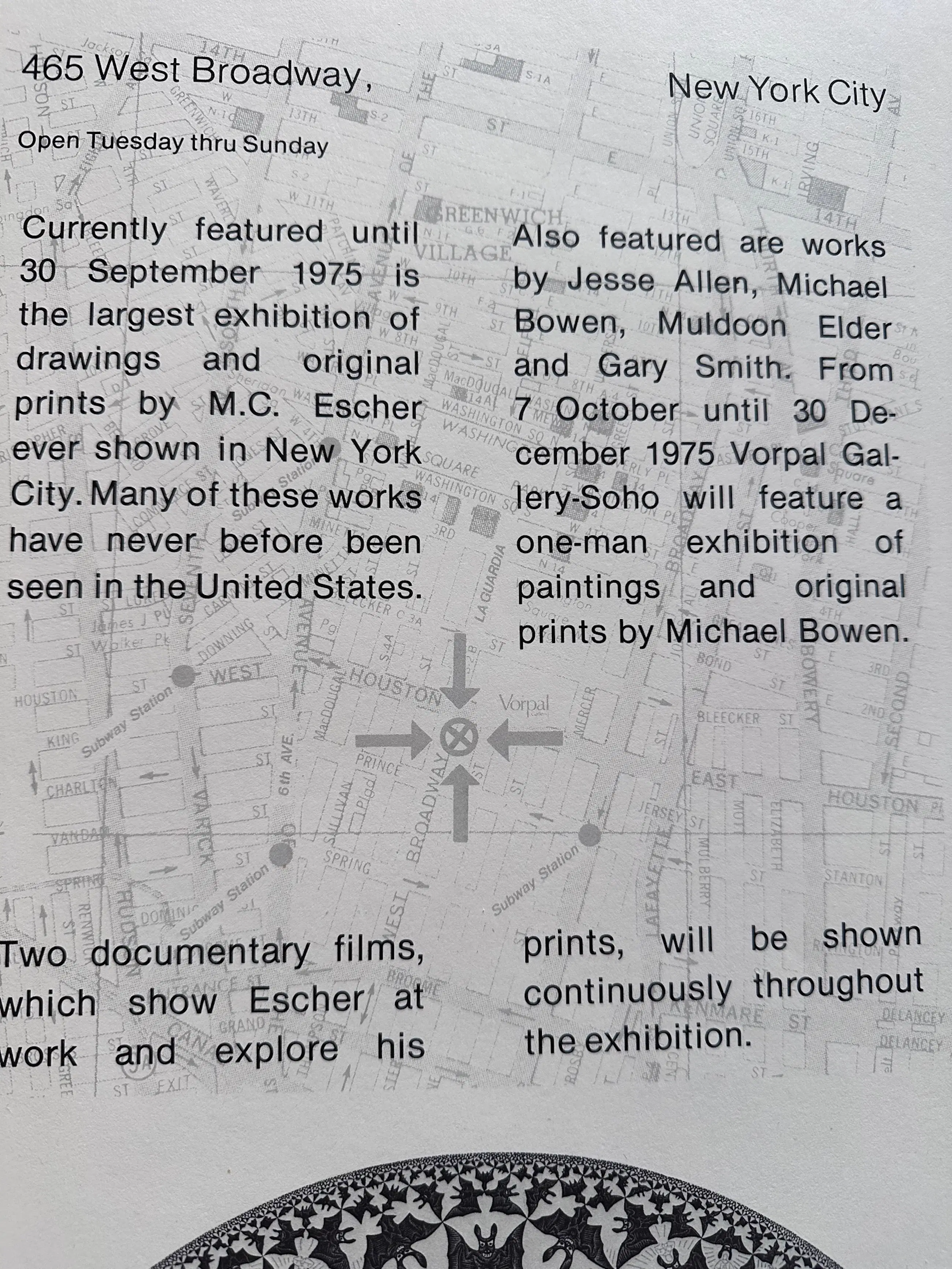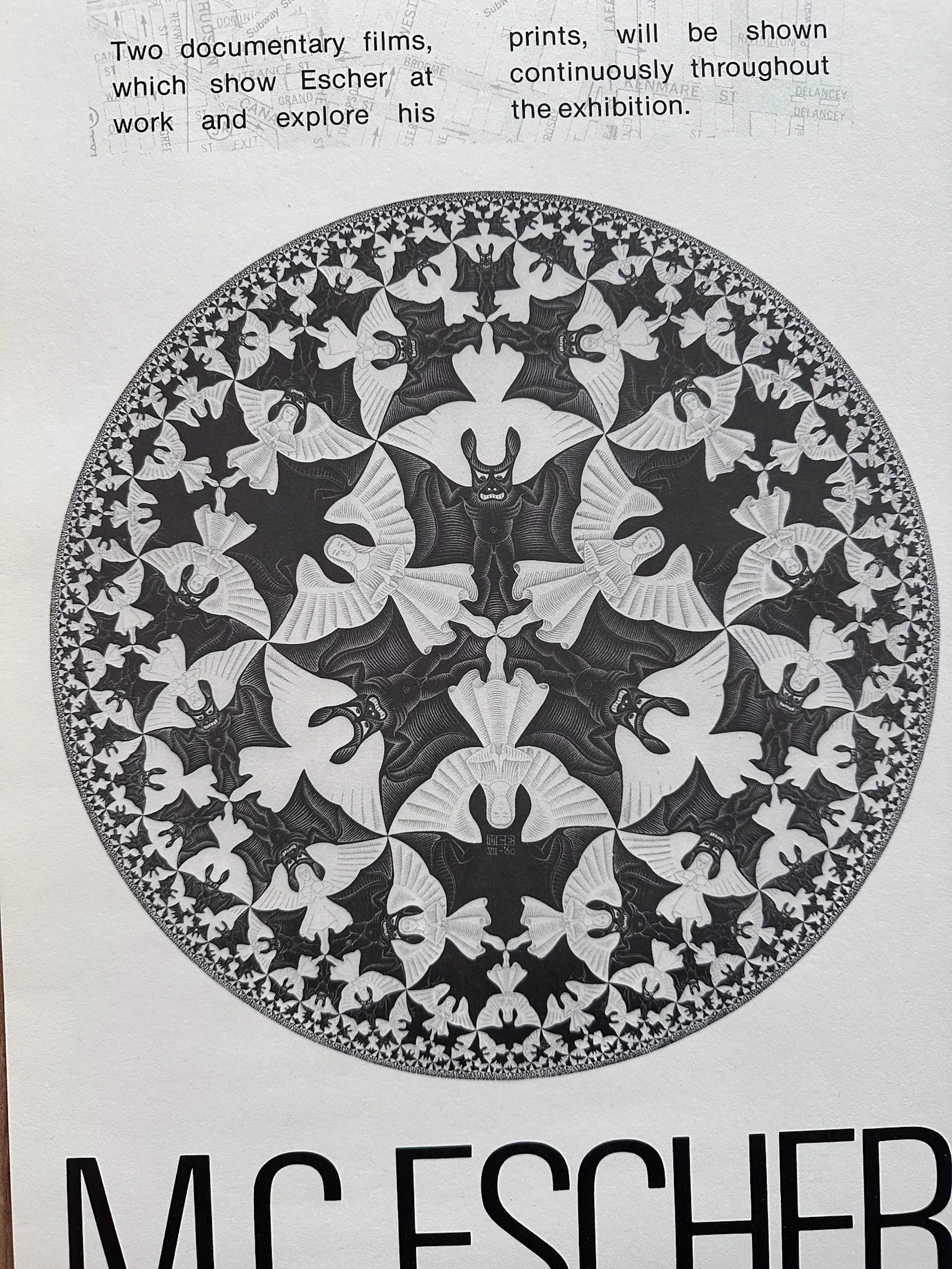 De Vorpal Gallery bracht diverse tentoonstellingen in de VS van het werk van Escher en liet hiervoor prachtige affiches maken waar dit er een van is.