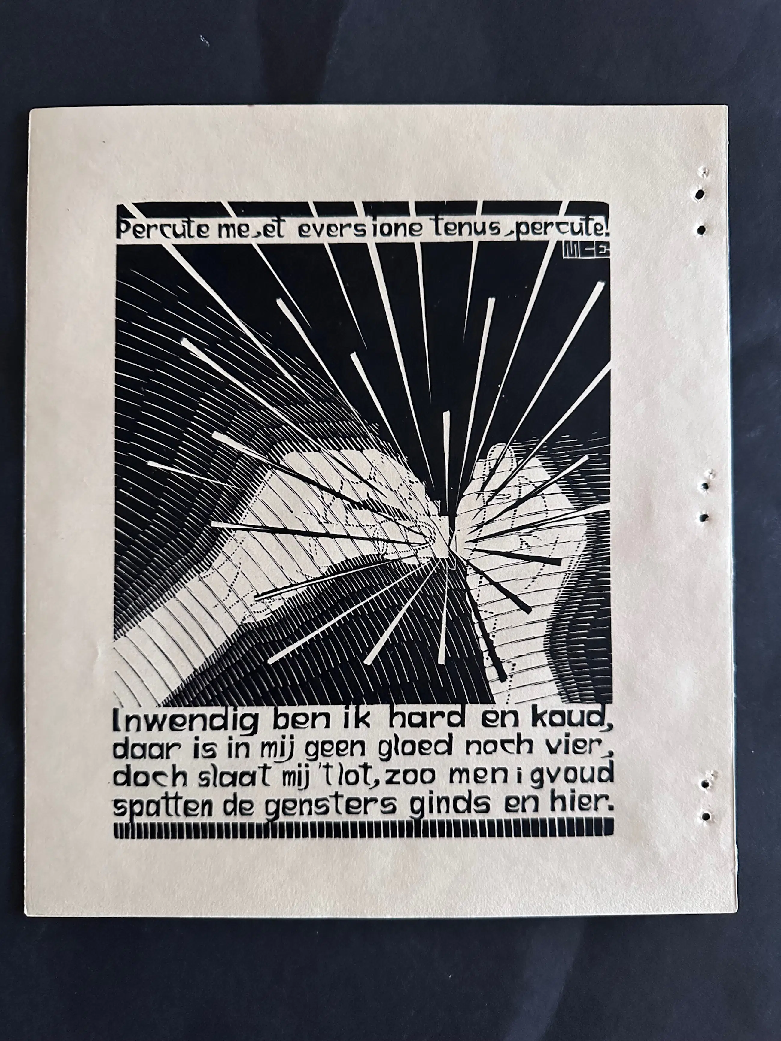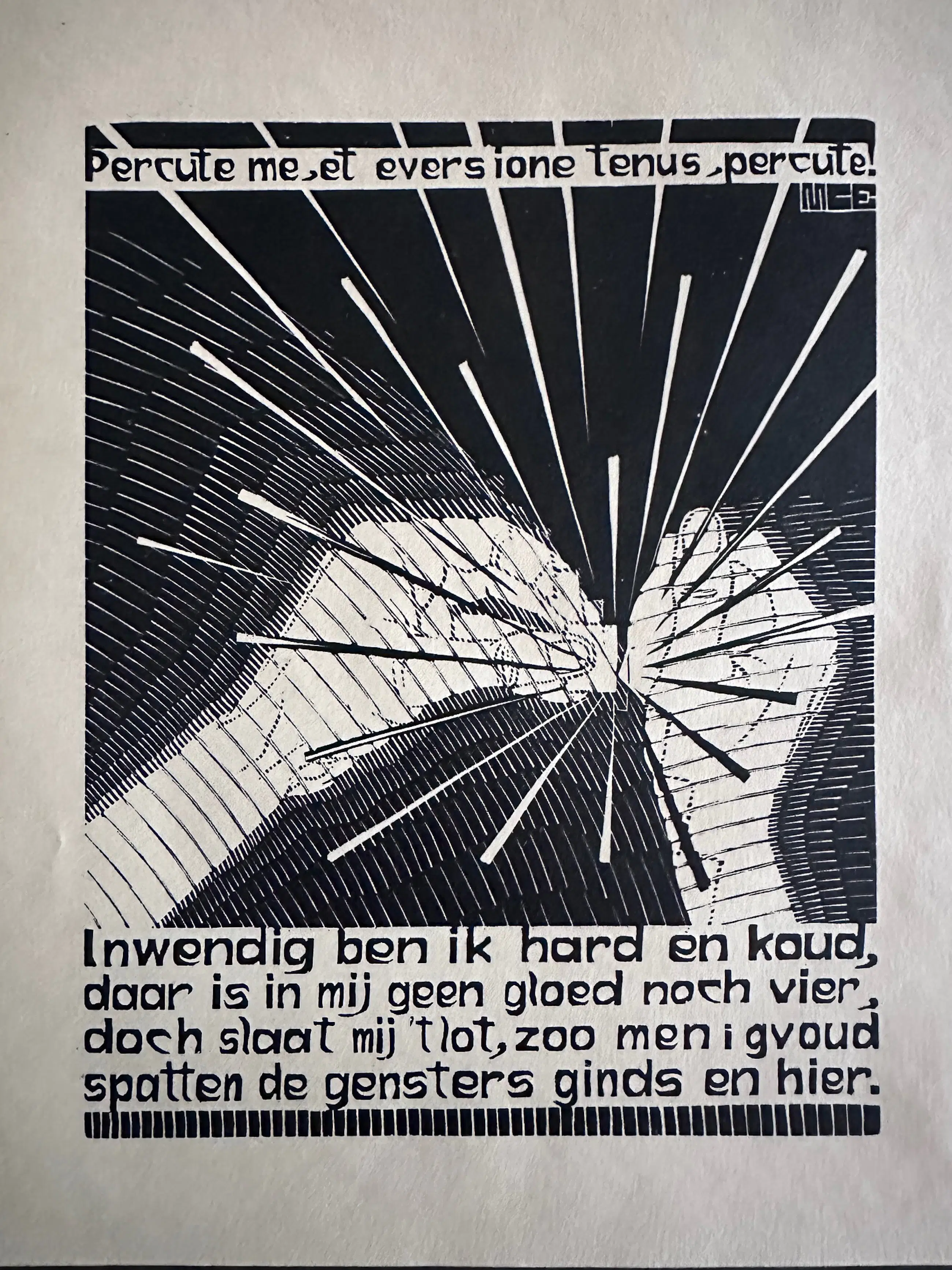 Voor de serie XXIV Emblemata dat zijn zinnebeelden ( plaatjes met praatjes, geïnspireerd op de Gouden Eeuw ) maakte Escher deze houtsnede.