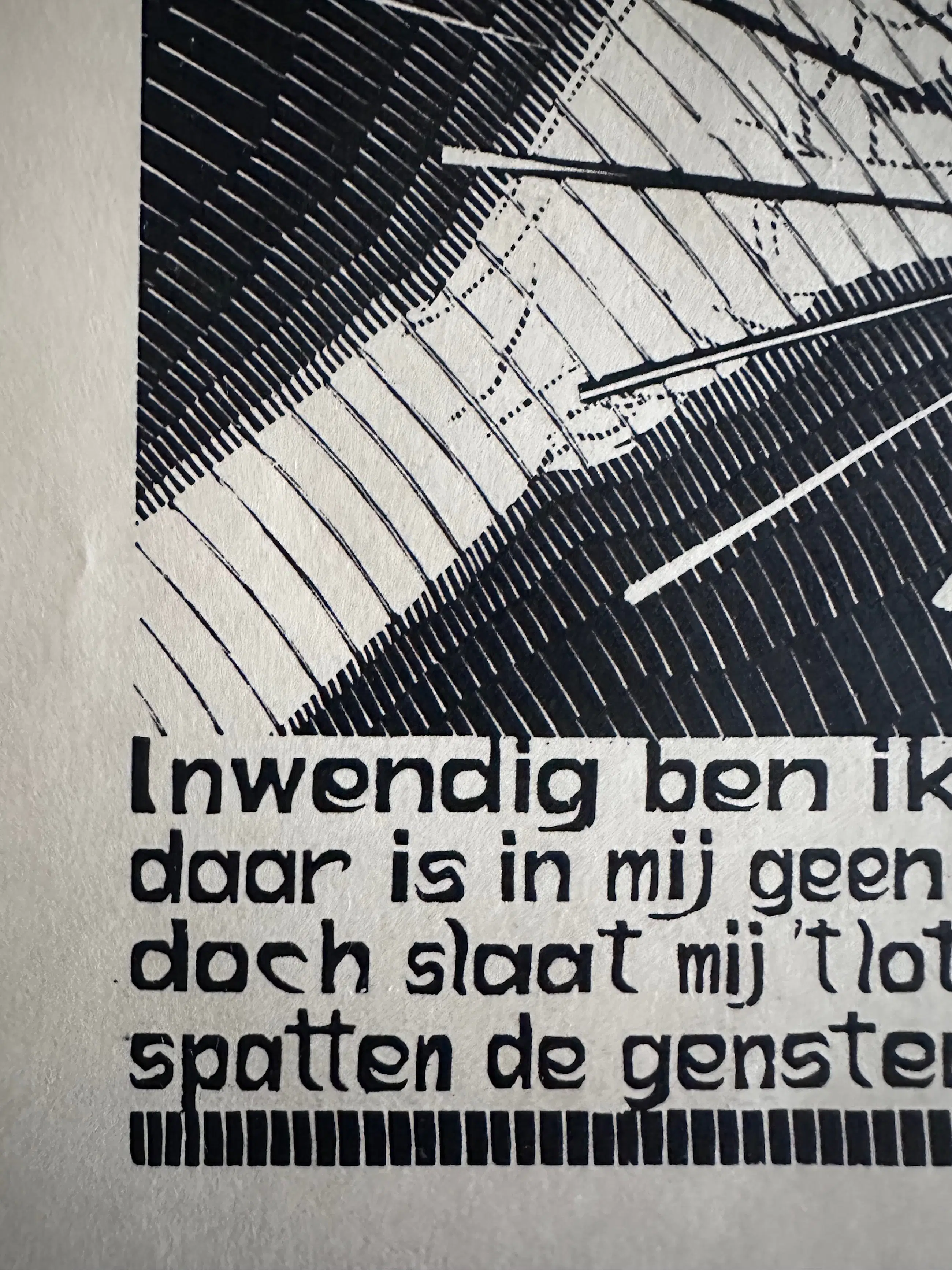 Afmeting houtsnede 14 * 18 cm.