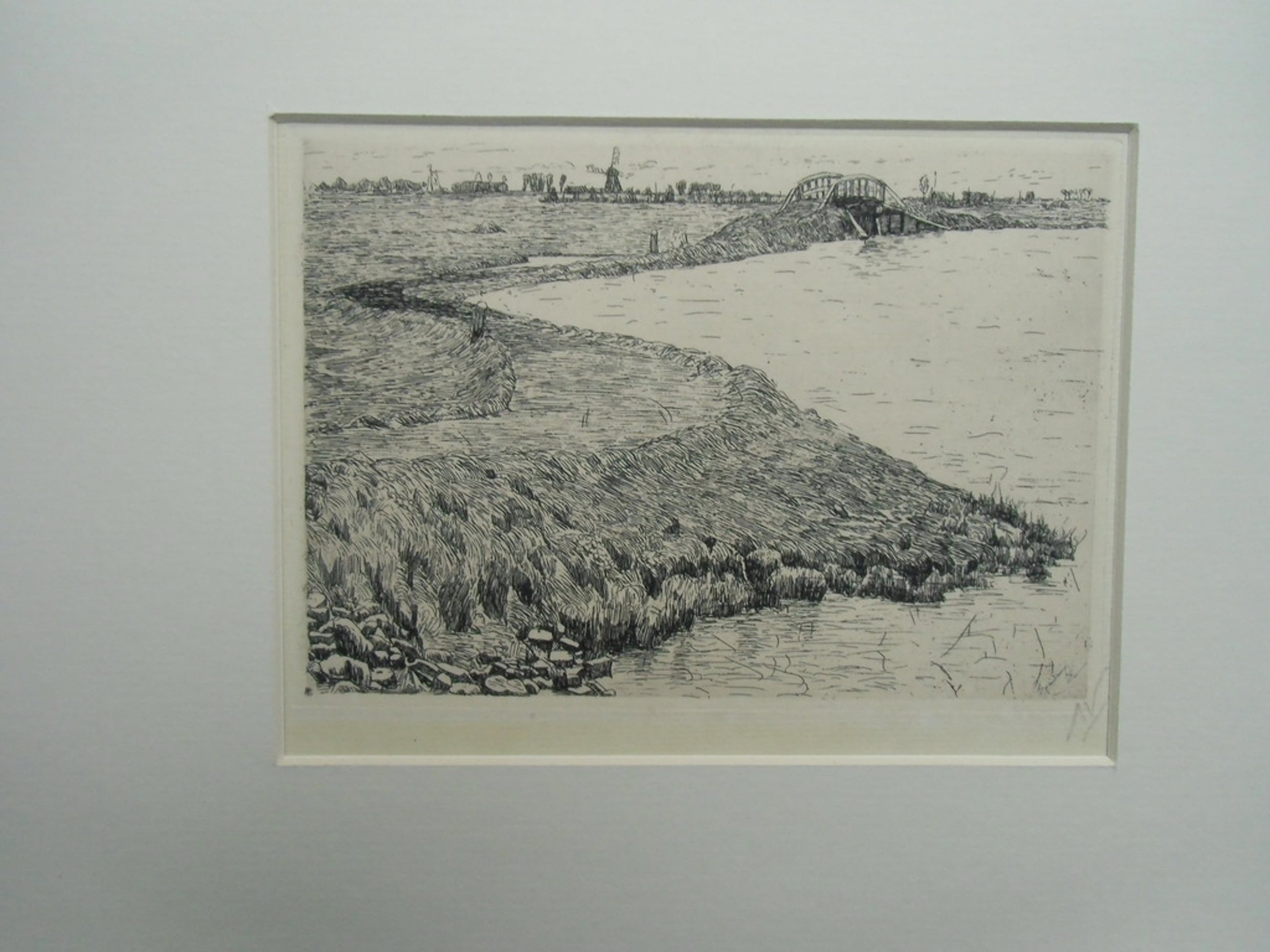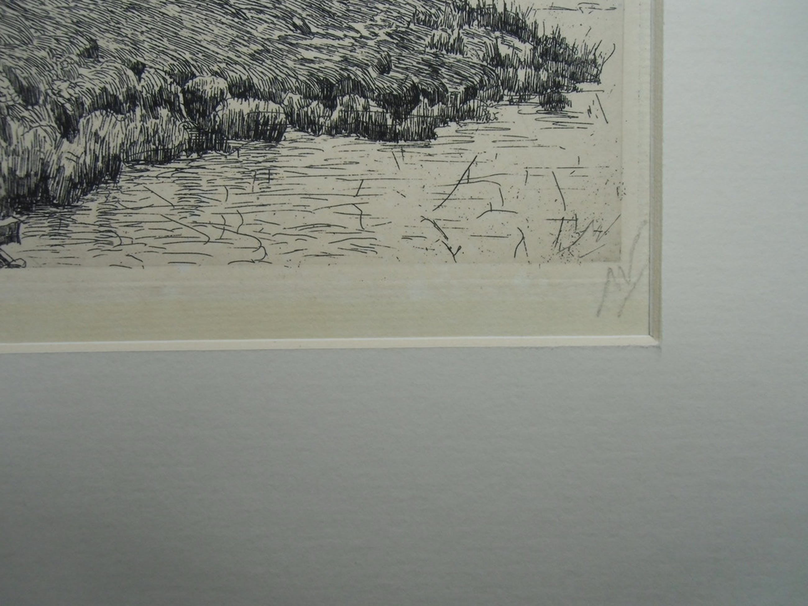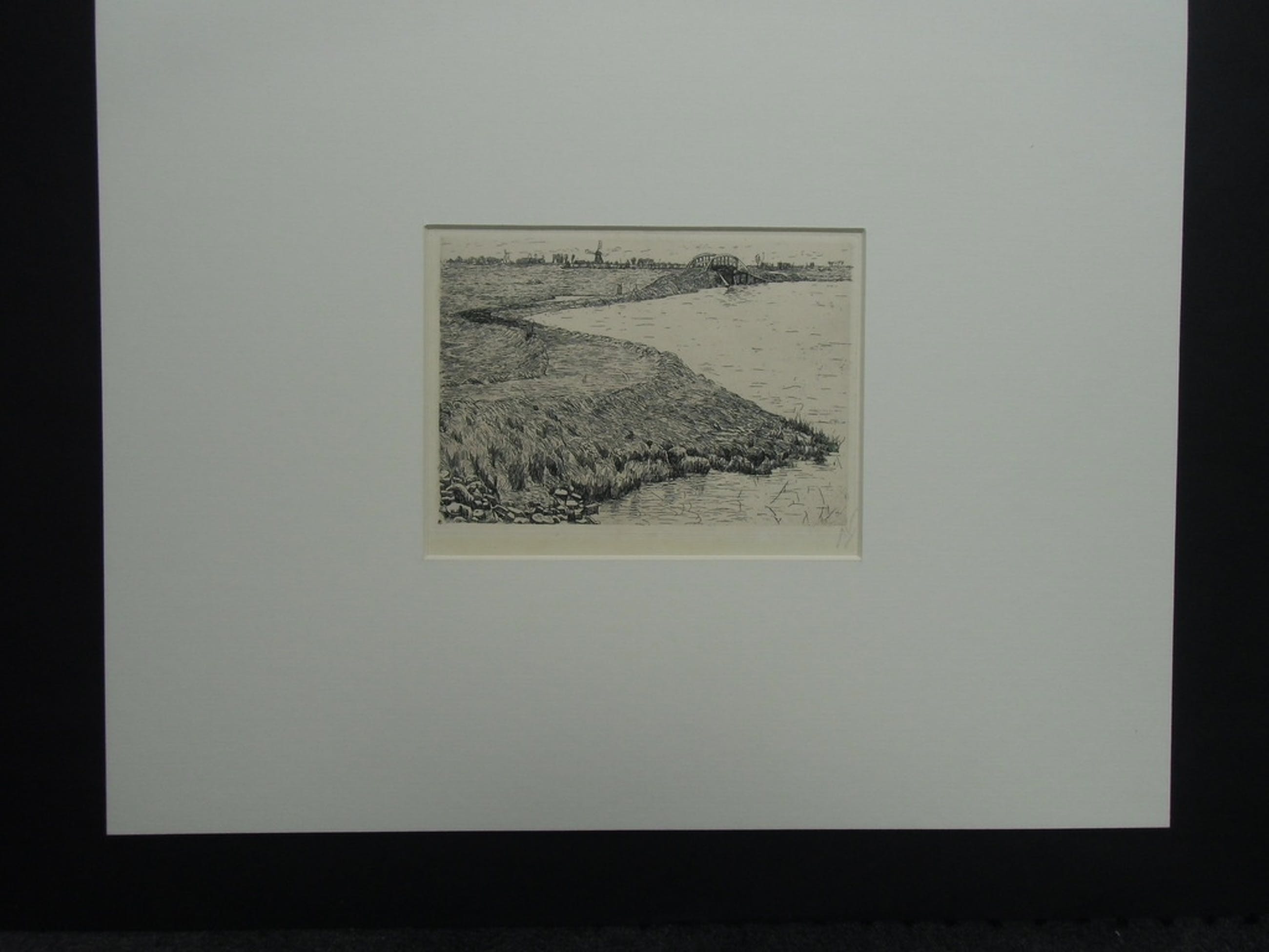 Deze ets op vergé papier heeft een beeldformaat van 14.5 x 19.5 cm. Potlood gesigneerd met initialen r.o. Mooie conditie. Opgenomen in passepartout met achtervel.