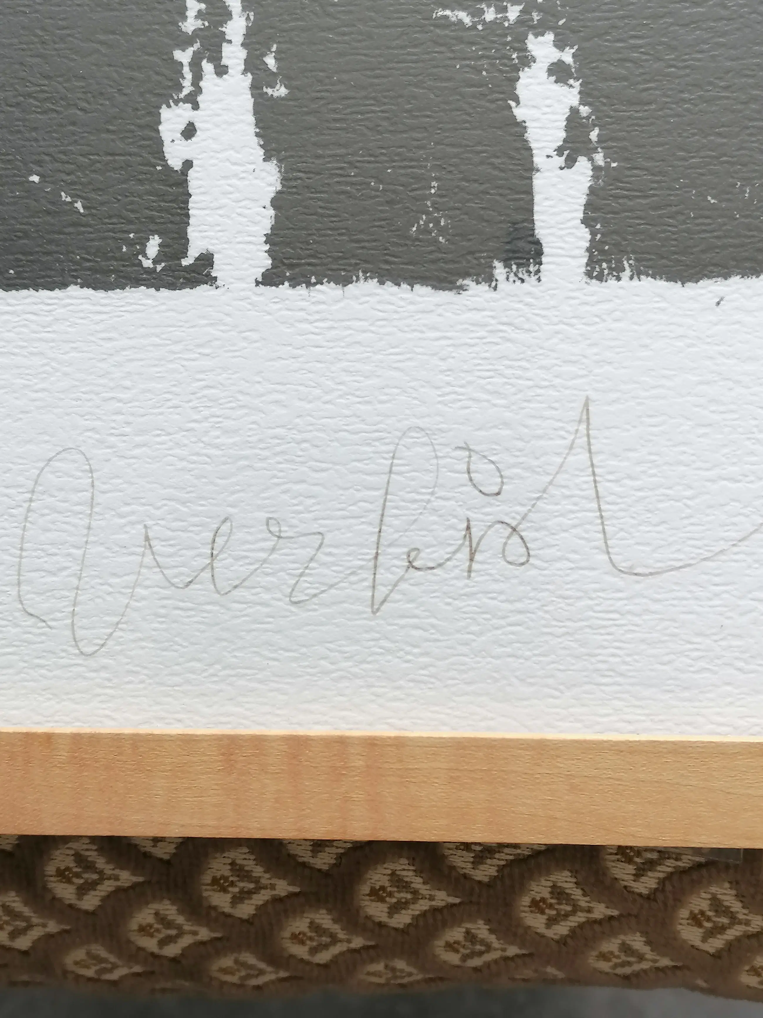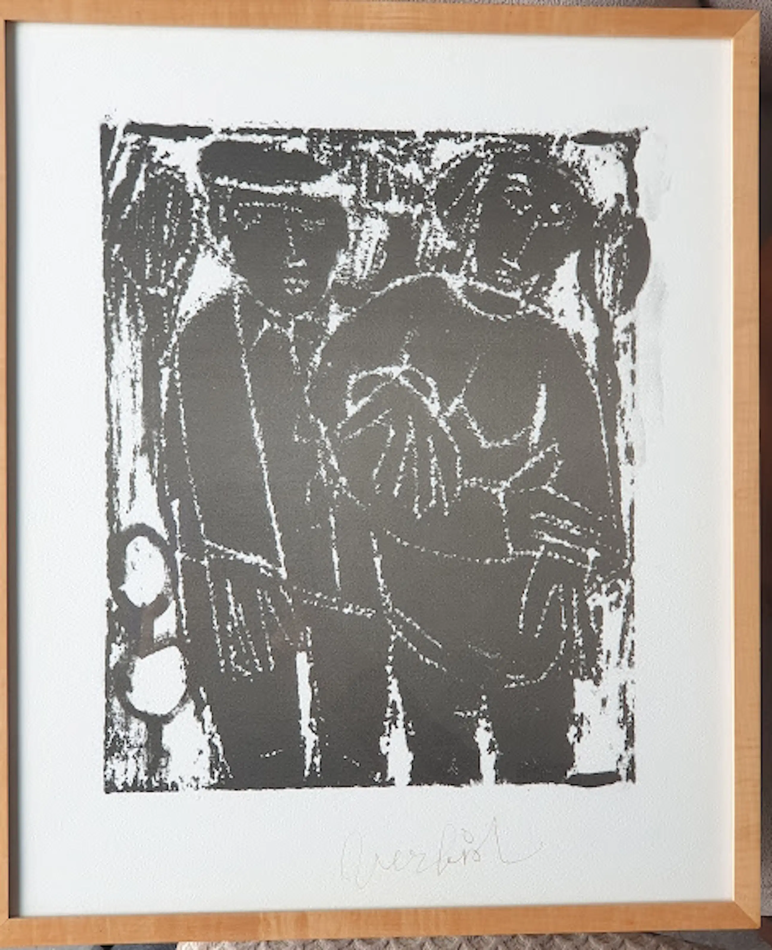 Deze kurkgravure is een werk van Maurits Verbist en steld een wandeling voor van een boer met z'n boerin in het dorp van Verbist op een zondag.Geschenk van vrienden van Verbist Maurits uit hun eigen collectie om bewezen diensten. Altijd bewonderd door bezoekers en in goede staat gebleven. Wegens verhuis en te weinig plaats te koop aangeboden.