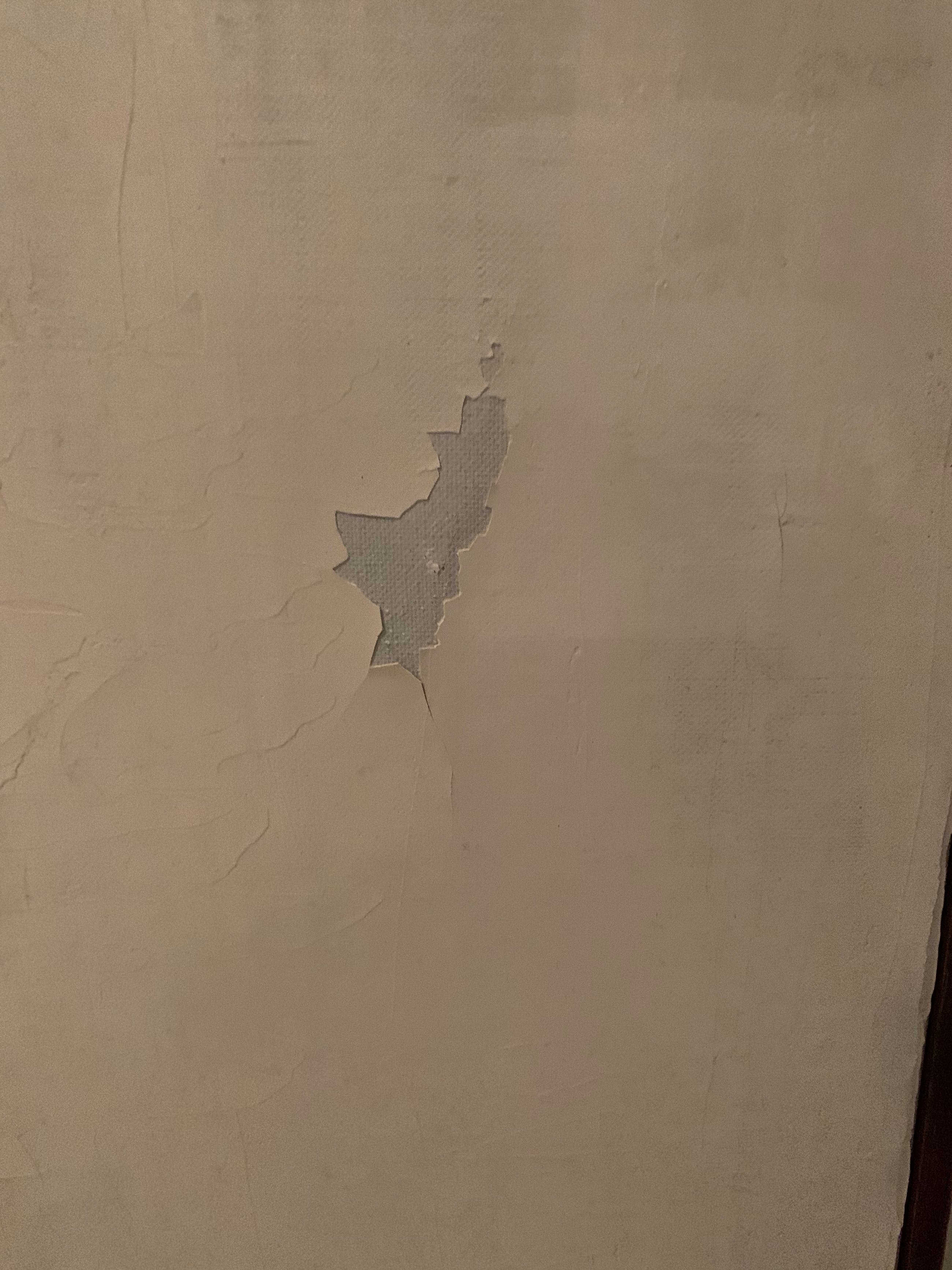 wegens droogte enkele beschadigingen, voornamelijk barsten in de verflaag
