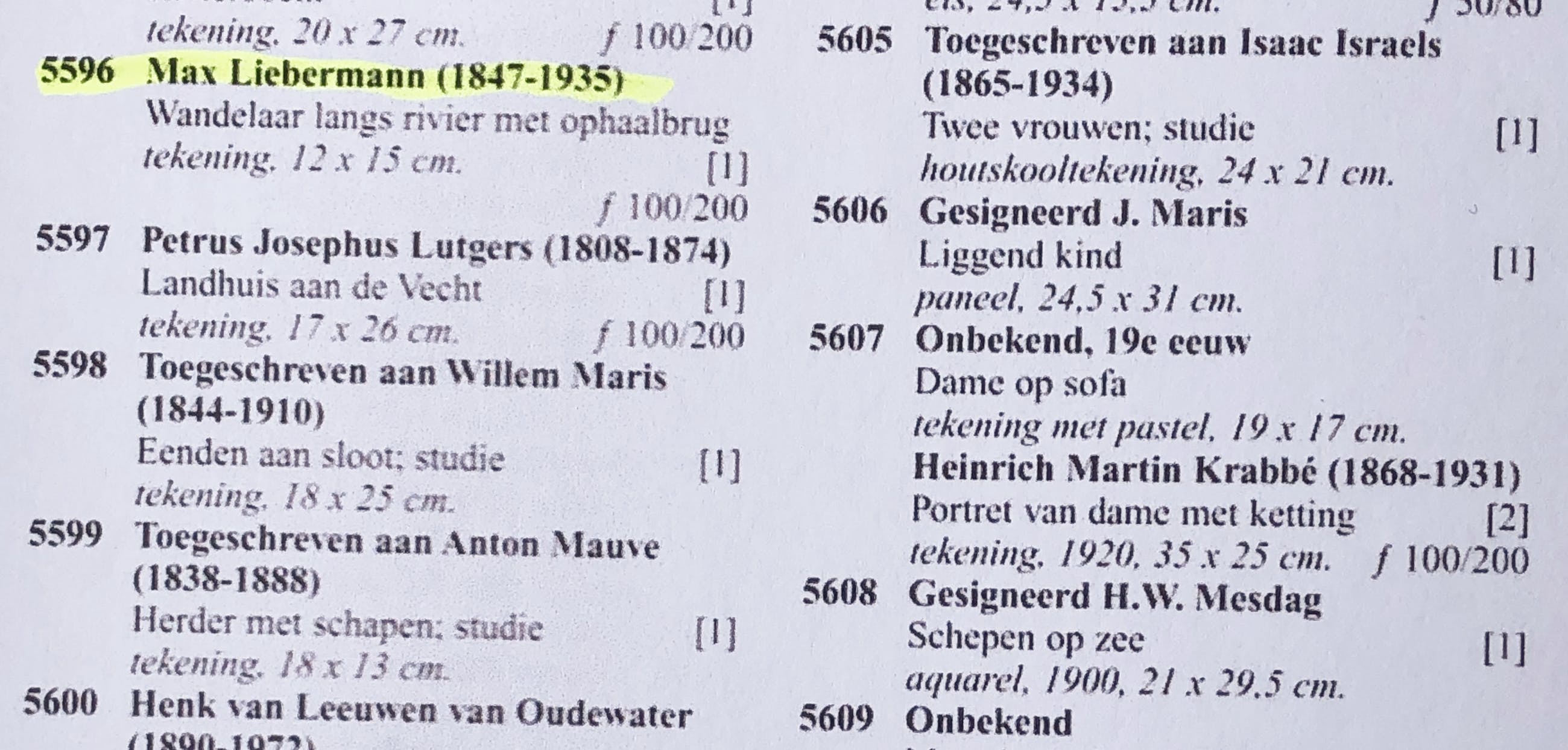 belangrijke collectie tekeningen Haagse School (zie foto catalogus). Op de oude inlijsting was vermeld “Langs de Vecht”, maar deze titel is niet (rechtstreeks) afkomstig van de kunstenaar. De tekening is te