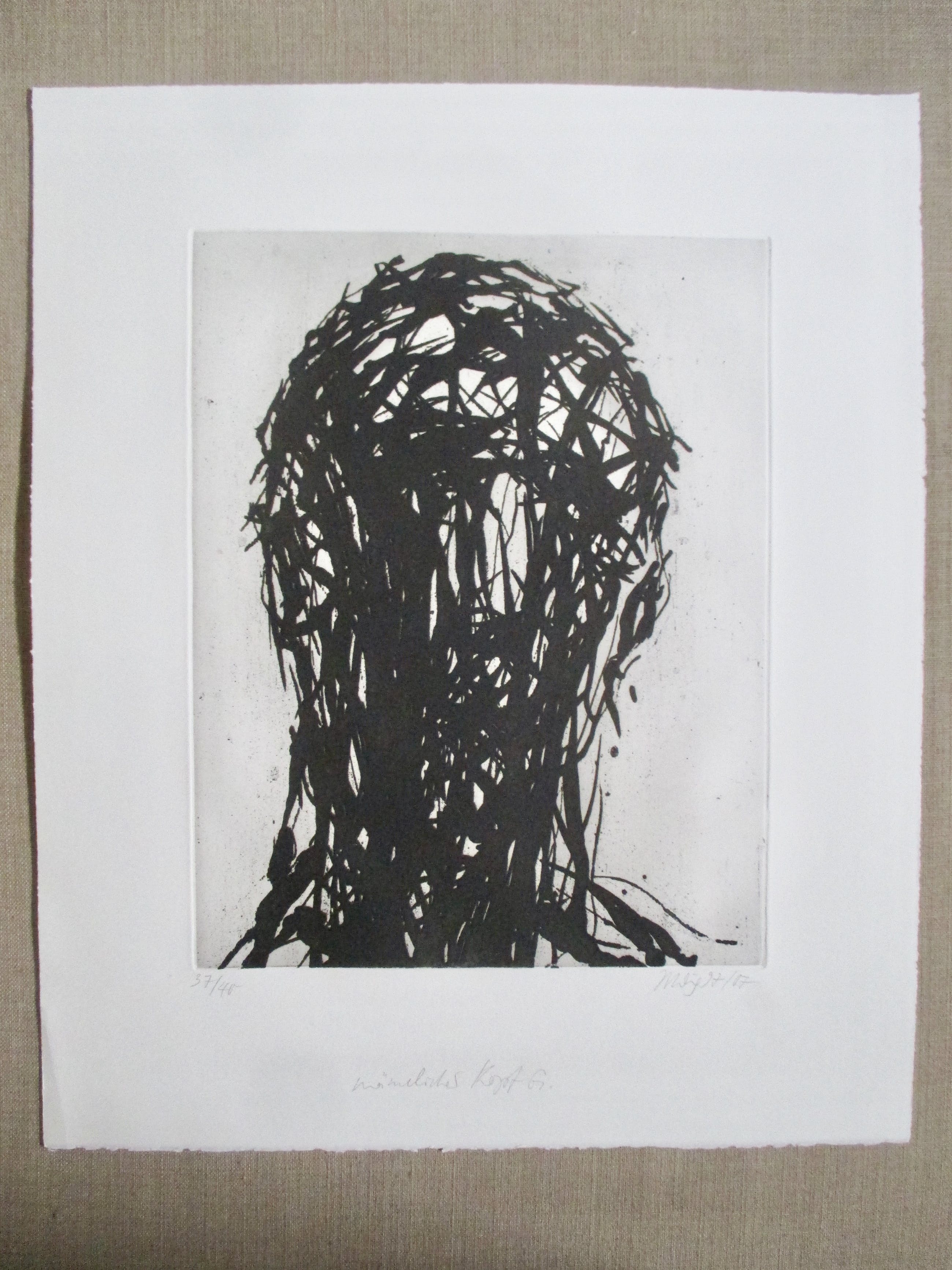 Ets van Max Uhlig, gesigneerd, gedateerd en genummerd in potlood. verzending tussen twee platen, 9,25, aangetekend 11,20