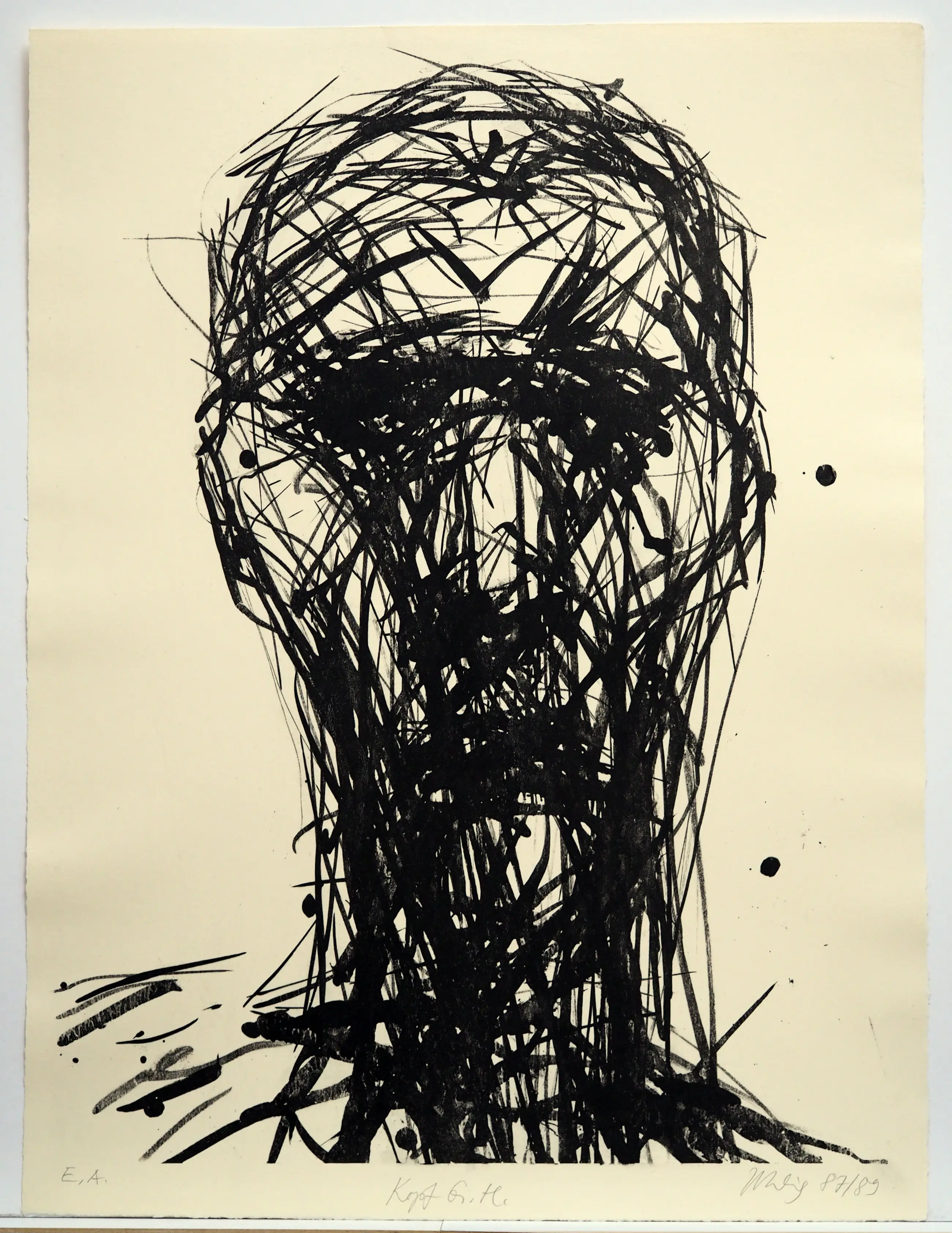 Max Uhlig "hoofd GH" Lithografie, 1987/1989 handgesigneerd en gedateerd en ingeschreven EA (kunstenaarsbewijs)