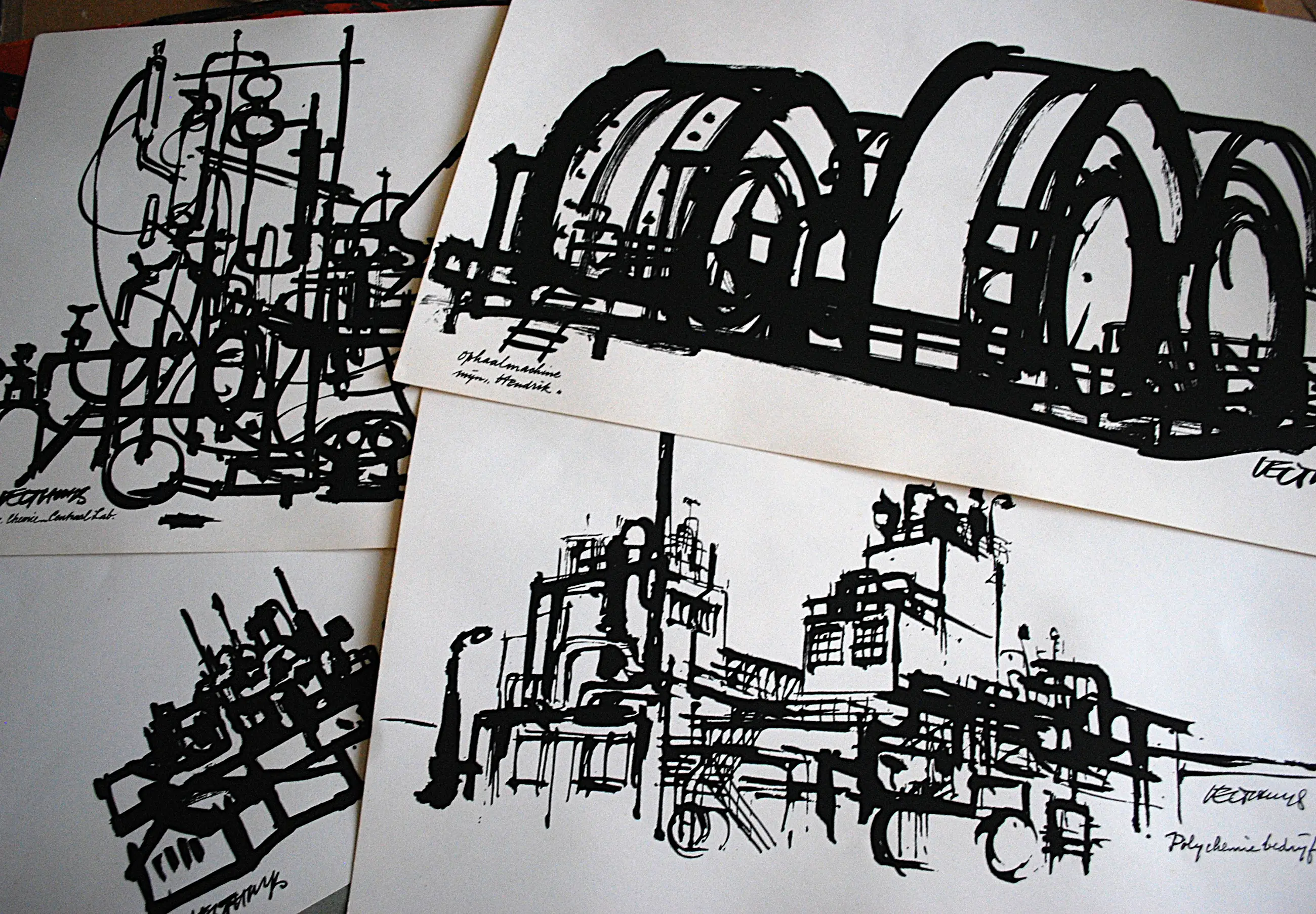 Max Velthuijs - 4 zeefdrukken Staatsmijnen, gesigneerd op een apart blad, plus map