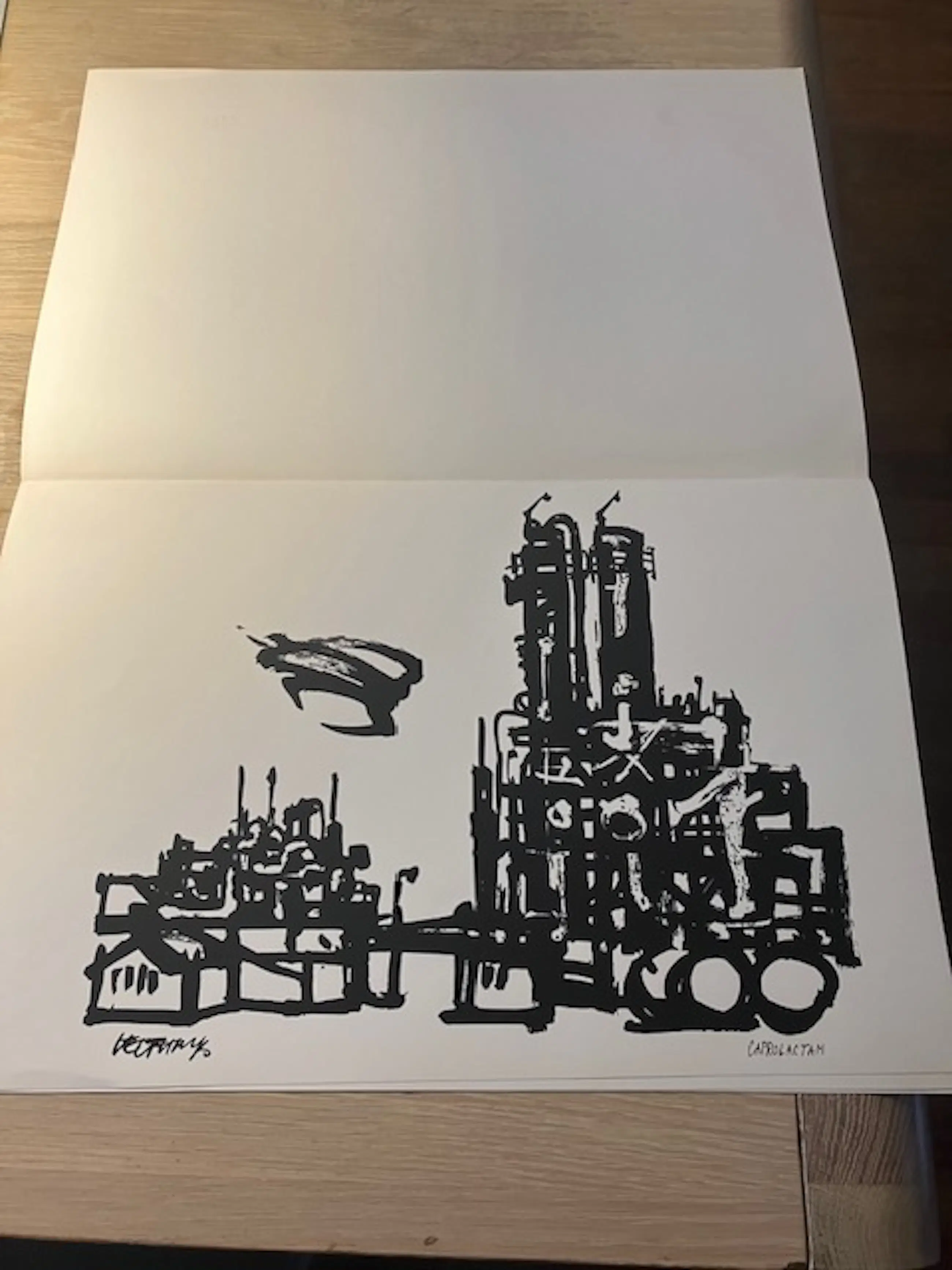 Max Velthuijs tekende in opdracht van de Staatsmijnen het (verdwijnende) landschap van de Staatsmijnen en dit werd gebundeld in 10 tekeningen. Deze uitgave is beperkt uitgegeven in een oplage van 2000. De tekeningen worden los aangeboden. Aangeboden exemplaar is nr. 5.