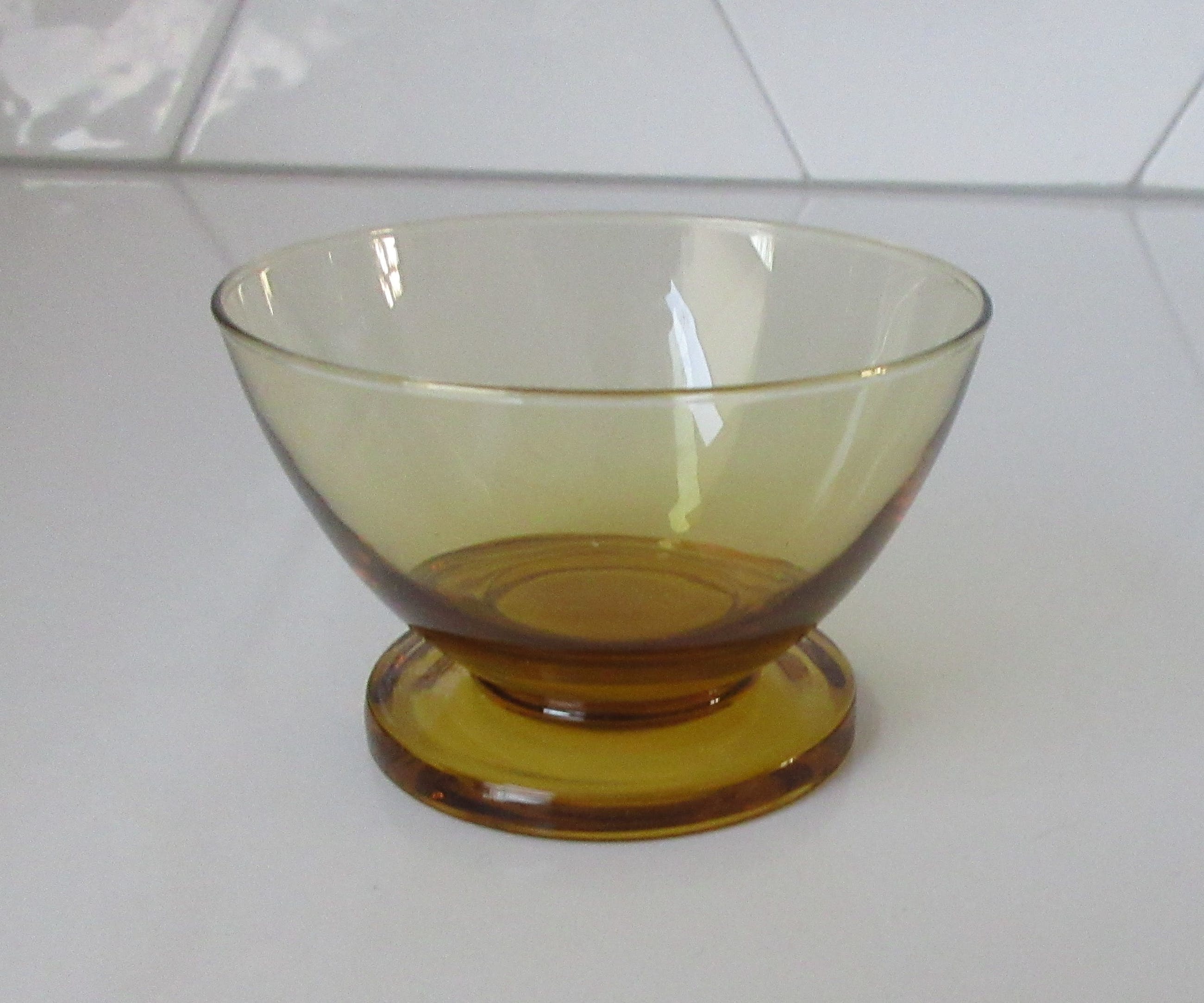 Amber Fruitglas model K1 servies Carnaval ontwerp Max Verboeket voor de Kristalunie Maastricht in de jaren'50. In prima conditie.