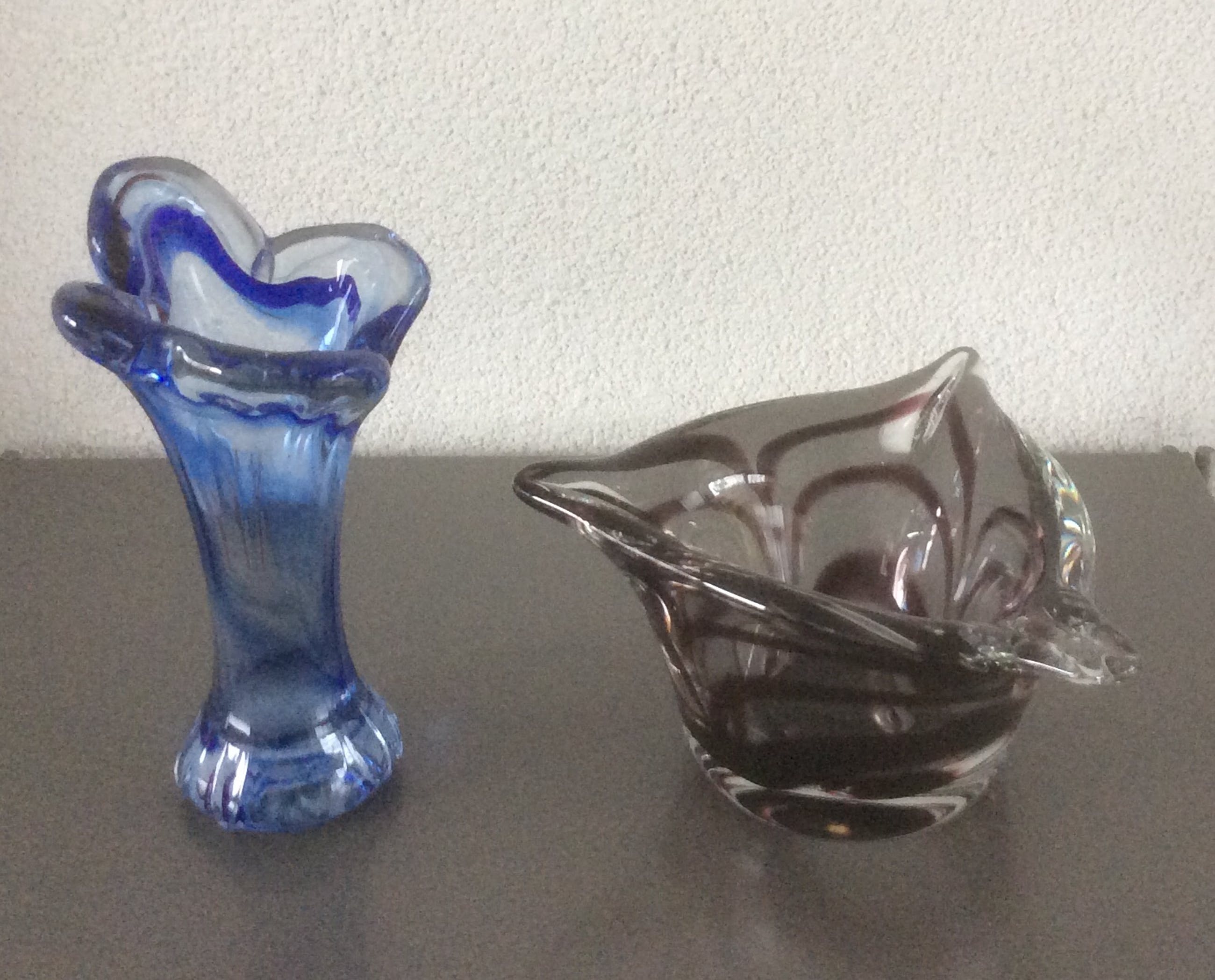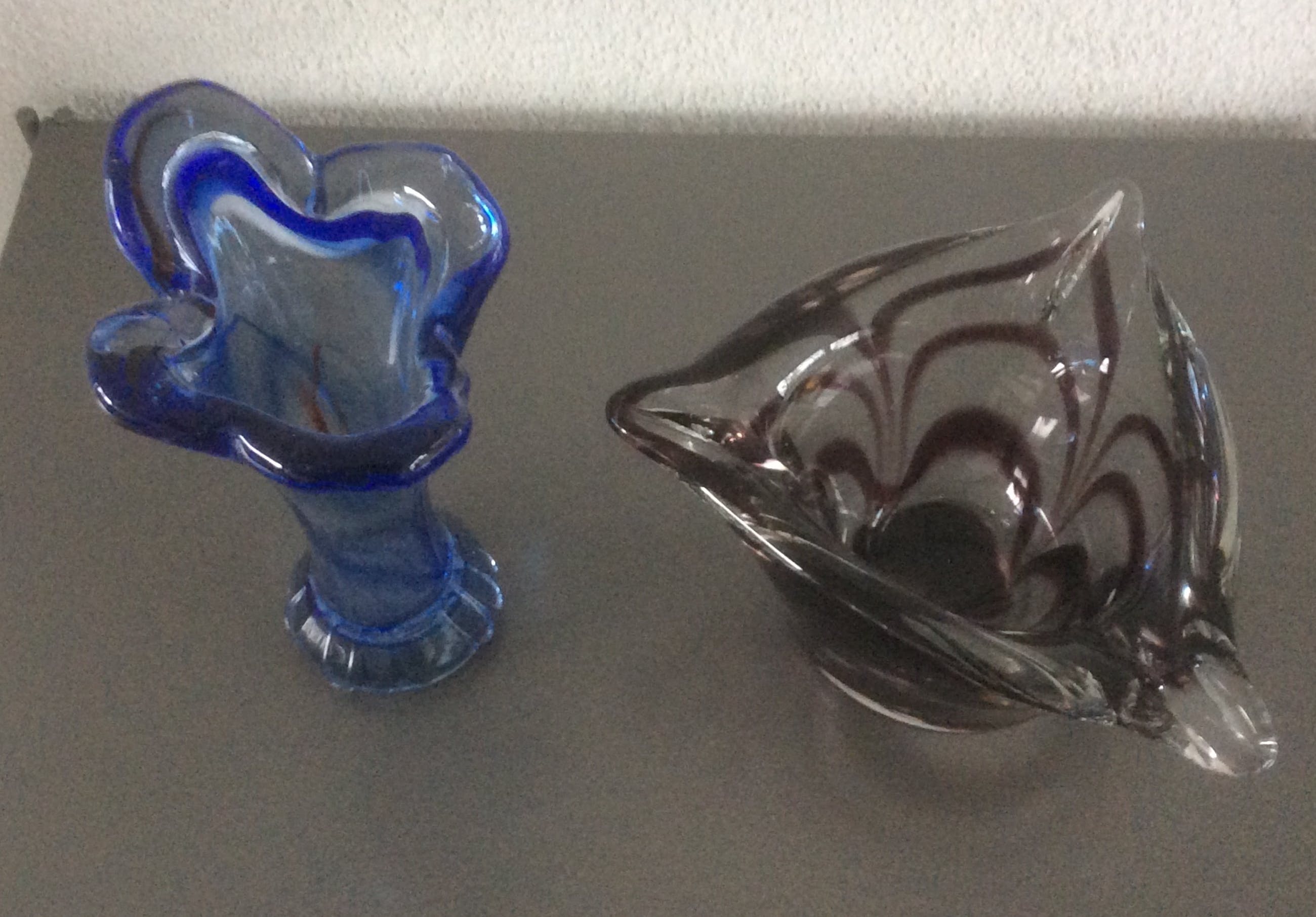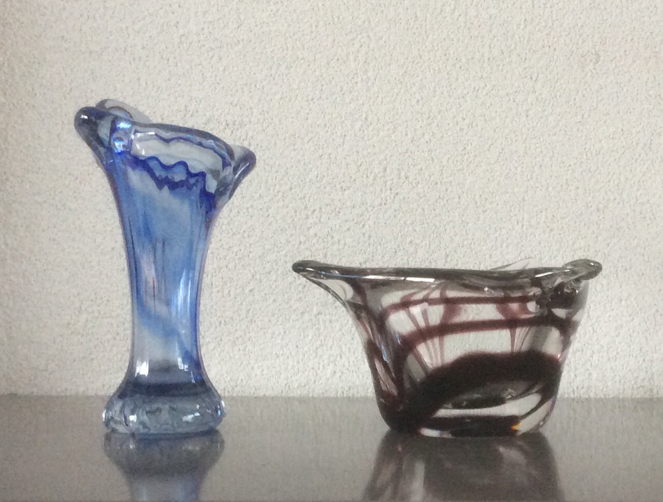 Het vaasje en het schaaltje zijn een ontwerp van Max Verboeket voor de Kristalunie van Maastricht. Het vaasje heeft blauwe kleurlijnen en een enkele rode. De hoogte is 16,5 cm. Het schaaltje heeft paarse kleurlijnen. De hoogte is 8 cm, de breedte 14,5 cm en de lengte 16 cm. Aan de onderkant staat heel klein “Marleen 2003” gegraveerd.