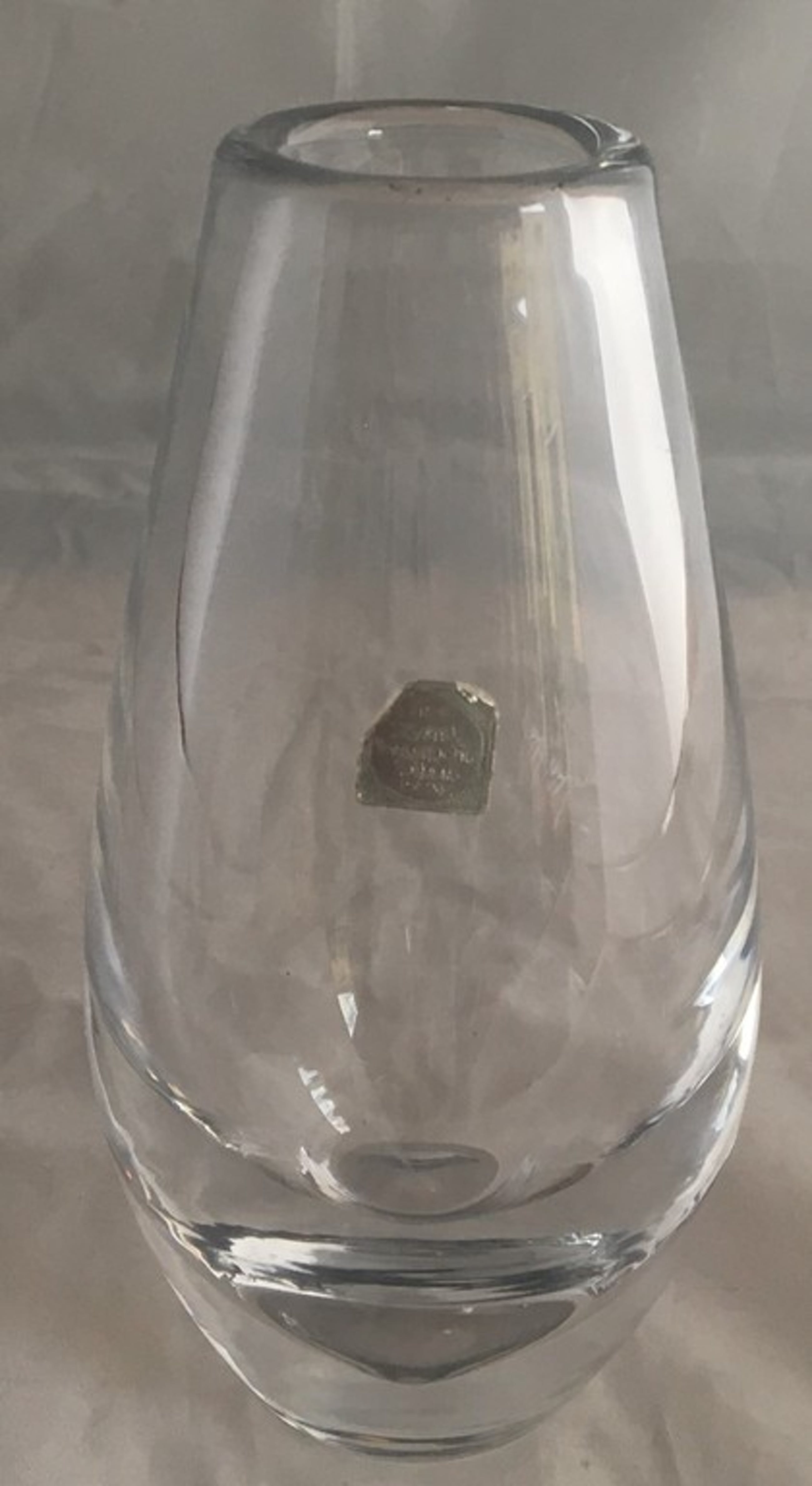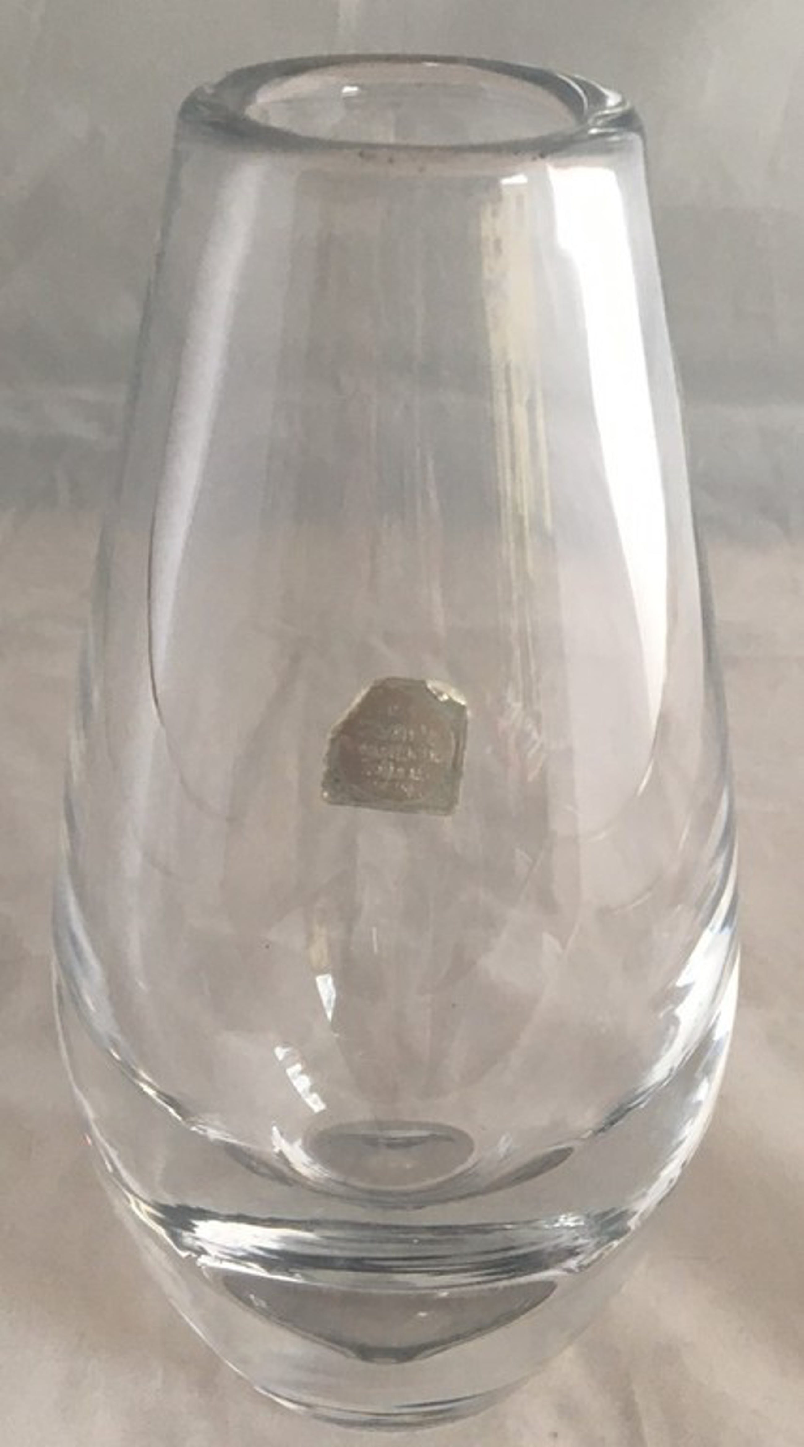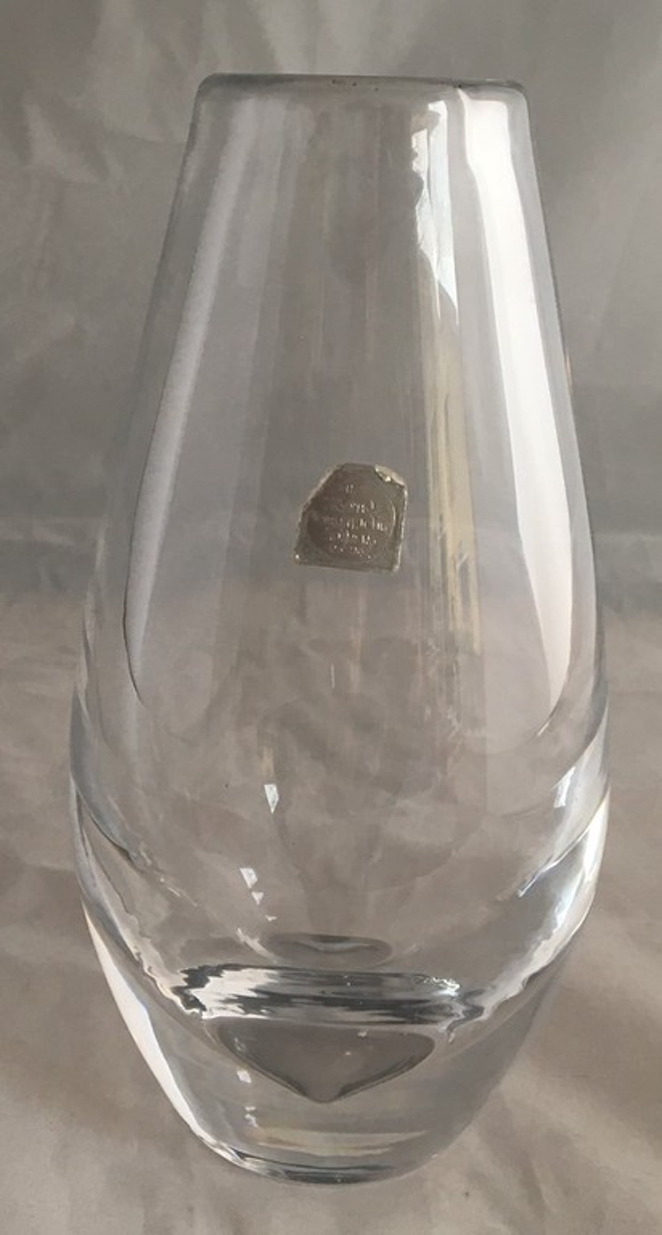 Mooie dikwandige blank glazen vaas ontwerp Max Verboeket voor de Kristalunie Maastricht. In prima onbeschadigde conditie, vrijwel geen aanslag of vuil in het glas. Voorzien van een merksticker aan de zijkant van de vaas, geen etsmerk.