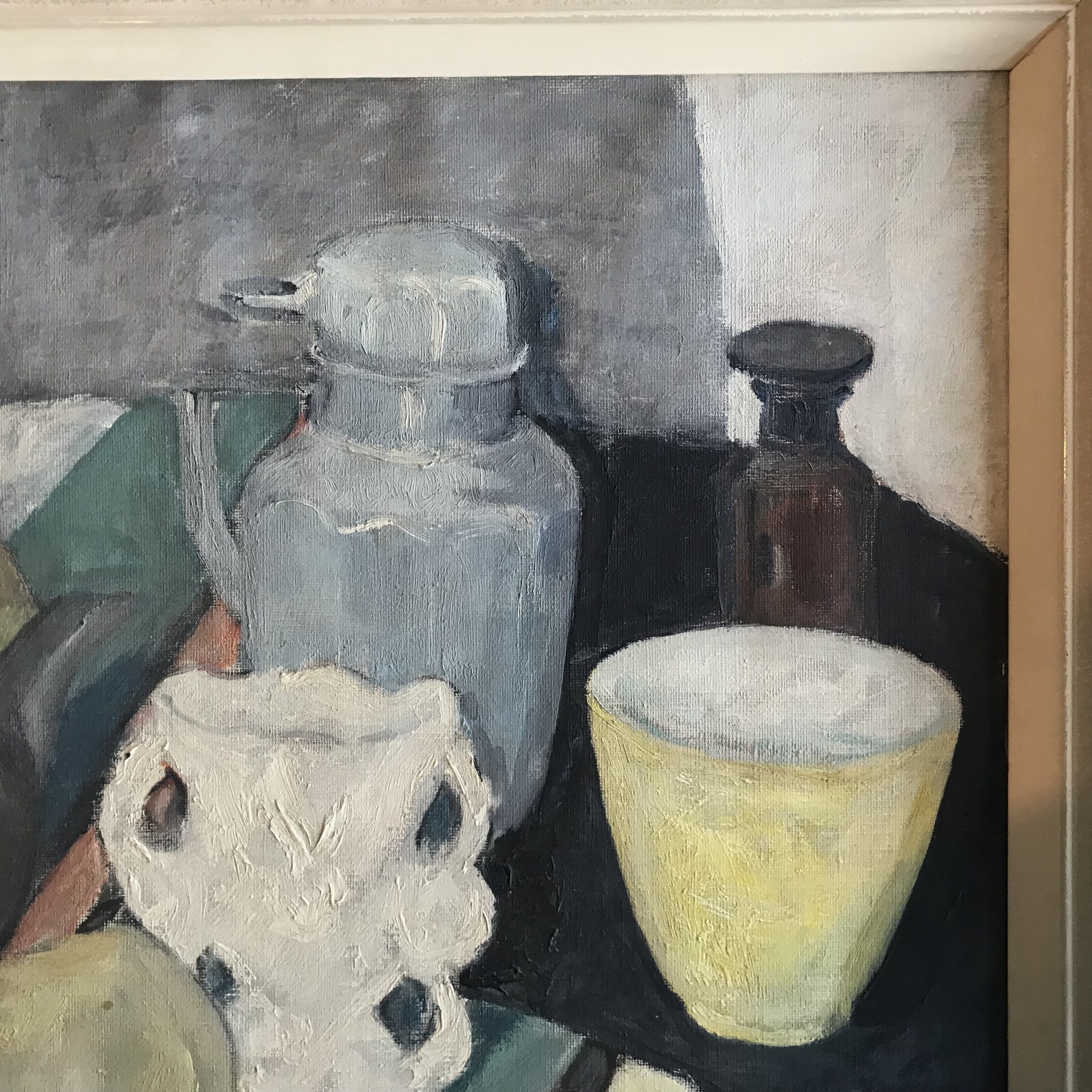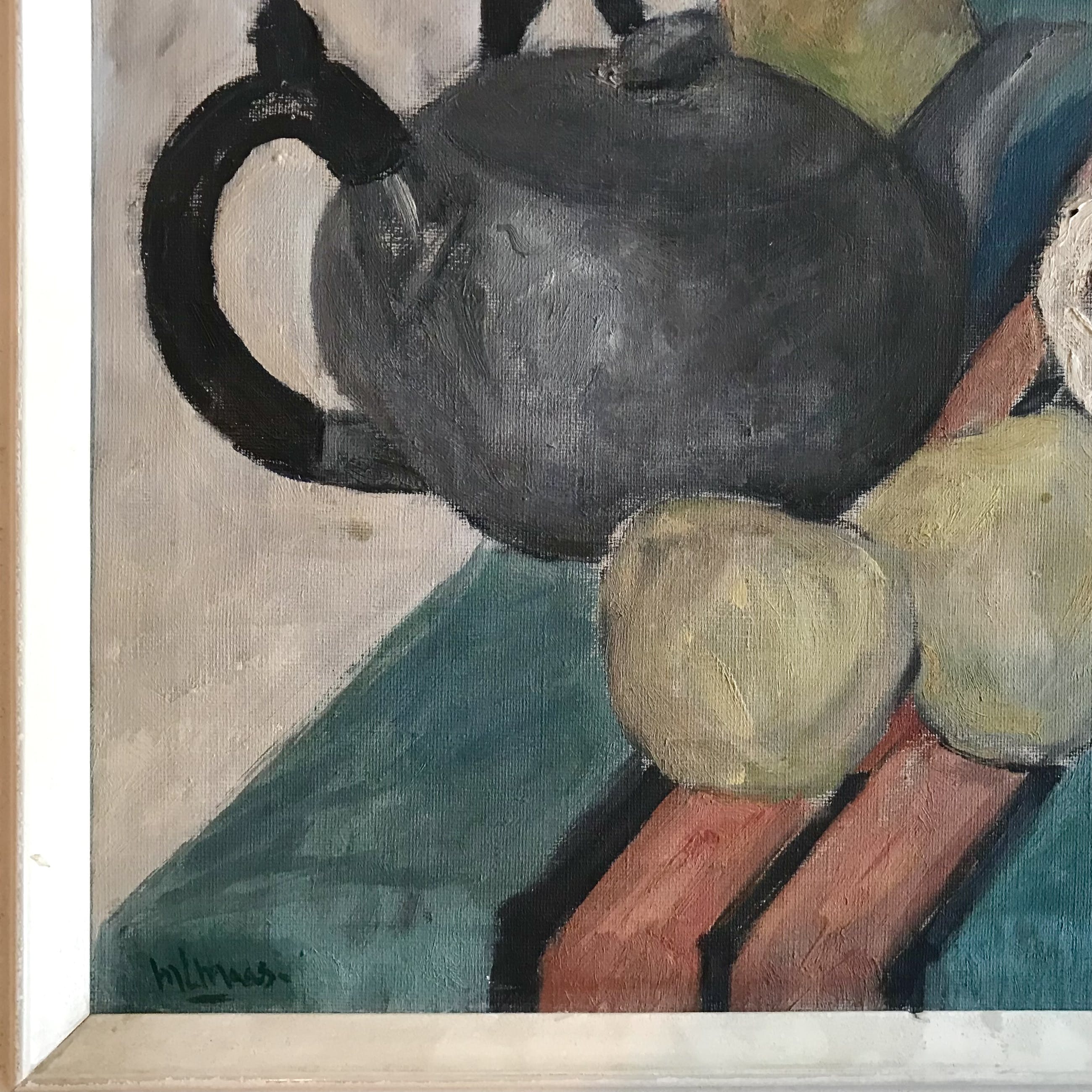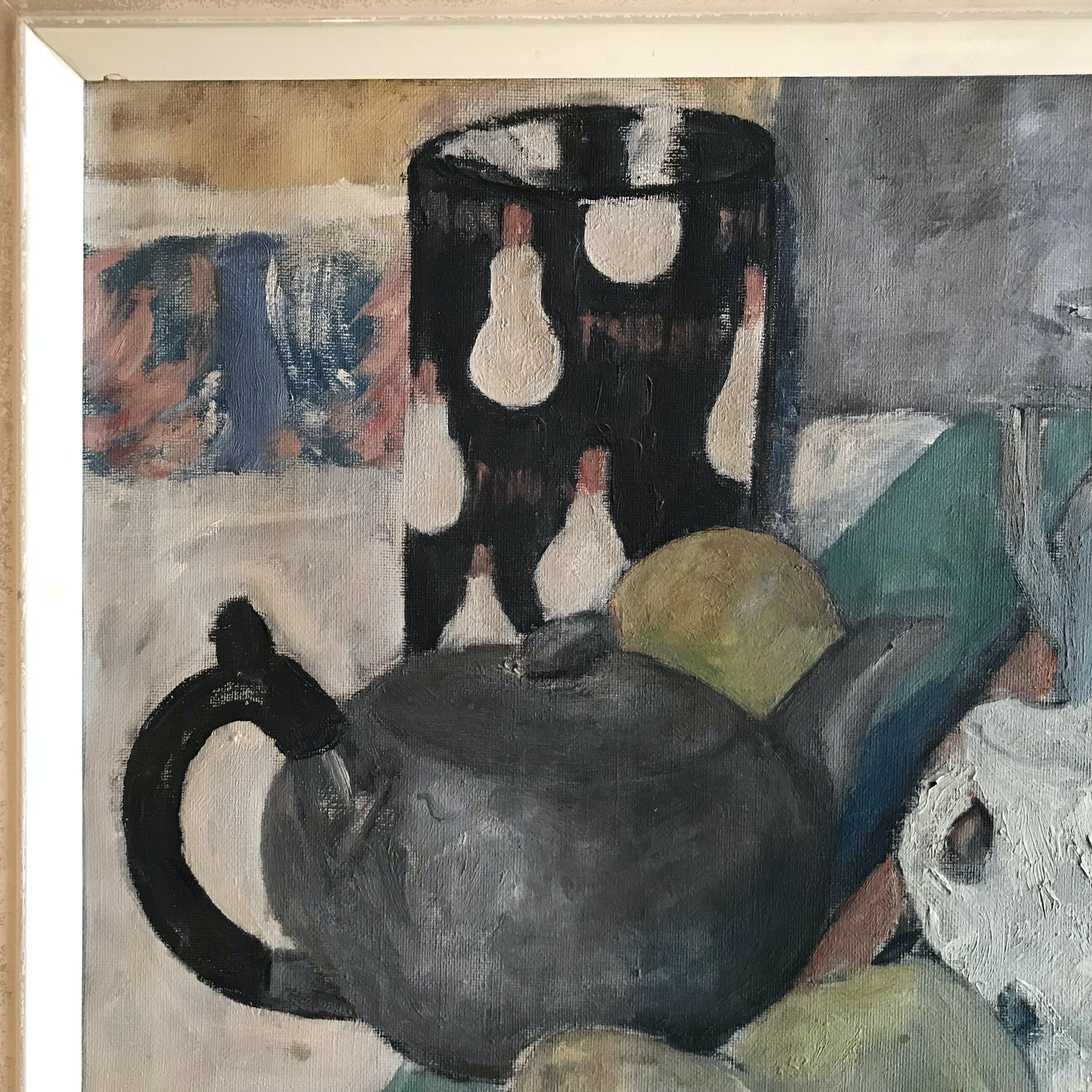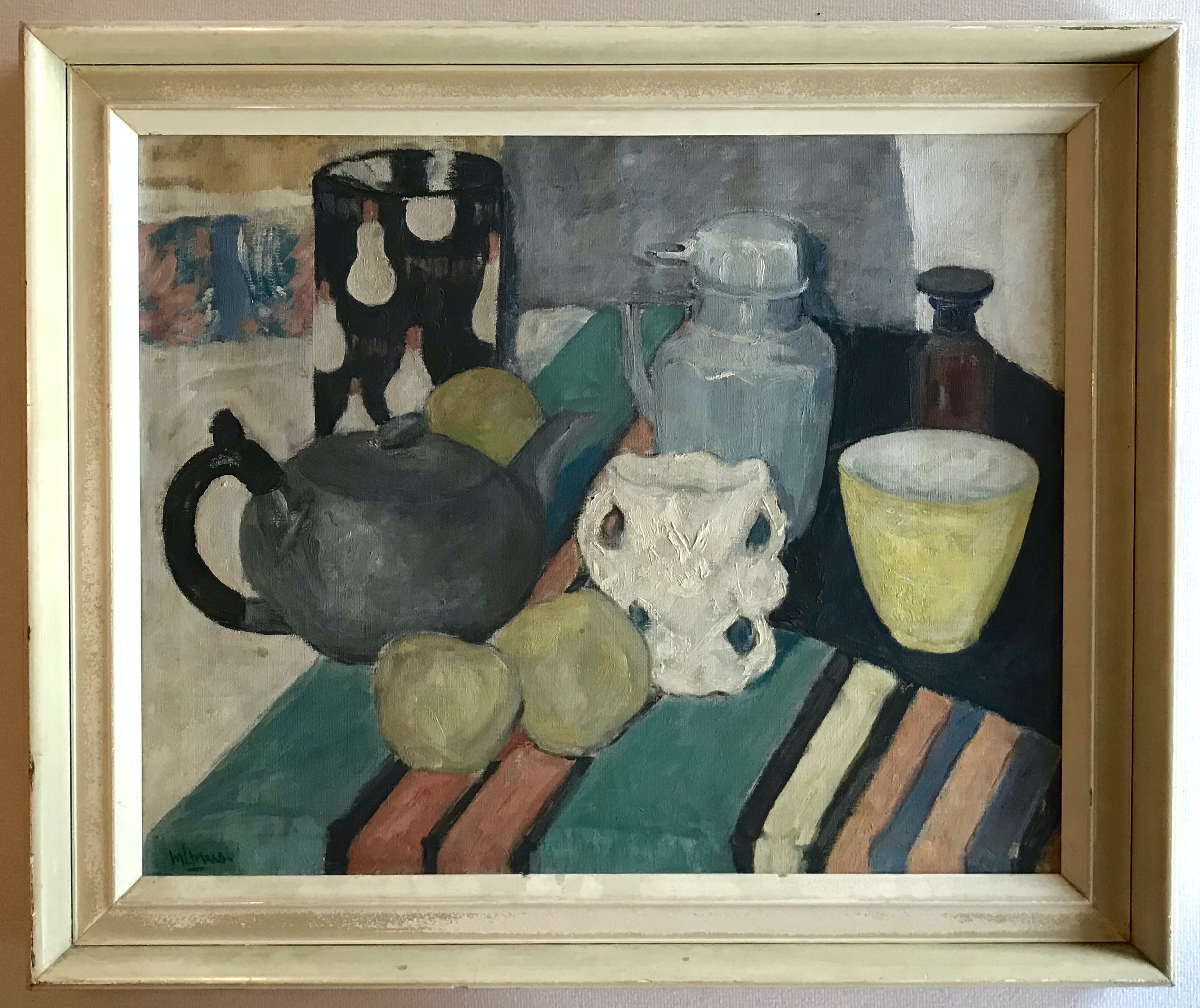 Kenmerkend stilleven van Maximiliaan Louis Maas uit 1954. Deze geboren en getogen Rotterdammer leerde het vak ooit van Henri Frédéric Boot.