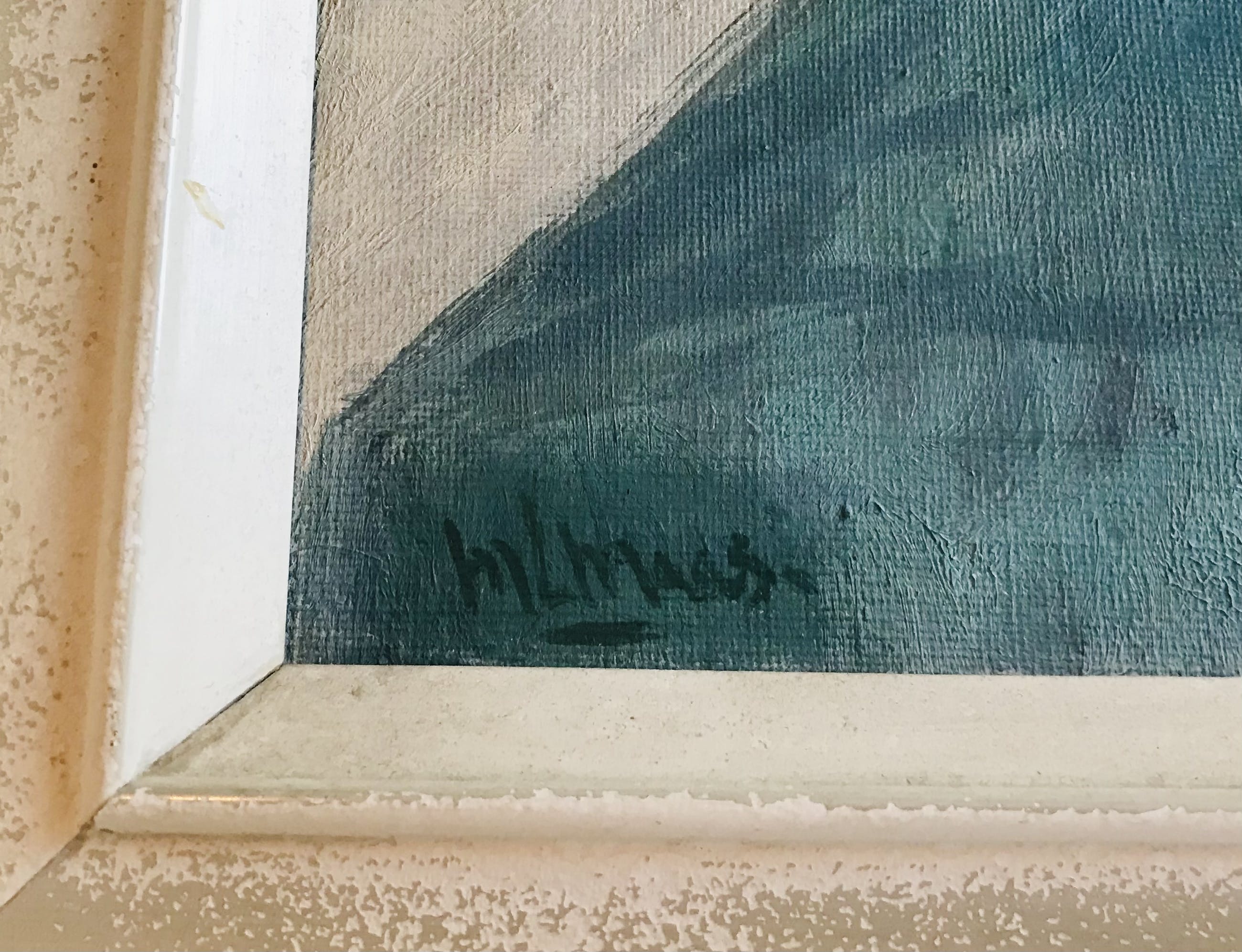 Lijst verweerd maar passend bij dit karaktervolle, oude werk.