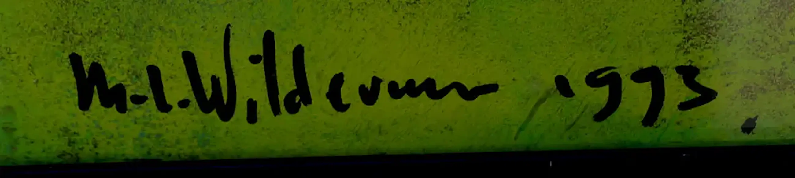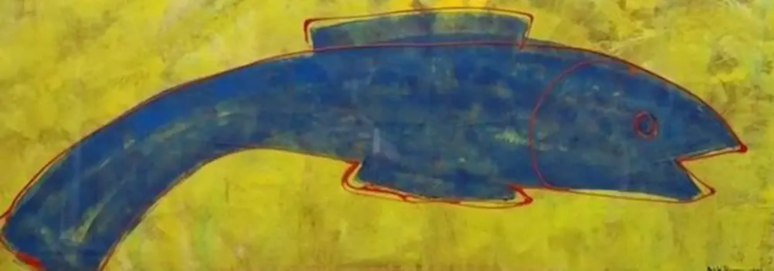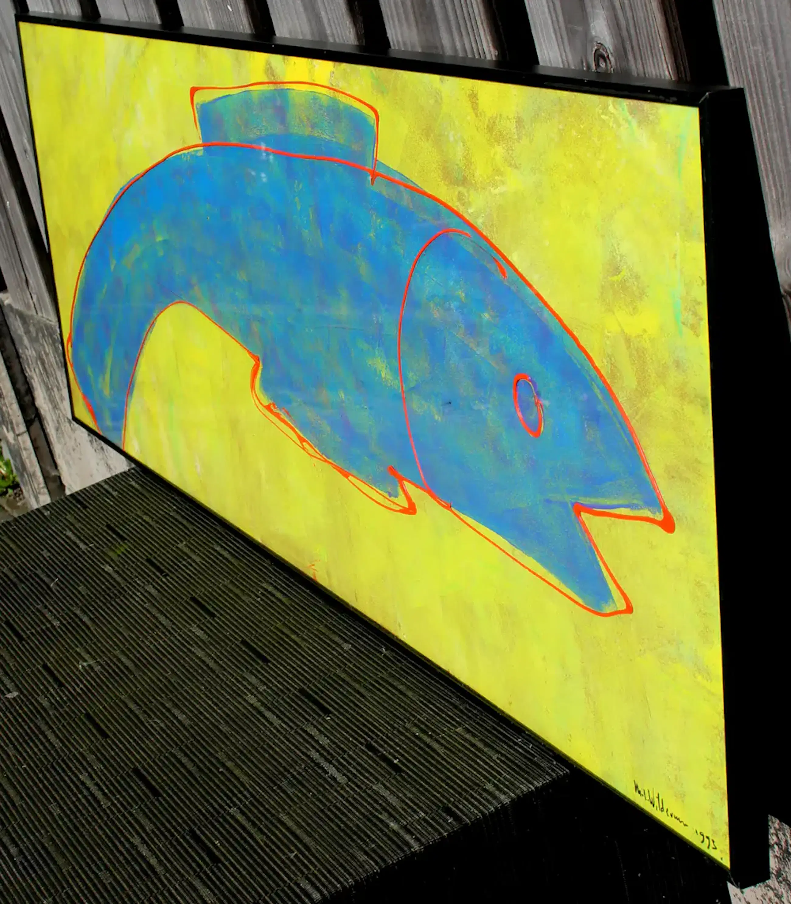 Ingelijste acrylverf op doek, van Maya Wildevuur. Voorstelling van een vis. Jaar: 1993. Afmetingen incl lijst: H44 x b114cm. Afmetingen voorstelling: H40 x b110cm. Het werk is rechts onderaan, gesigneerd door de kunstenares. De authenticiteit van dit werk wordt volledig gegarandeerd. Een certificaat van echtheid kan, op aanvraag, worden gemaild.