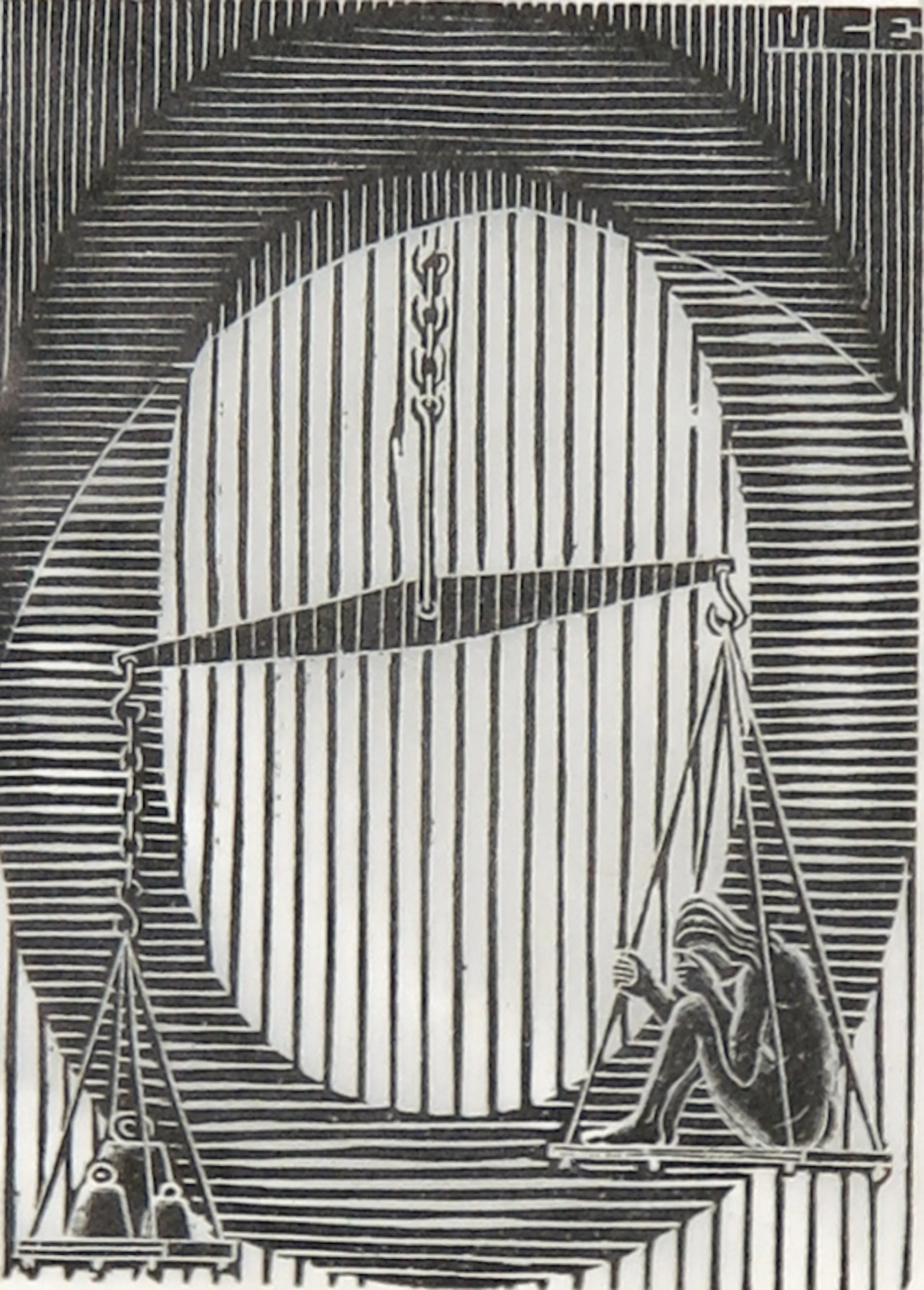 Houtdruk ontworpen voor het boek De vreeselijke avonturen van Scholastica uit 1932.