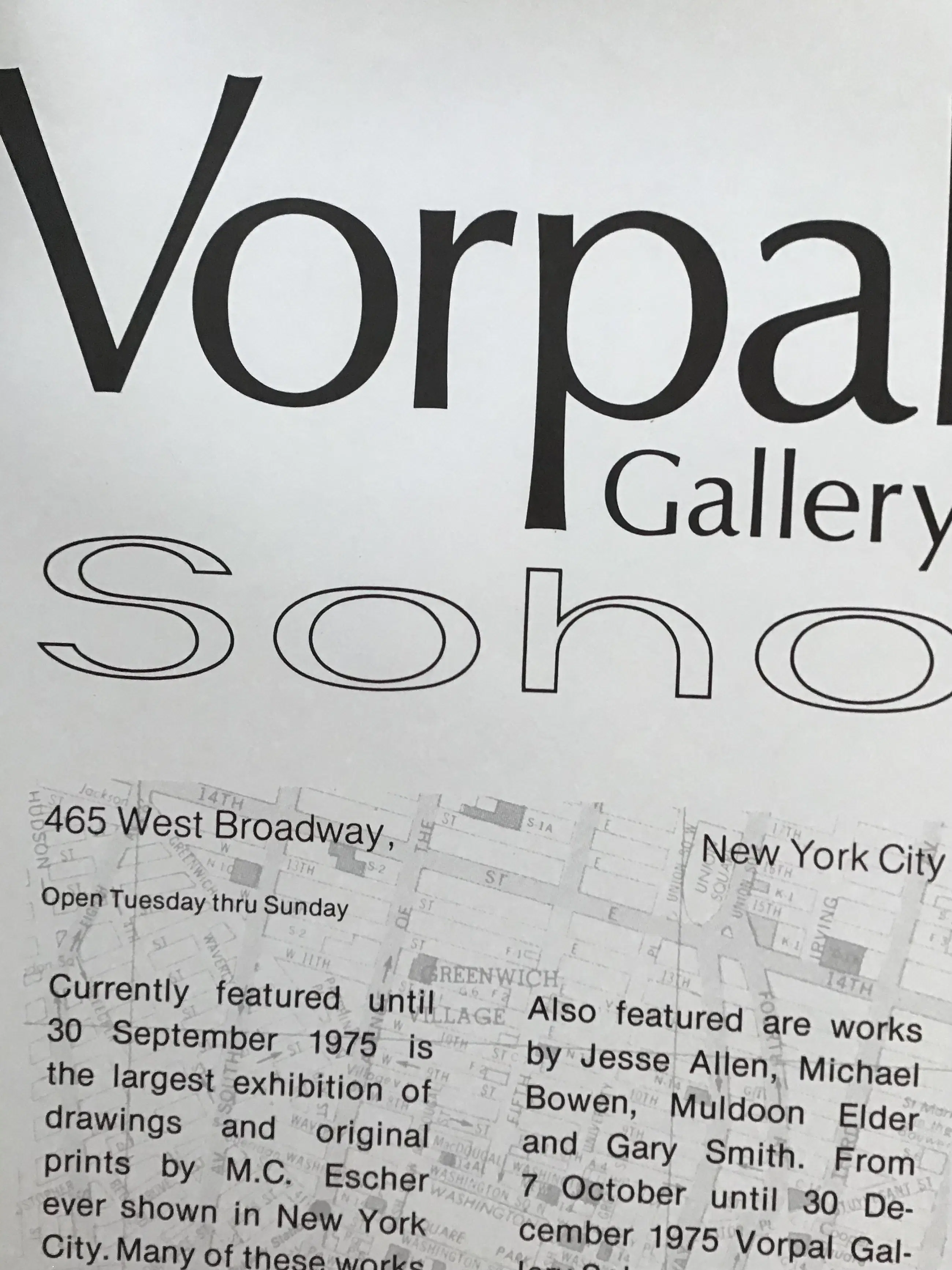 Zeer bijzondere lithografische affiche uit 1975 Tgv een tentoonstelling in Vorpal Gallery te Soho Gesigneerd in de druk Afmetingen 95x32 cm Conditie uitstekend