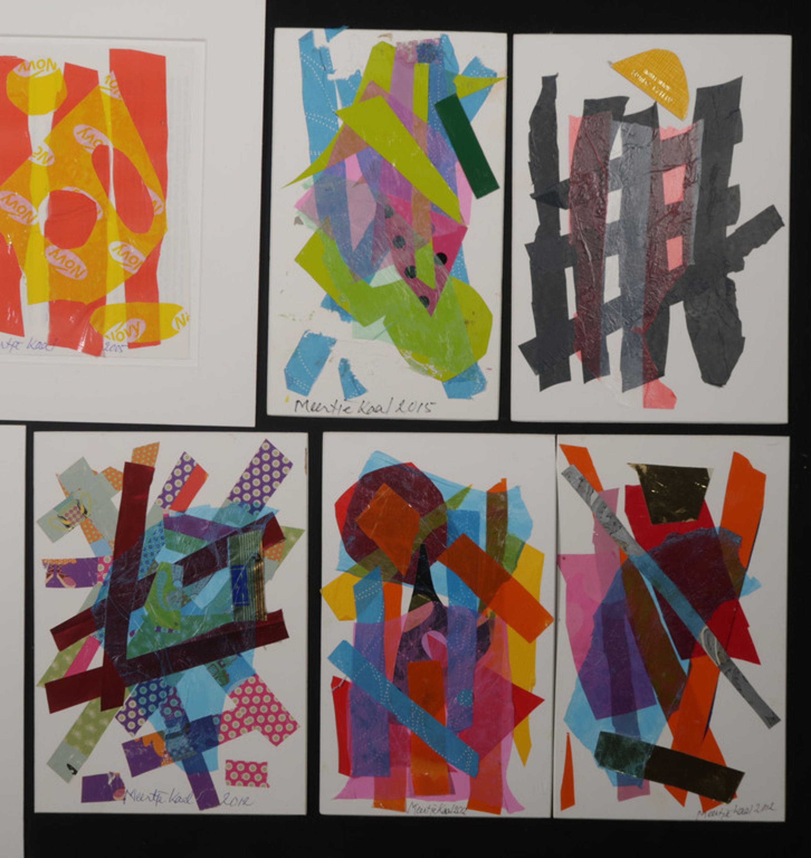 Materiaal: Collage's op papier, op passe-partout/onderblad (5 niet achter passe-partout)