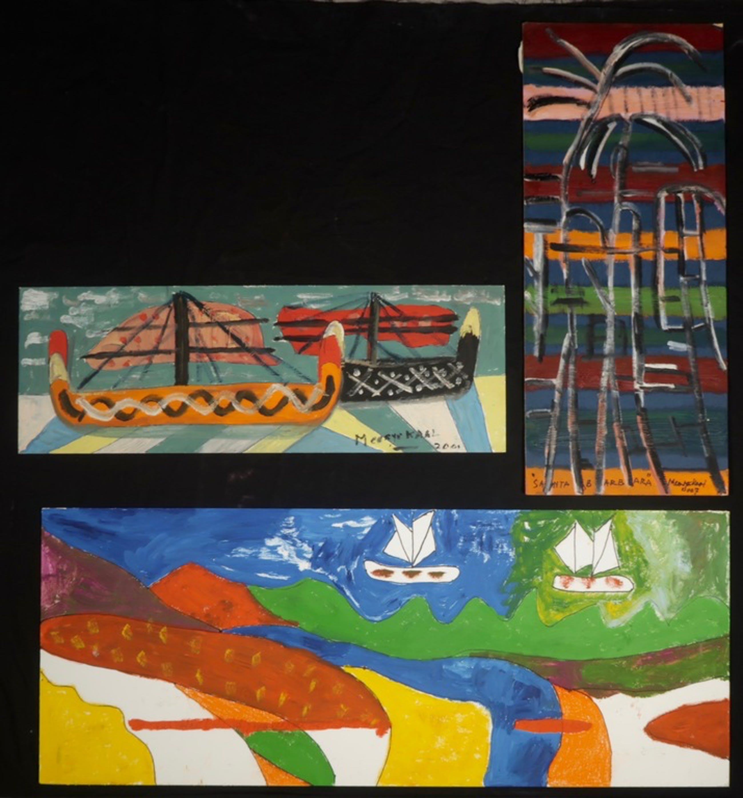 Drie olieverf werken op (stevig) papier van Meertje Kaal