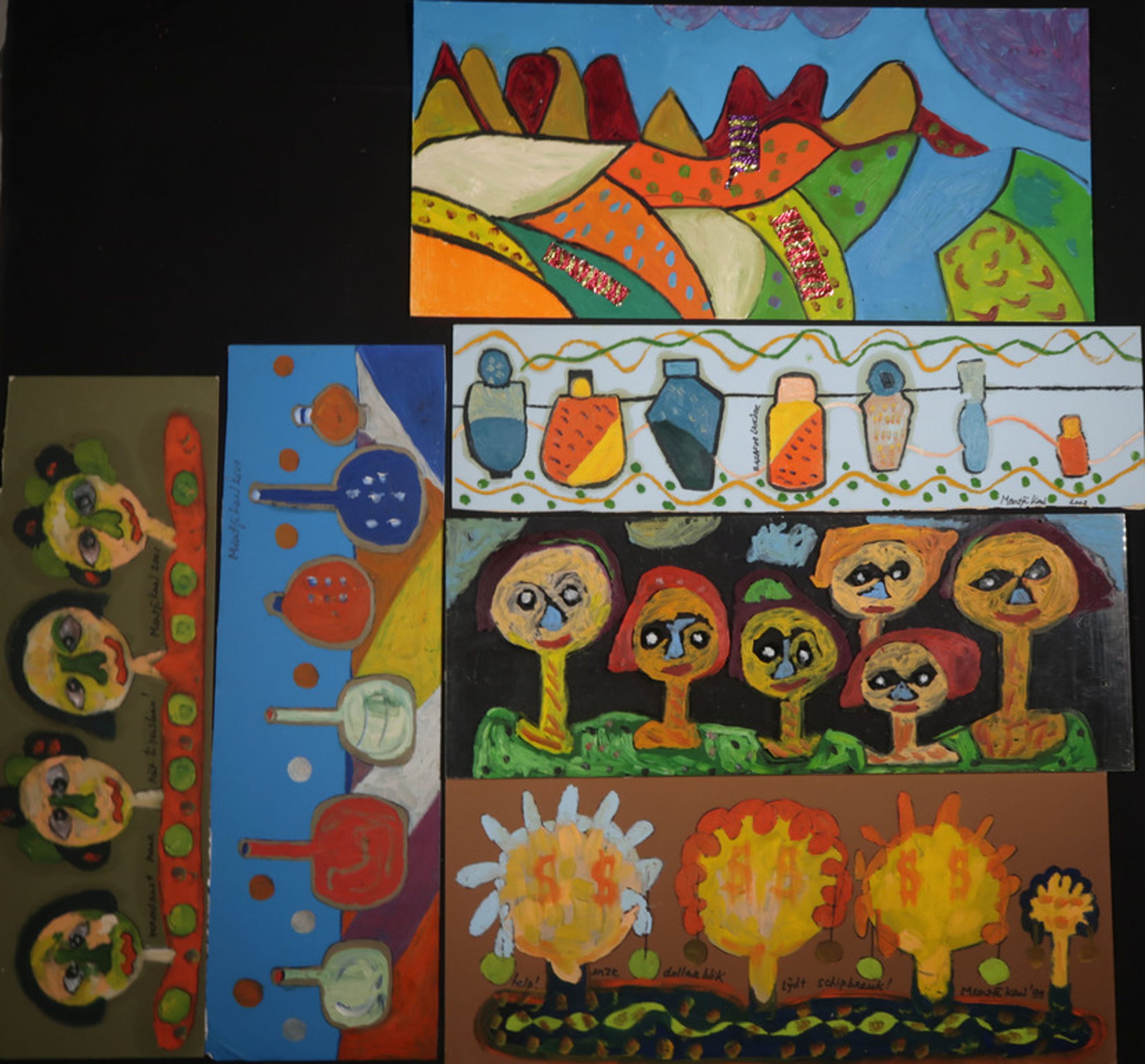 Lot met 6 werken in gemengde techniek van Meertje Kaal