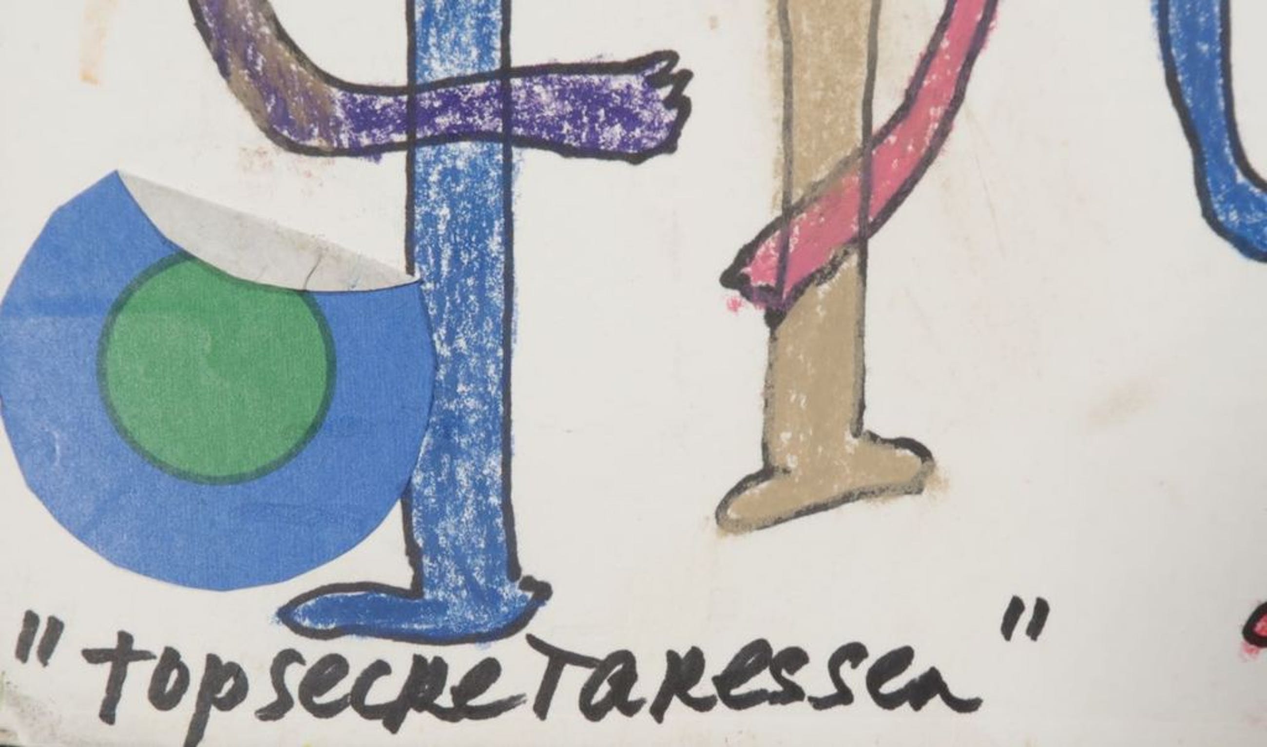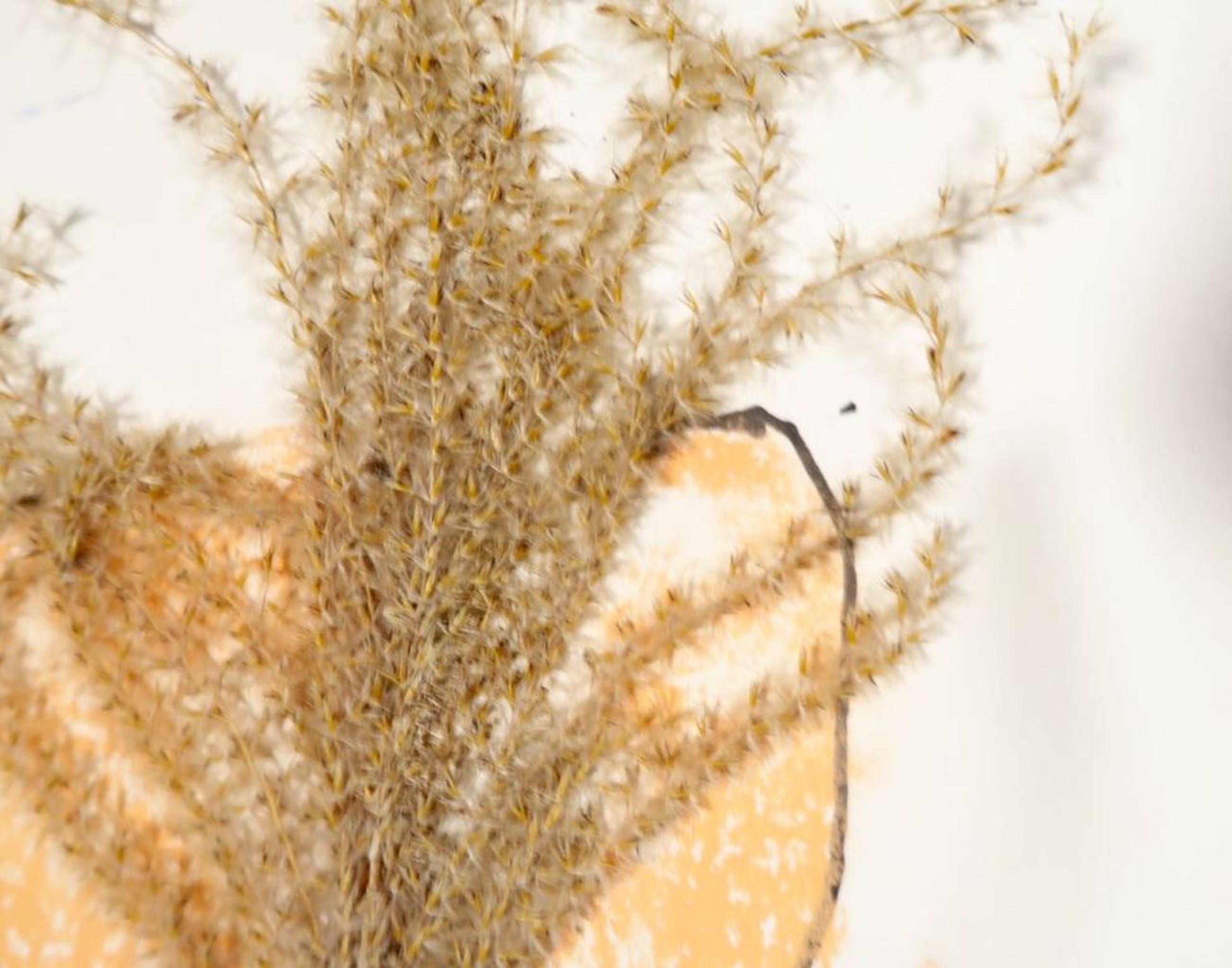 Materiaal: Gemengde techniek op papier, o.a. krijt, stift, gedroogte plant