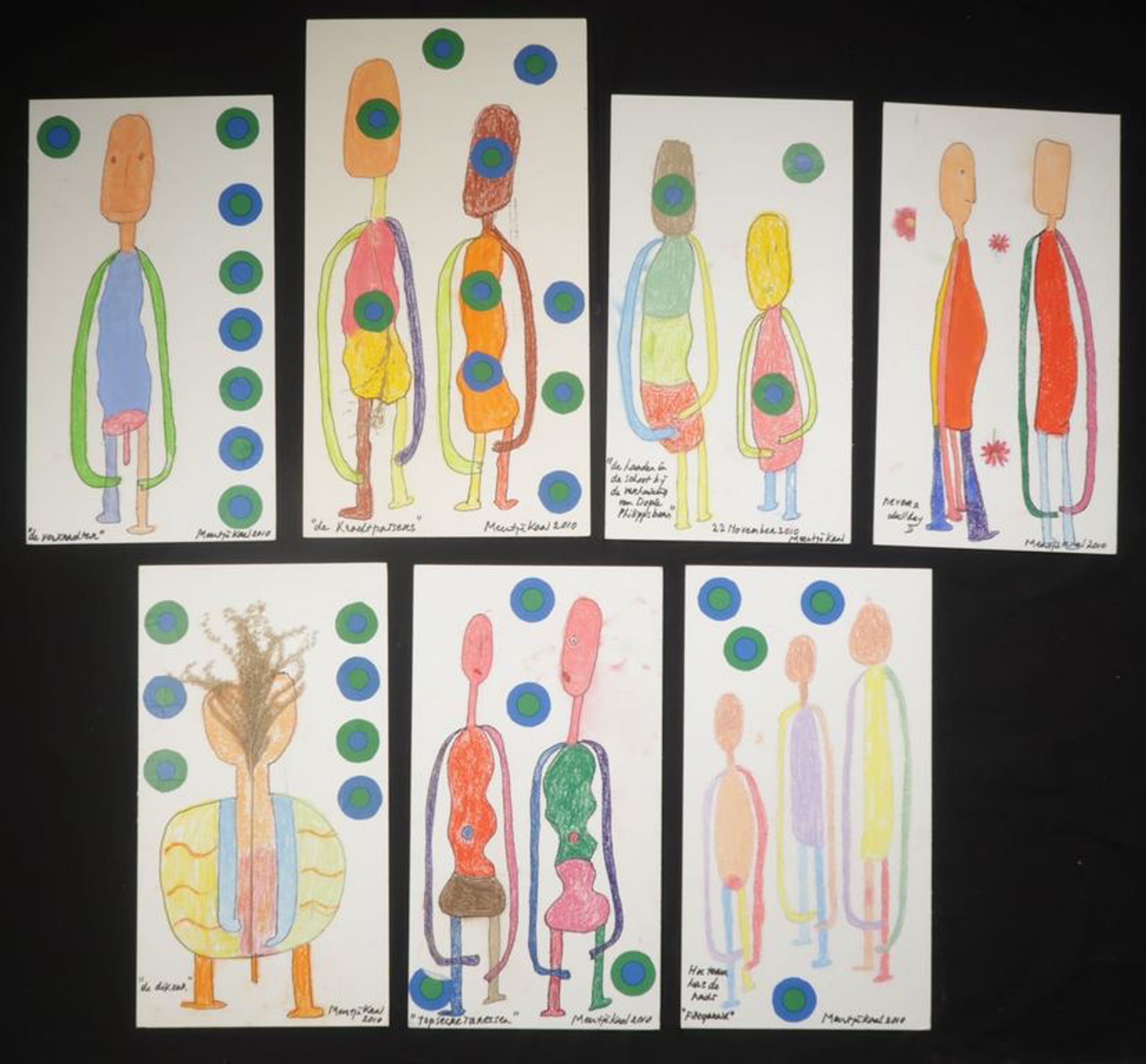 Zeven gemengde techniek werken op papier van Meertje Kaal