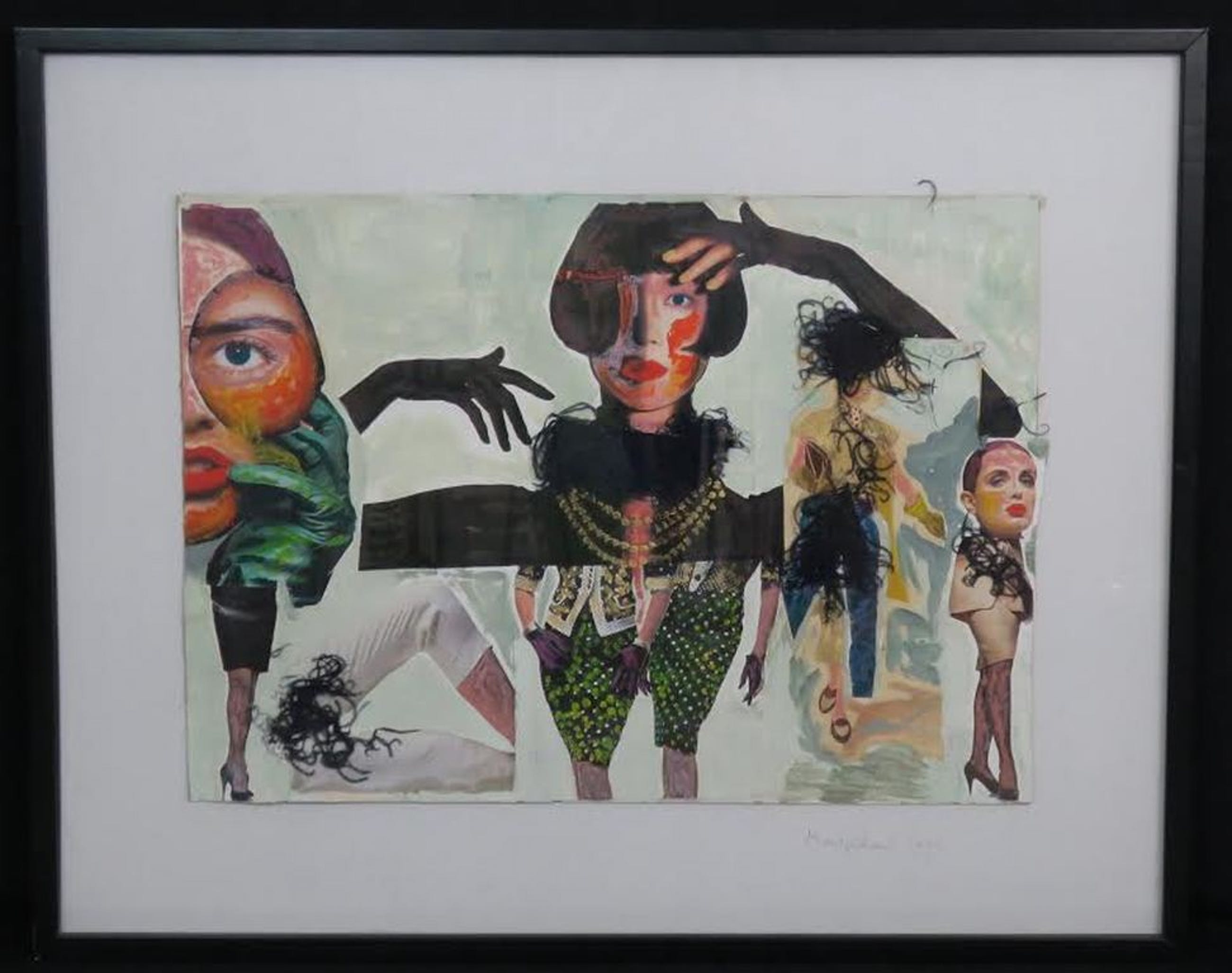 Materiaal: Acryl en collage op papier, bevestigd op karton