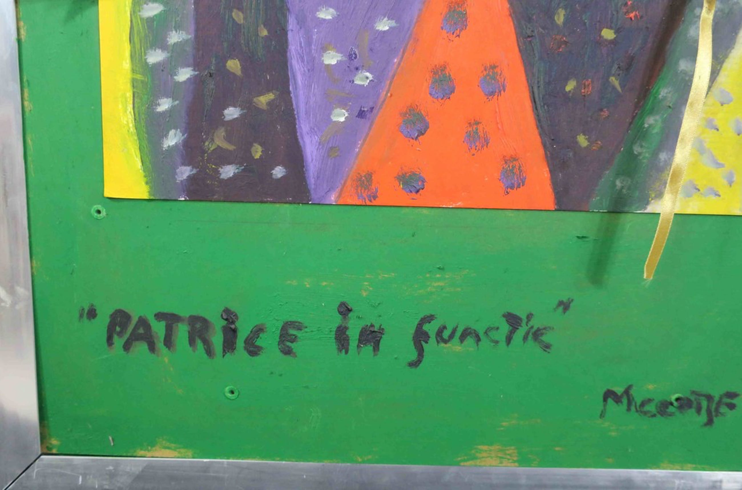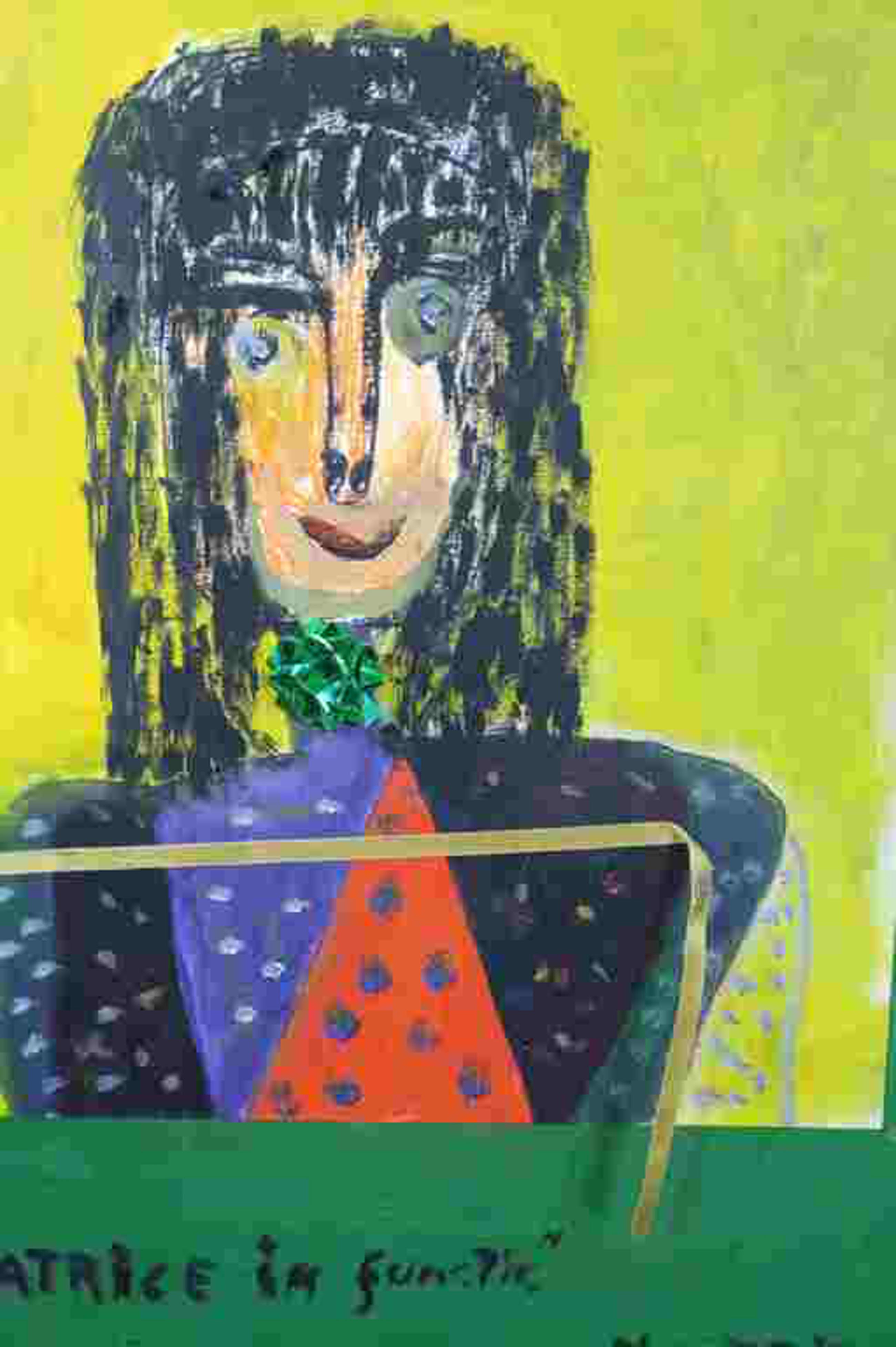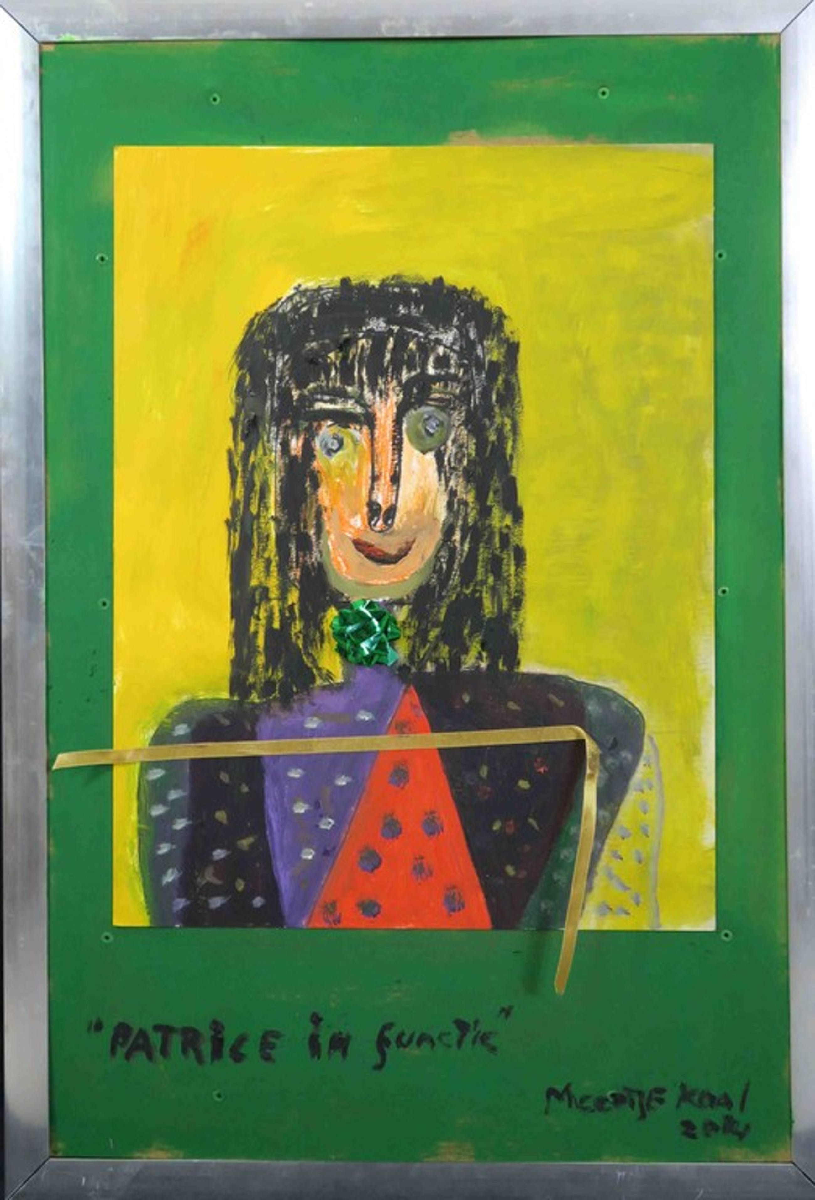 Materiaal: Acryl, krijt, lint en strik op papier op board