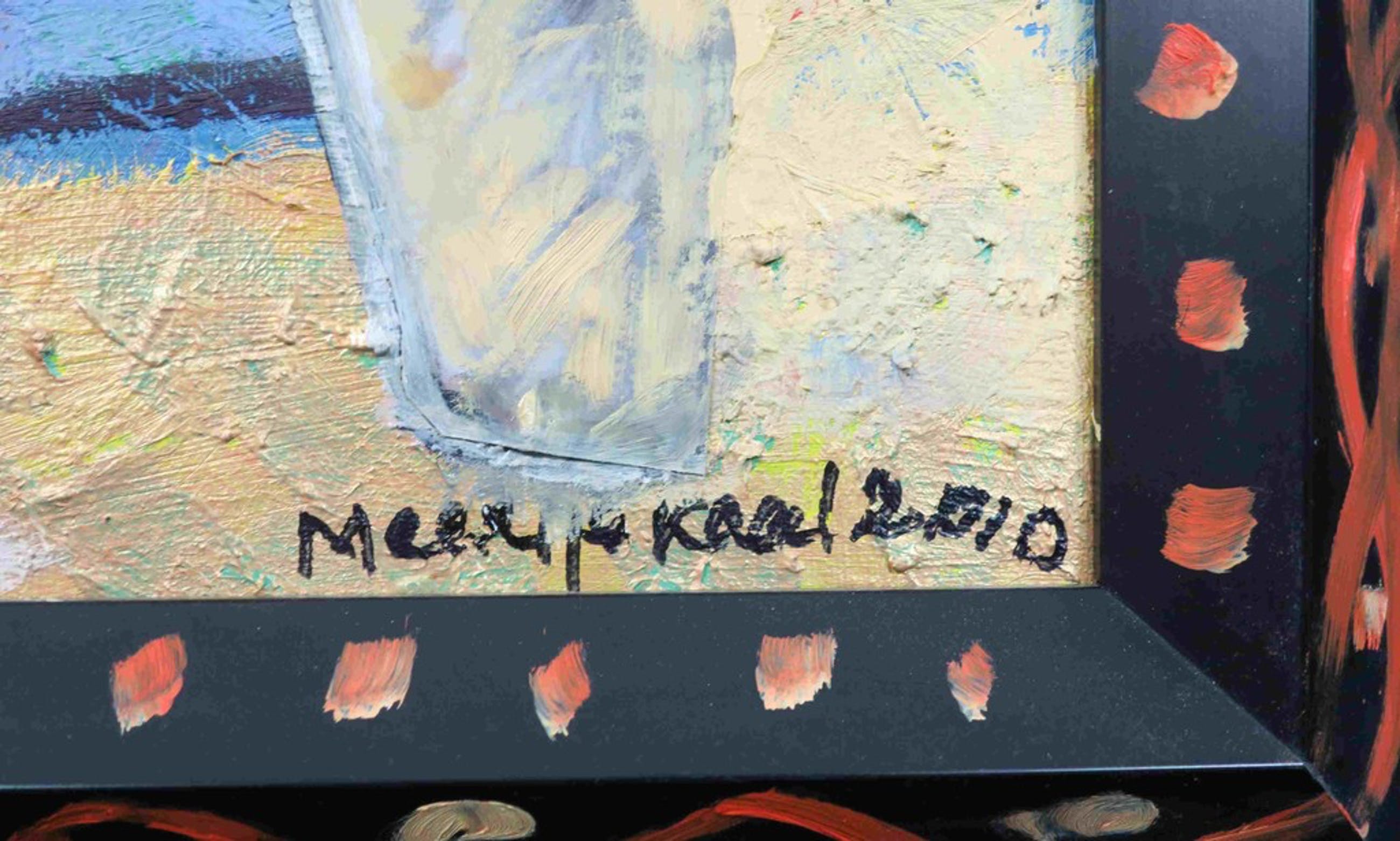 Ingelijst: Ja, in door de kunstenaar beschilderde houten lijst