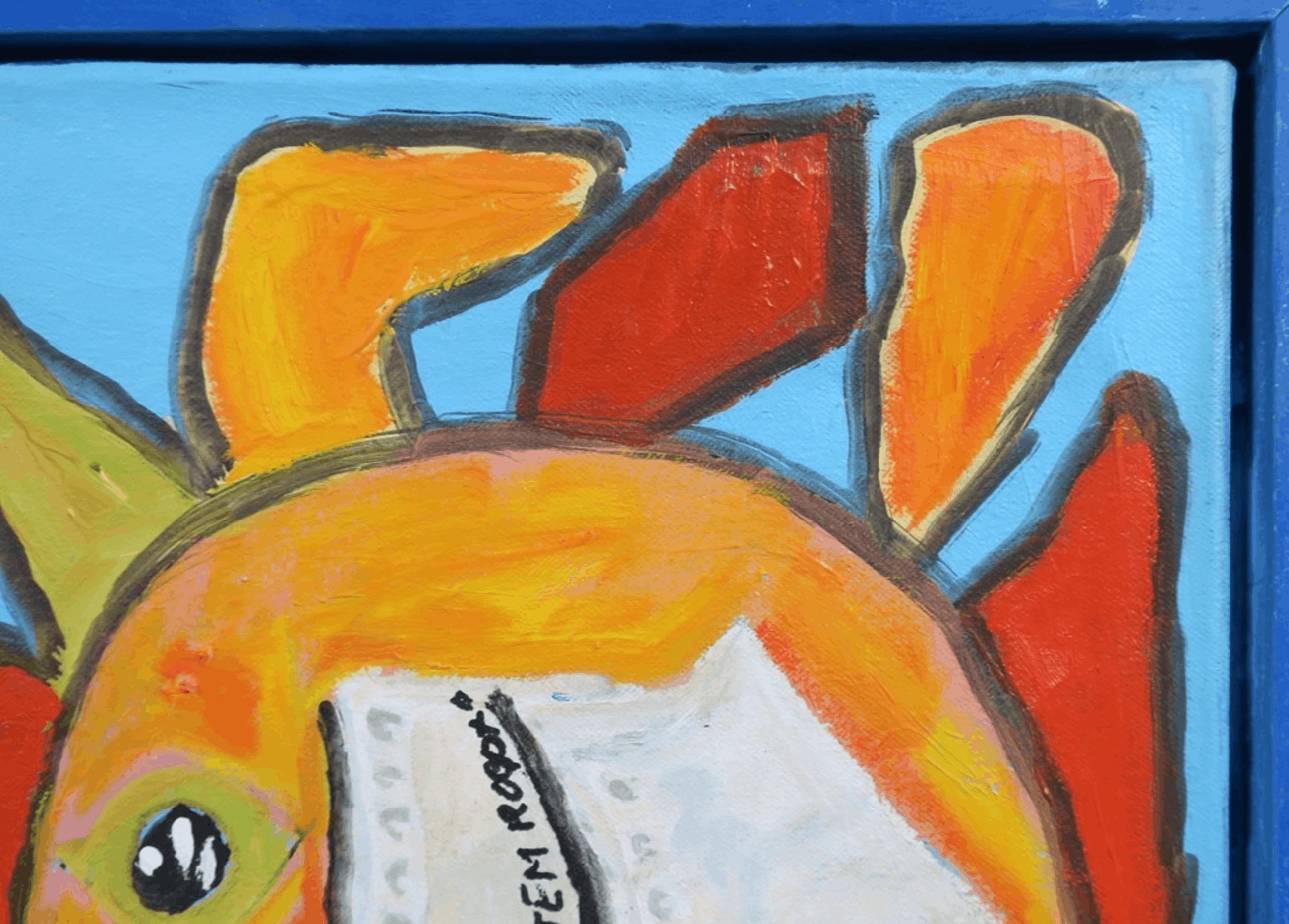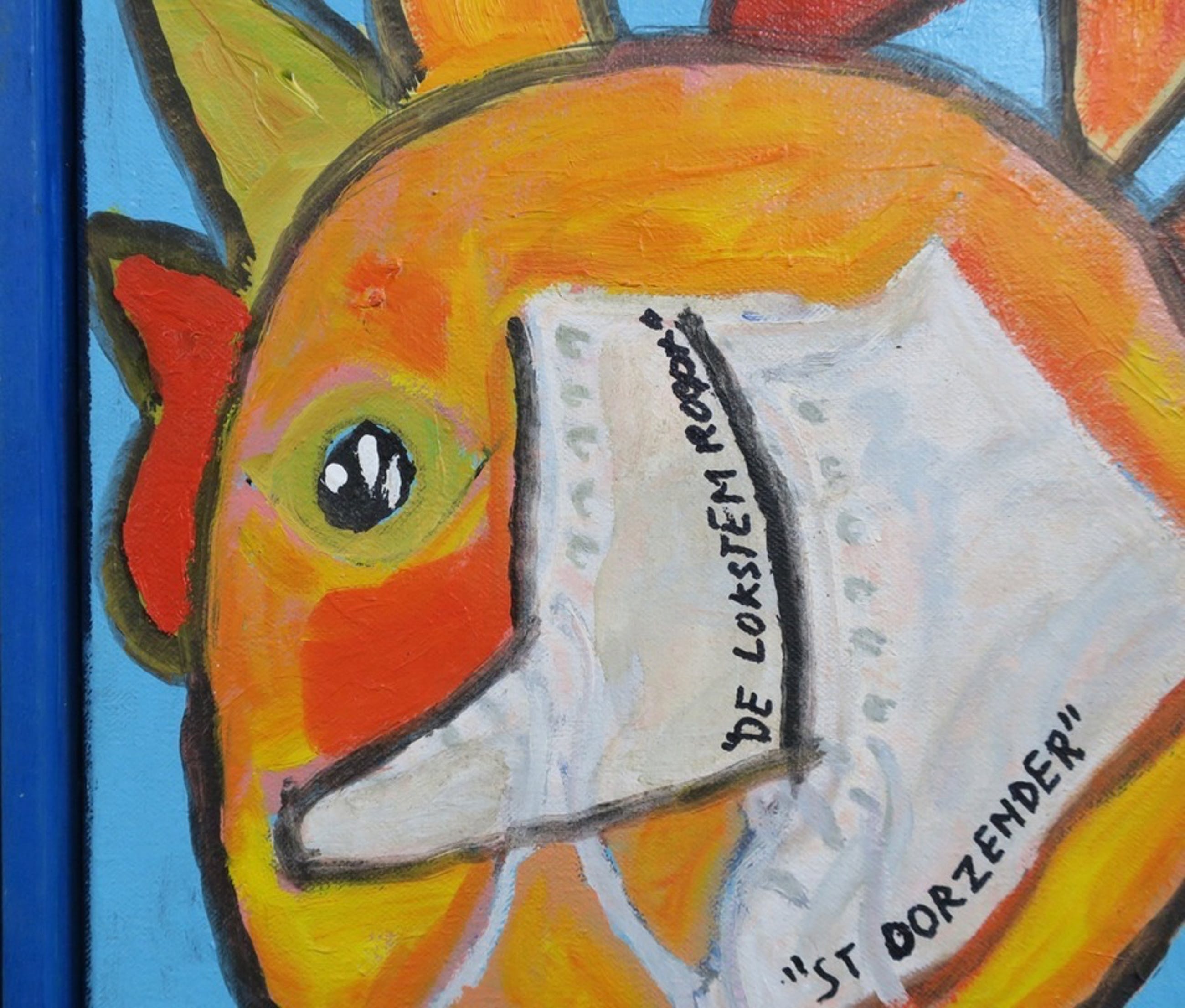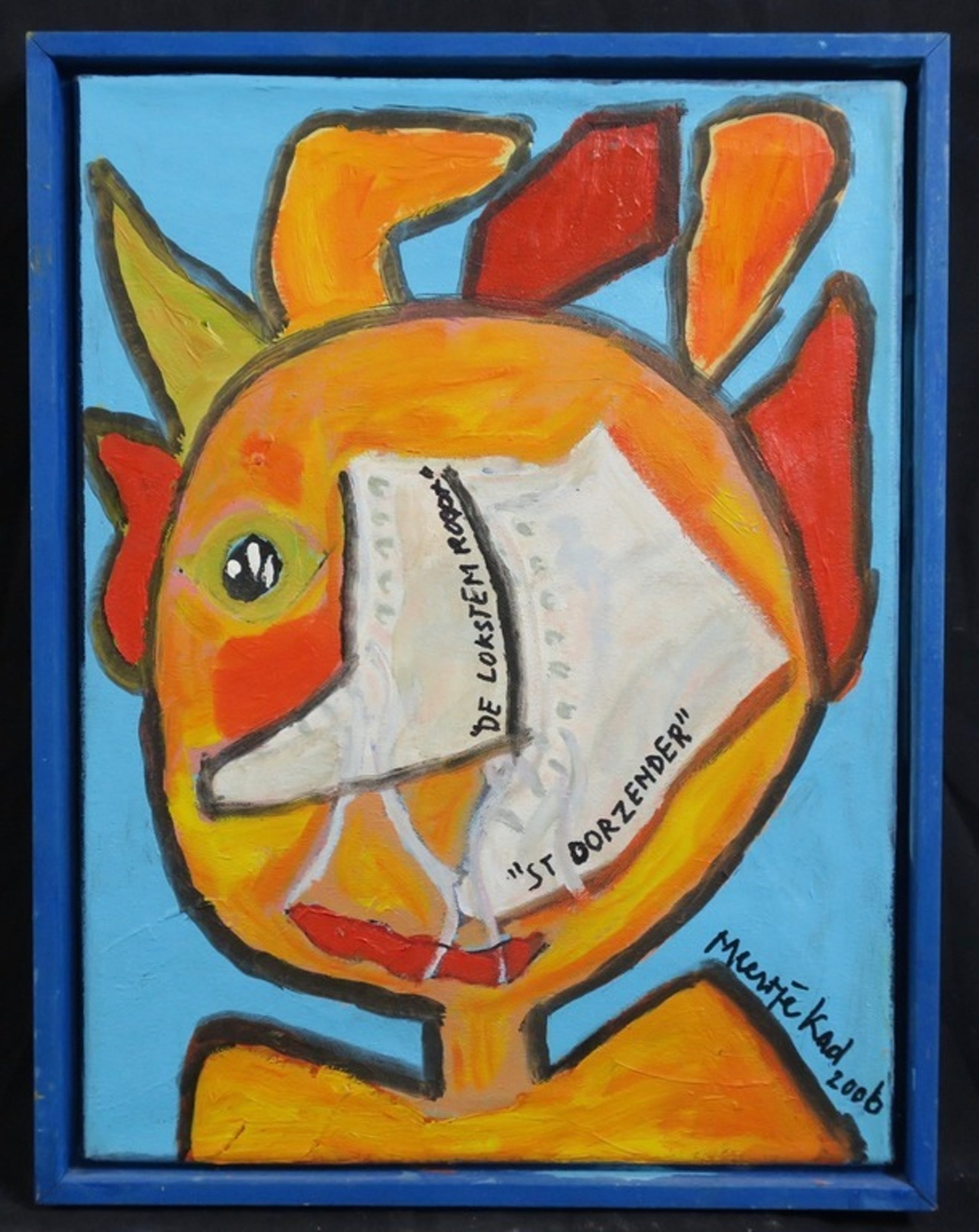 Ingelijst: Ja, in blauwe houten lijst