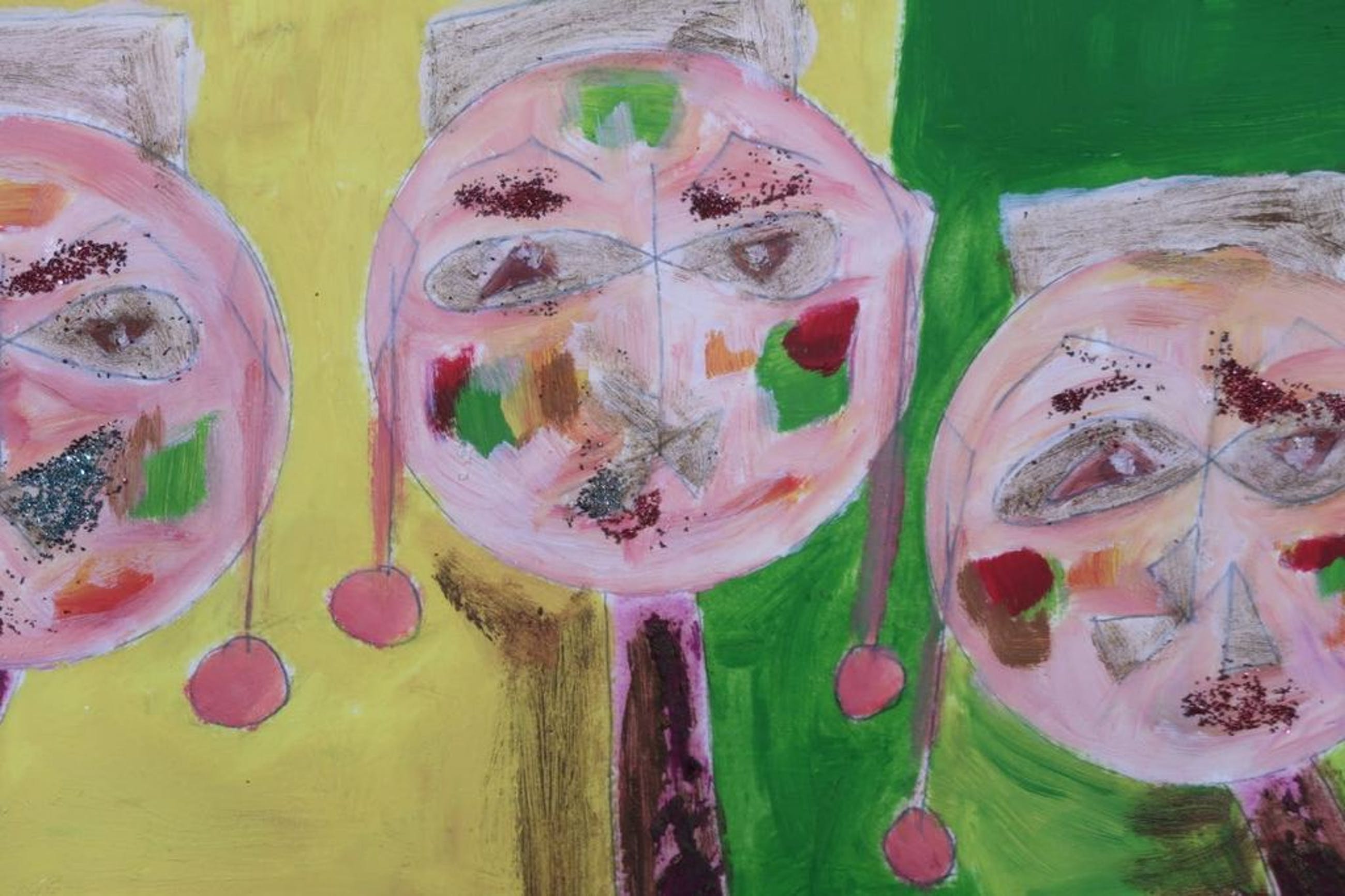 Materiaal: Olieverf en glitter op karton