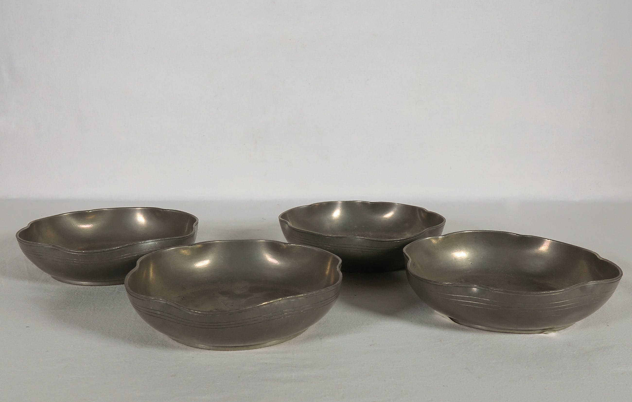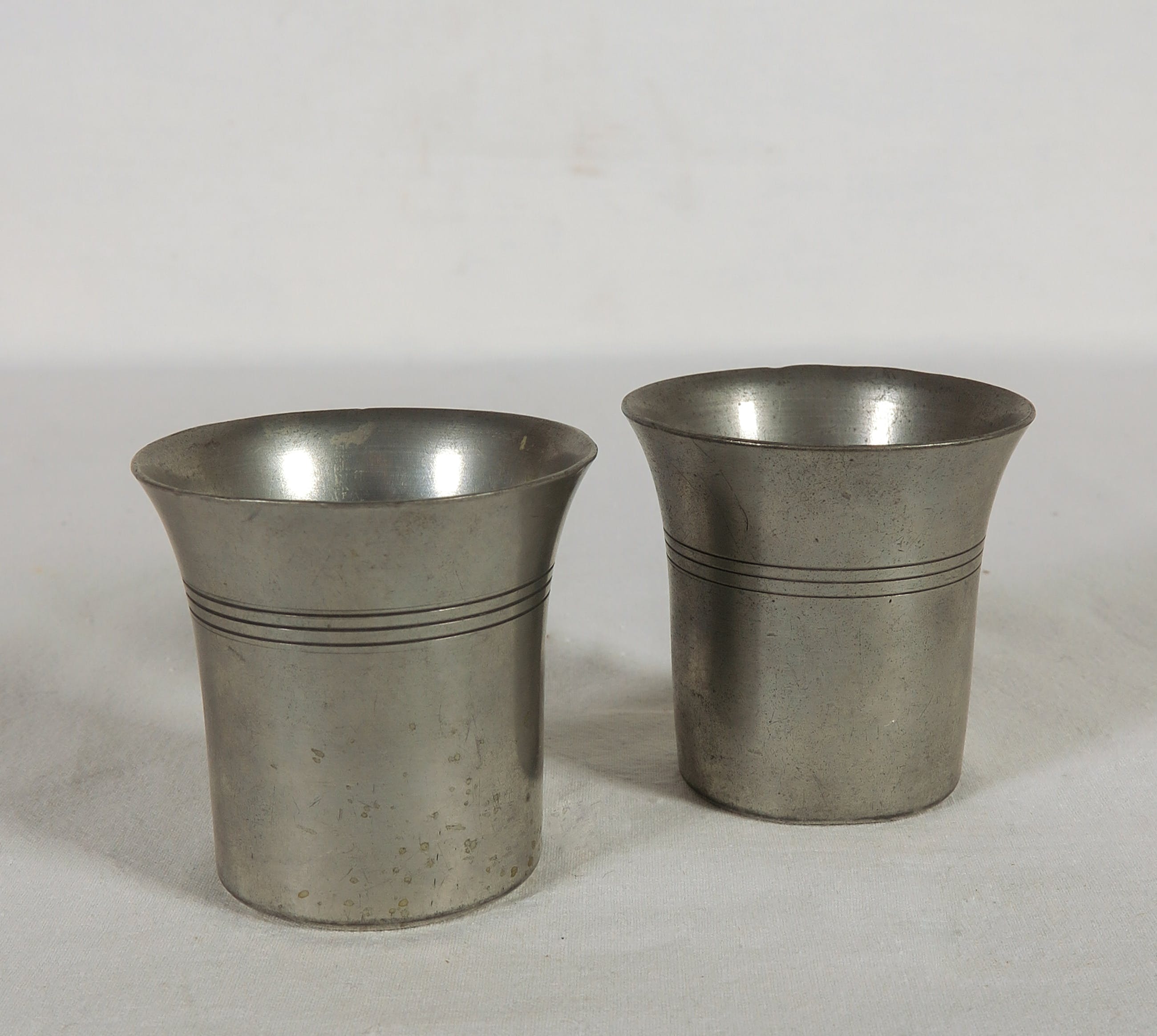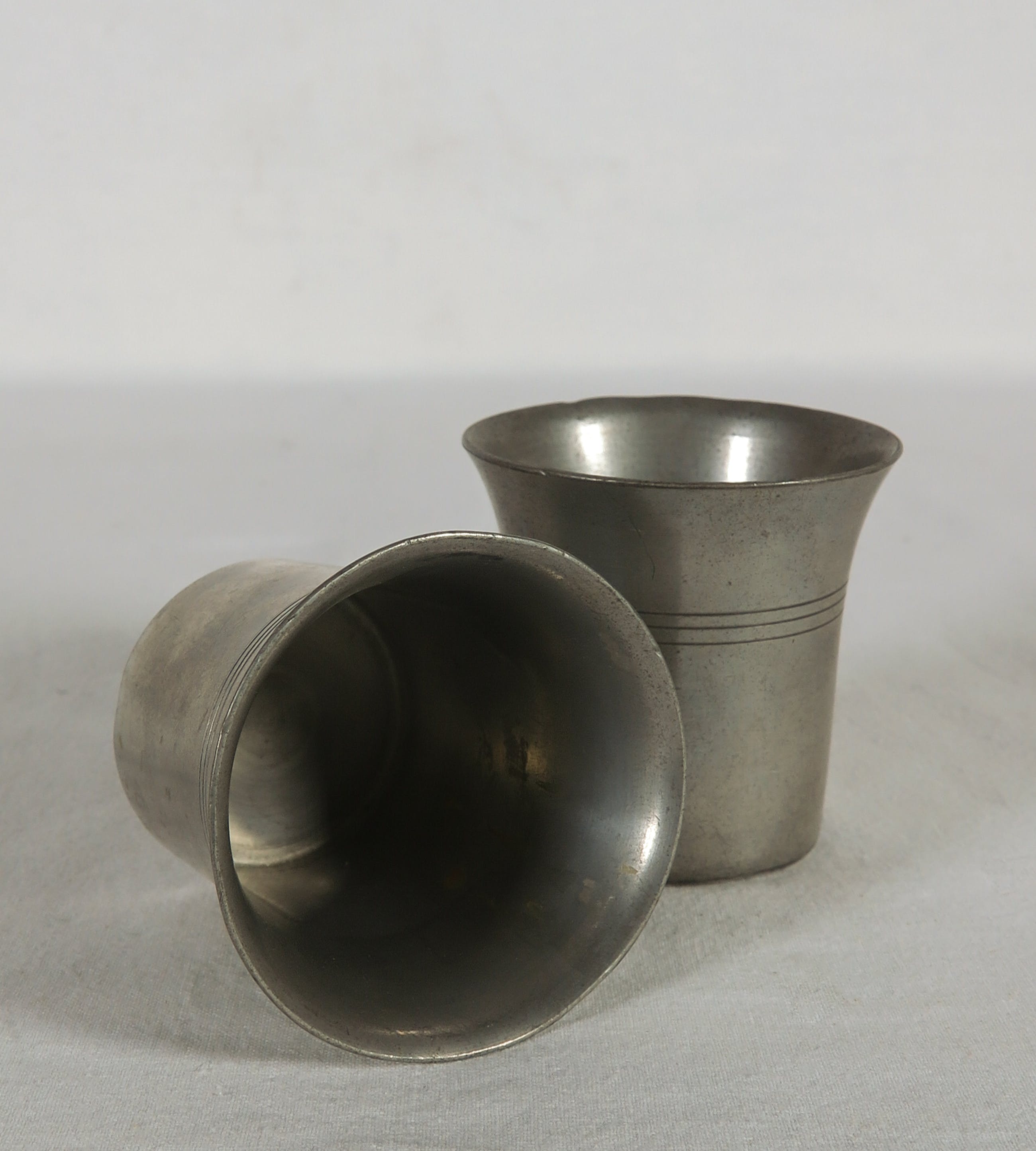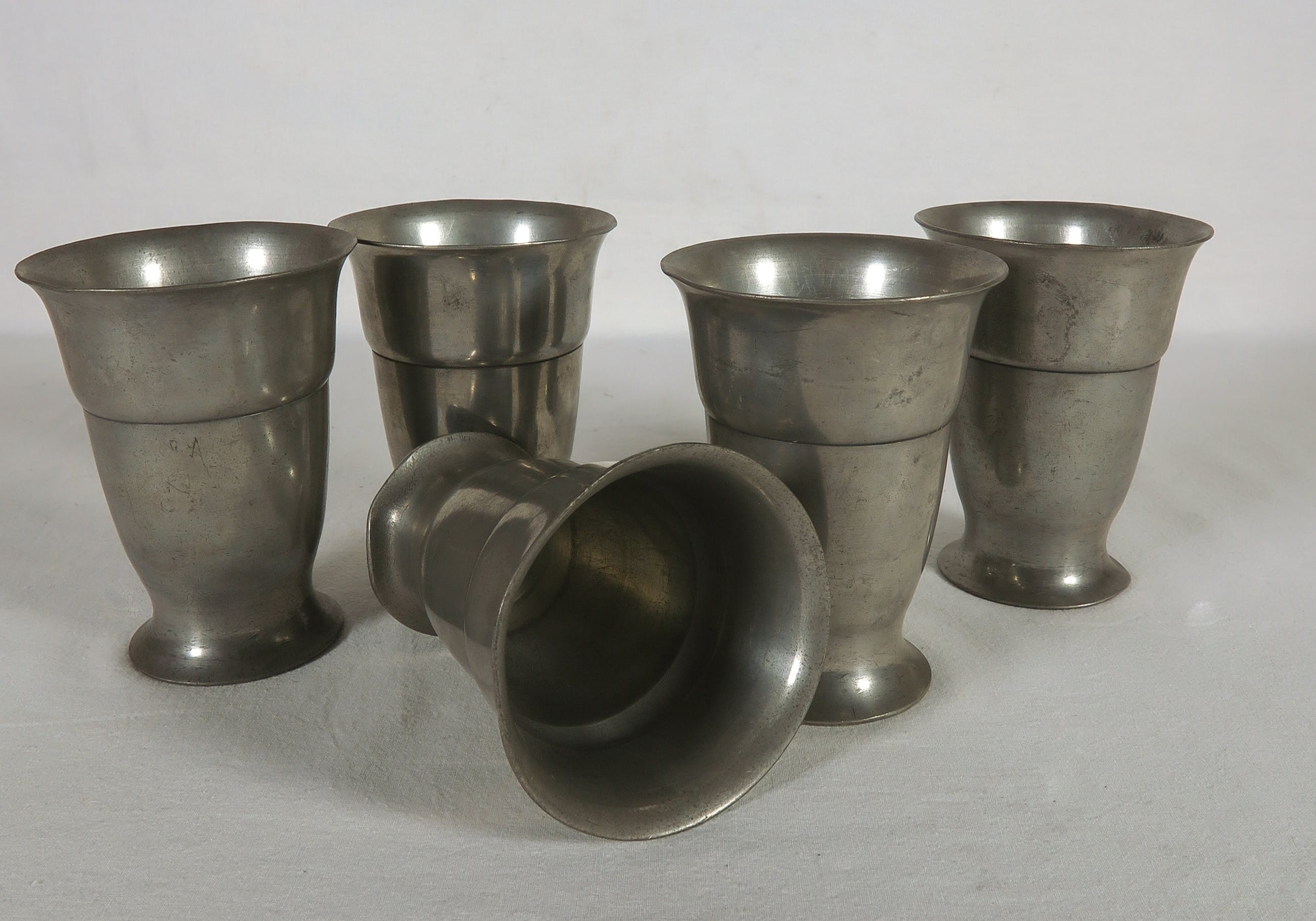 Lot van tin, bestaande uit vijf bekers, vier schalen en twee napjes.