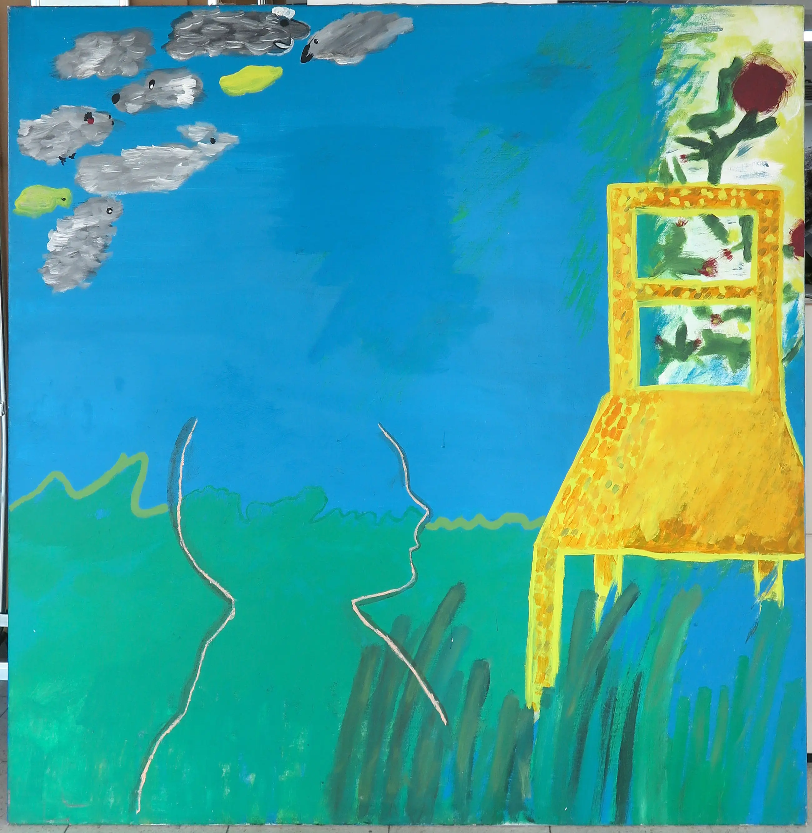 | Redelijk tot goede conditie, meerdere kleine plekjes langs de randen en in het beeld. Spieraam drukt licht door het doek. | |