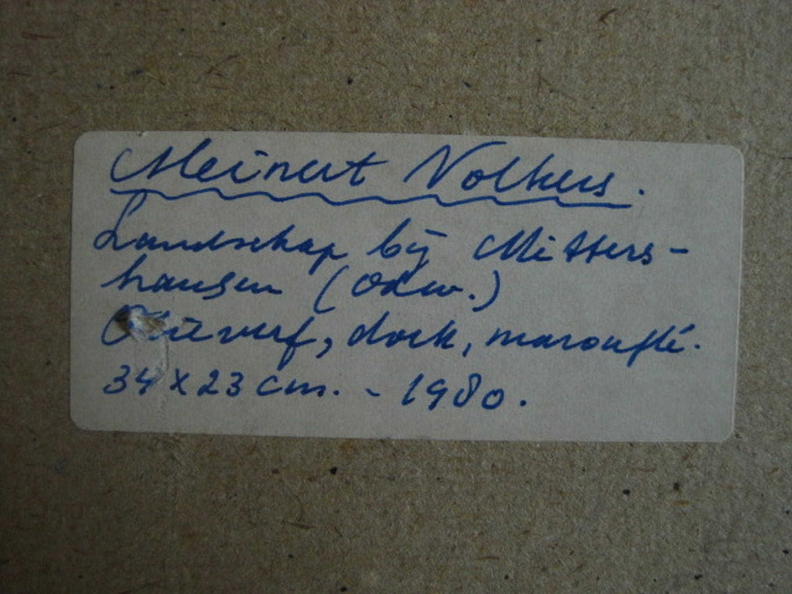 Meinert Volkers (1927 Enschede - 2000 Haaksbergen) kreeg les van Kees Andrea, J. Stroosma, Louis Meijs en Arnold Smith op de Vrije Academie te Den Haag. Hij is schilder en tekenaar van landschappen, stillevens en figuren en soms zoekt hij in zijn werk de grens van figuratief en abstract. Hij sluit aan bij de schilders van de Nieuwe Haagse School. Zijn werk is op vele plaatsen in Nederland ge_xposeerd en maakt ook deel uit van collecties van bedrij-ven, instellingen en particulieren