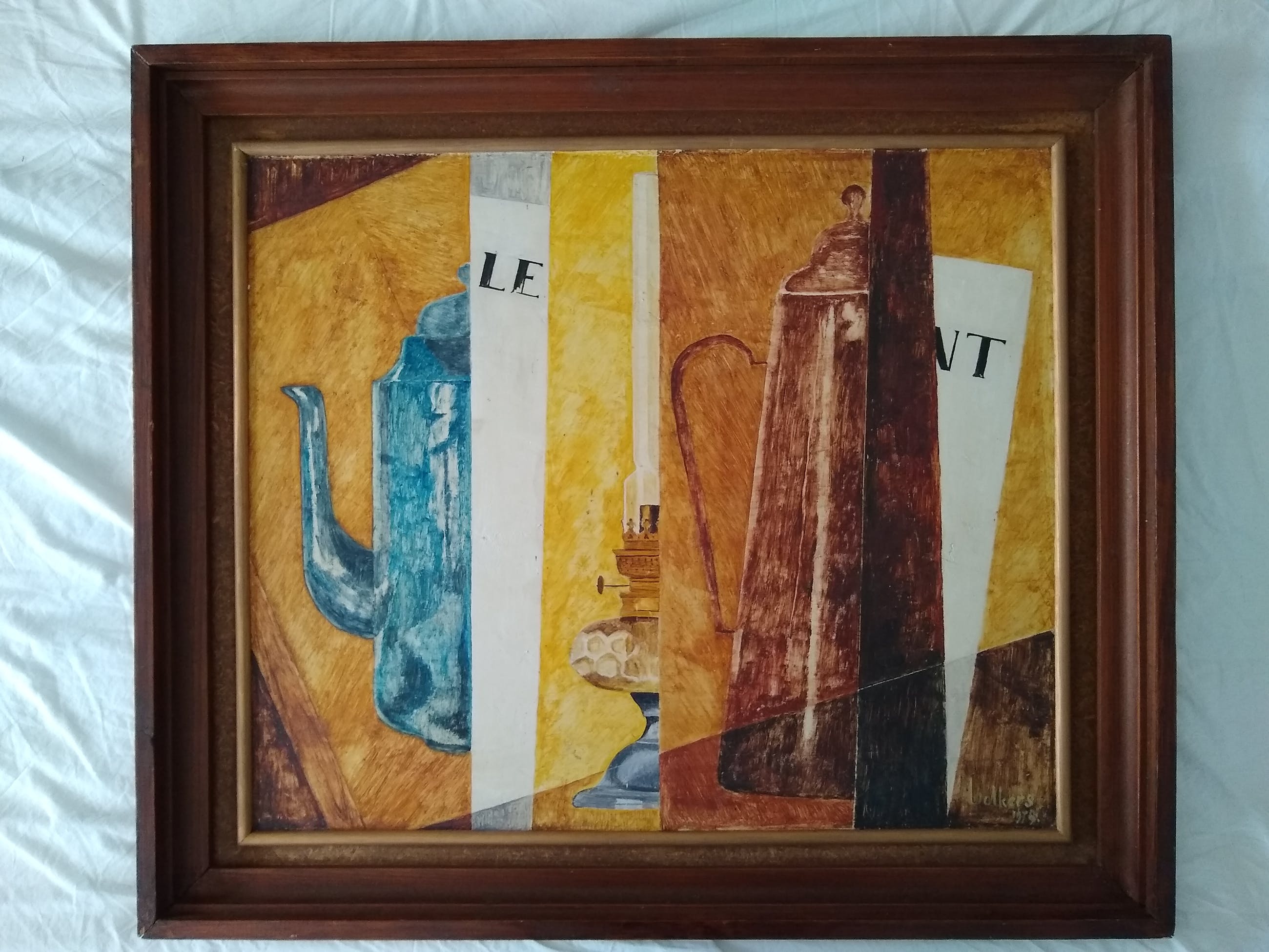 Het schilderij is in zeer goede conditie. Slechts enkele kleine onopvallende gebruikssporen aan de lijst.
