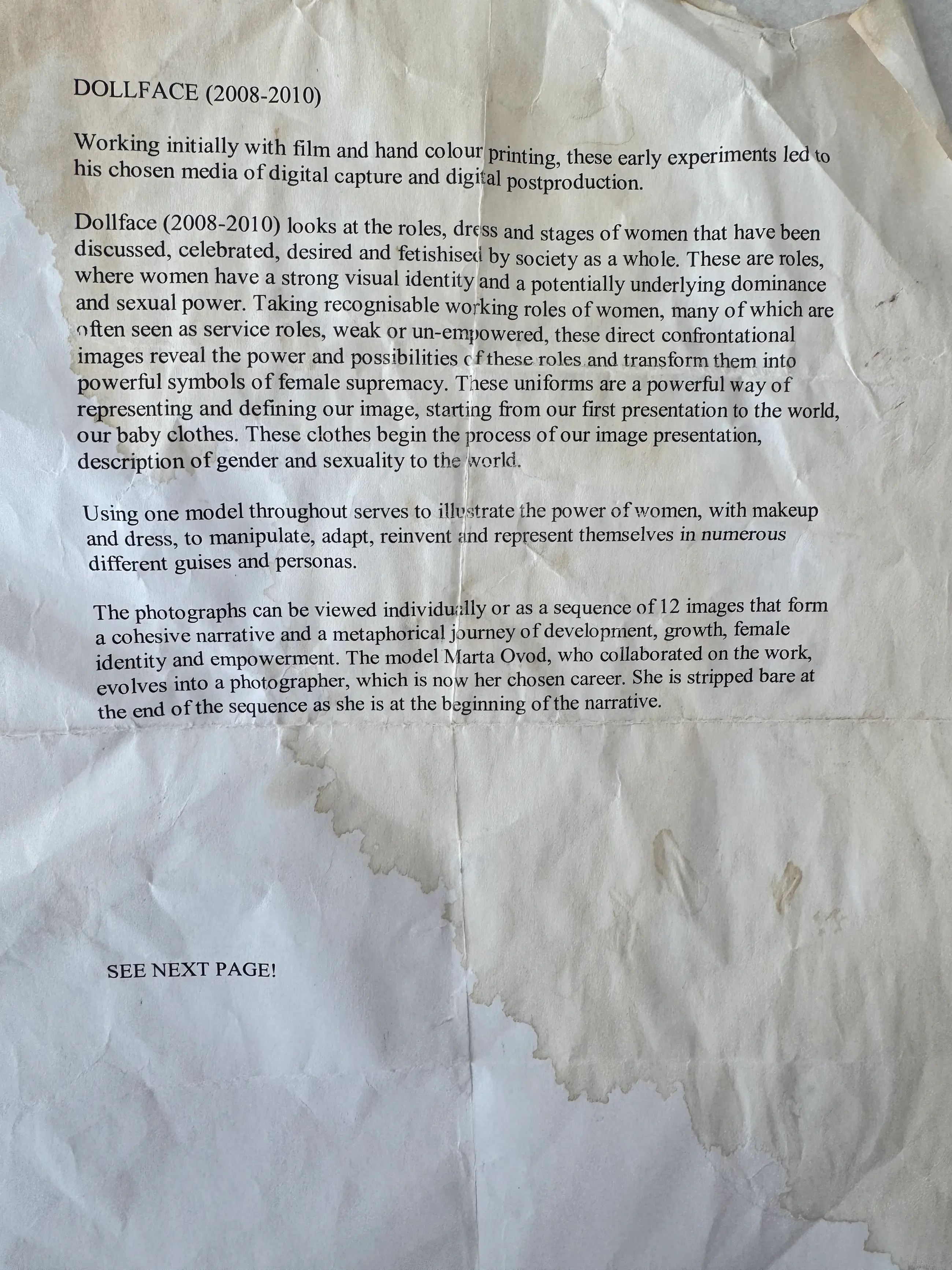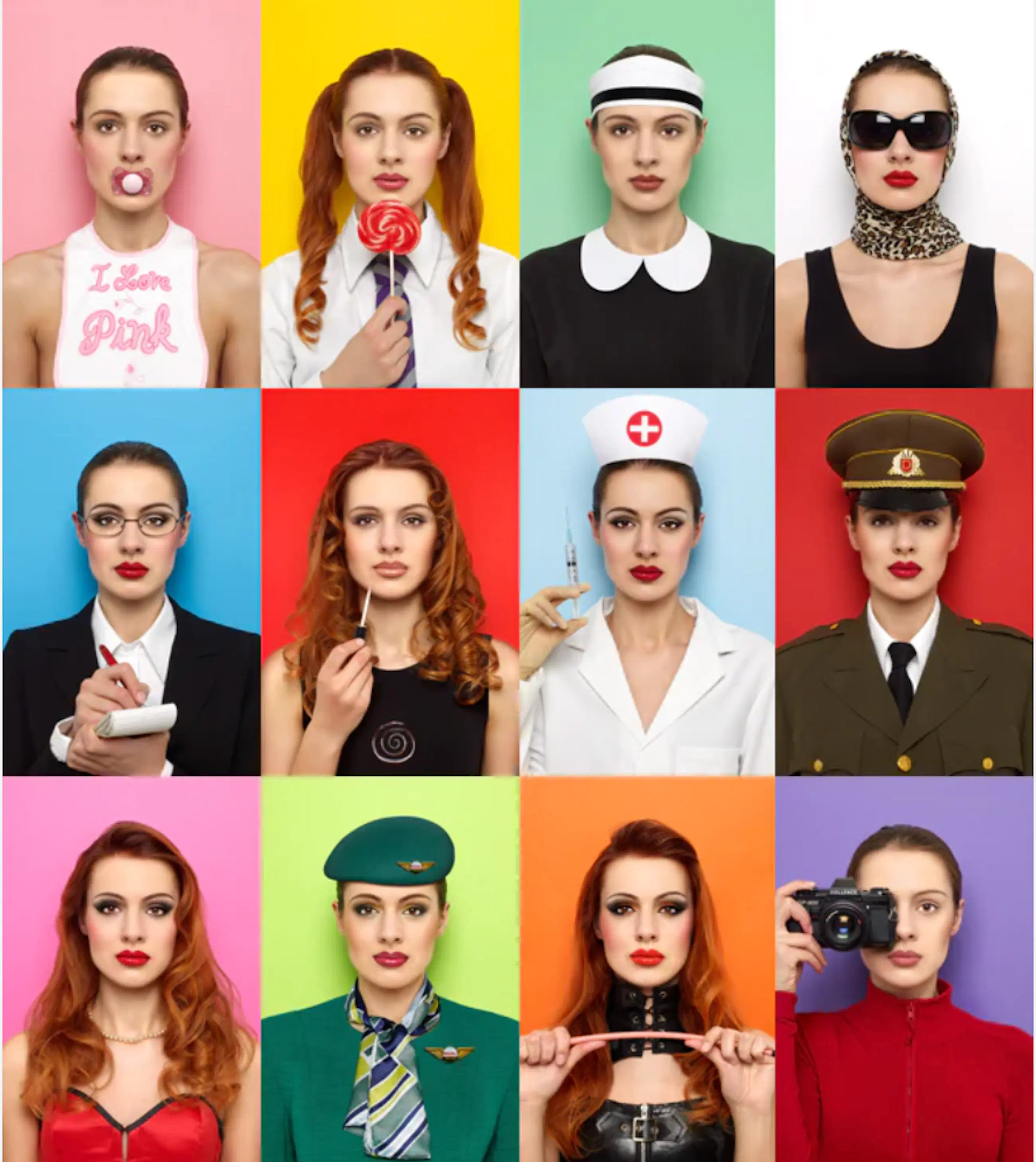Complete set of 12 colour photographs mounted in epoxy by British photographer Mel Bagshaw, from the Doll Face series (2008–2010). Each work measures 30 x 47 cm.