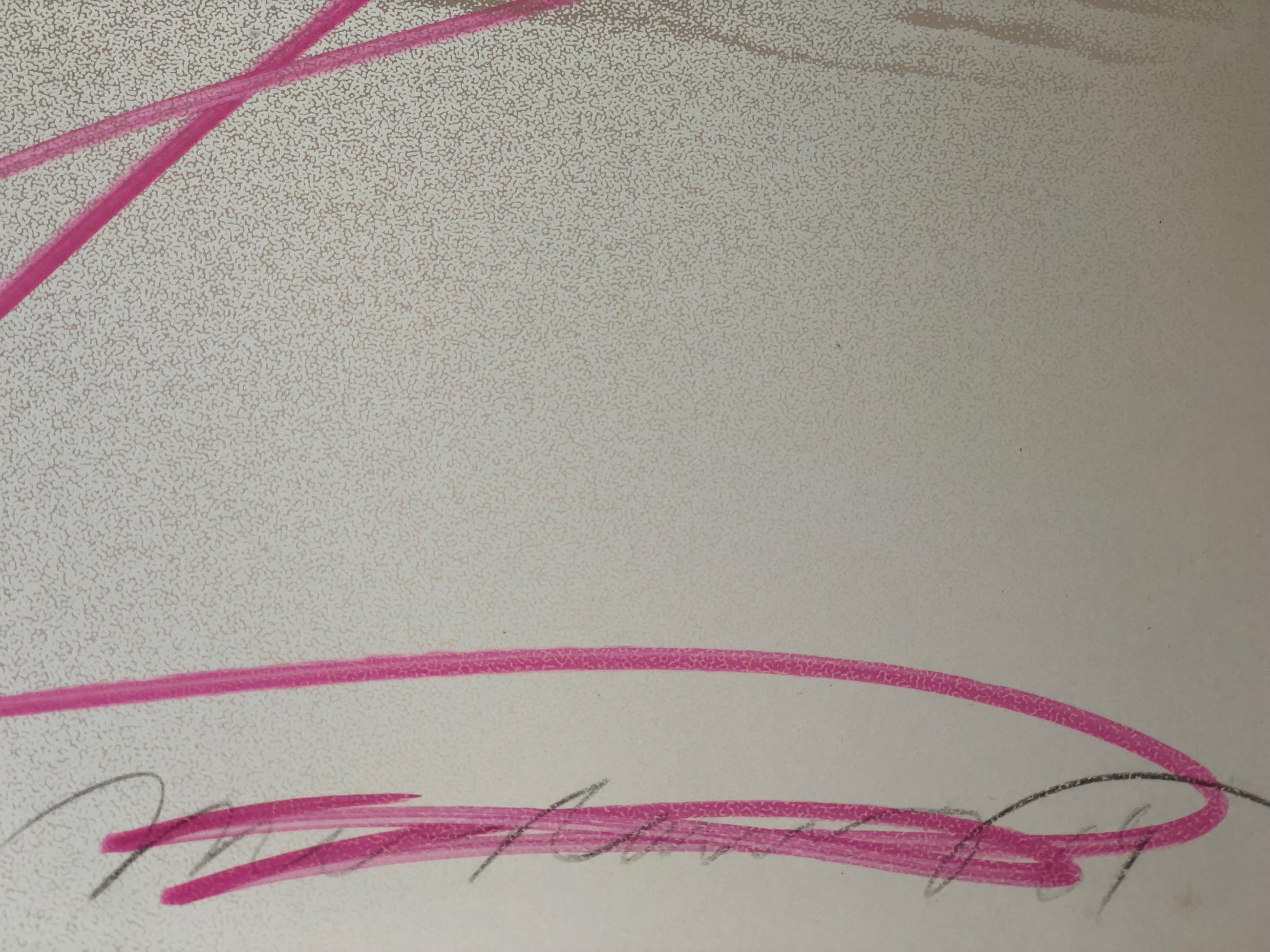 Unieke kans om een 50 jaar oude lithografie van Mel Ramos (1935 - 2018) te bezitten uit een editie van 98 die had moeten worden vernietigd. Omdat de exemplaren al waren ondertekend en genummerd, werd een roze markeerstift gebruikt om te voorkomen dat ze werden verkocht. Het is onbekend hoeveel exemplaren er precies overleefden, maar slechts een handvol zijn uiteindelijk in omloop gekomen. Ze worden zelden aangeboden waardoor ze zeer geliefd zijn bij verzamelaars.
