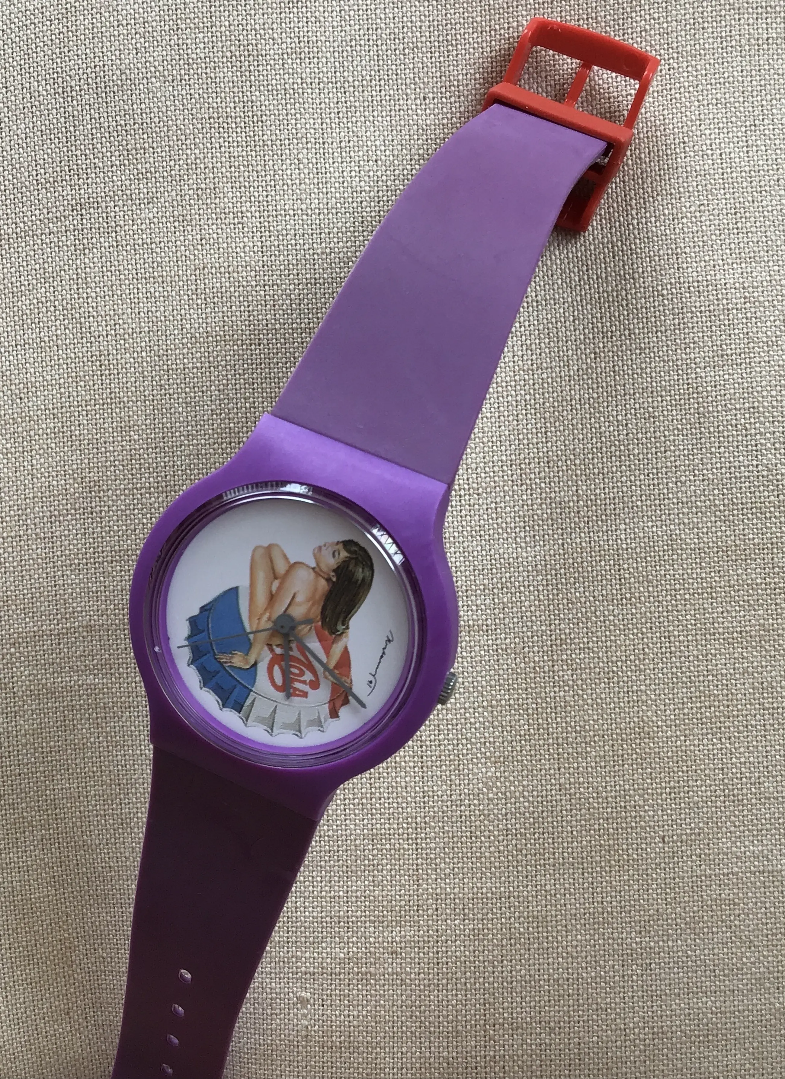 Dit horloge is no. 1In een serie van Chaos horloges, door kunstenaars ontworpen in opdracht van de fabrikant T.S.T. AG Zwitserland in de vroege jaren 90. Het is gesigneerd op de wijzerplaat Dit exemplaar is ontworpen door de Amerikaanse pop art kunstenaar Mel Ramos (1935) Het is vervaardigd in 1991/1992 in een oplage van 9999 exemplaren, waarvan dit nummer 3151 geschreven op achterkant van het horloge. Conditie nieuw met beschrijving en in oorspronkelijke verpakking
