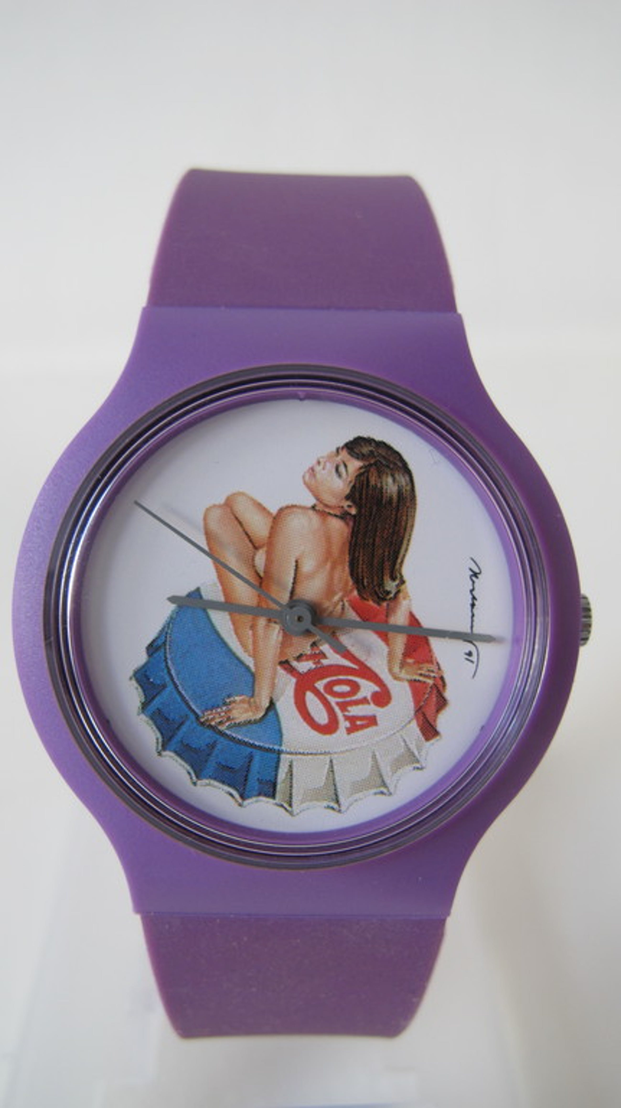 Fraai horloge van de Amerikaanse Pop Art kunstenaar Mel Ramos die internationale bekendheid geniet met zijn figuratieve werken van vrouwen en consumptie artikelen. Uitgegeven in de serie kunsthorloges van de Zwitserse horlogemaker Chaos Watch. Genummerd op achterkant. Het horloge verkeert in uitstekende staat. Wordt geleverd in bijpassend doosje. Verzendkosten voor koper: Nederland 10 euro, Europa 16 euro.